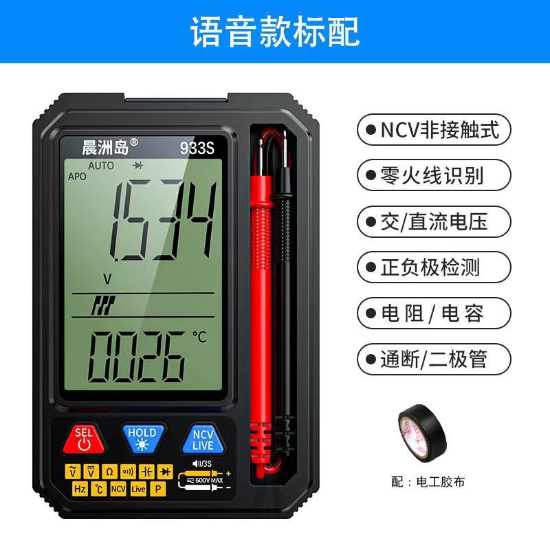 • 대형 스크린 언어 멀티미터: 933S-공식 표준 패키지 3개, 전기 테이프 포함