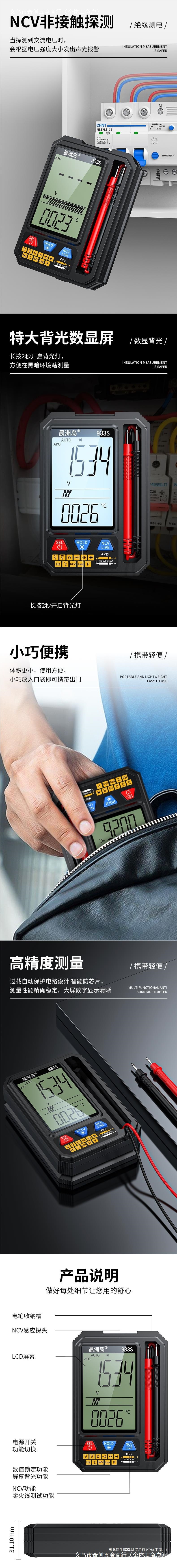 • 대형 스크린 언어 멀티미터: 933S-공식 표준 패키지 1(전기 테이프 포함)