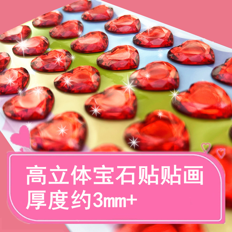 다채로운 다이아몬드 사랑 스티커 어린이 DIY 크리스탈 보석 스티커 소녀의 3D Rhinestone Goo 카드 스티커