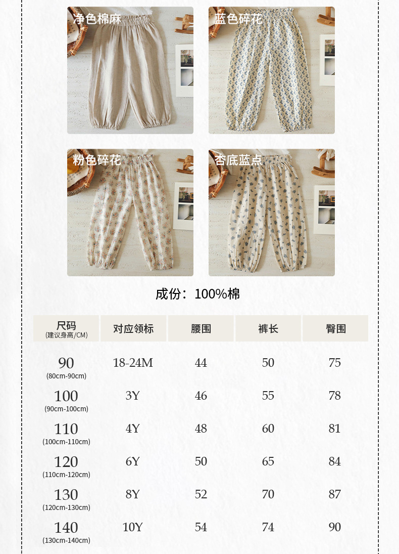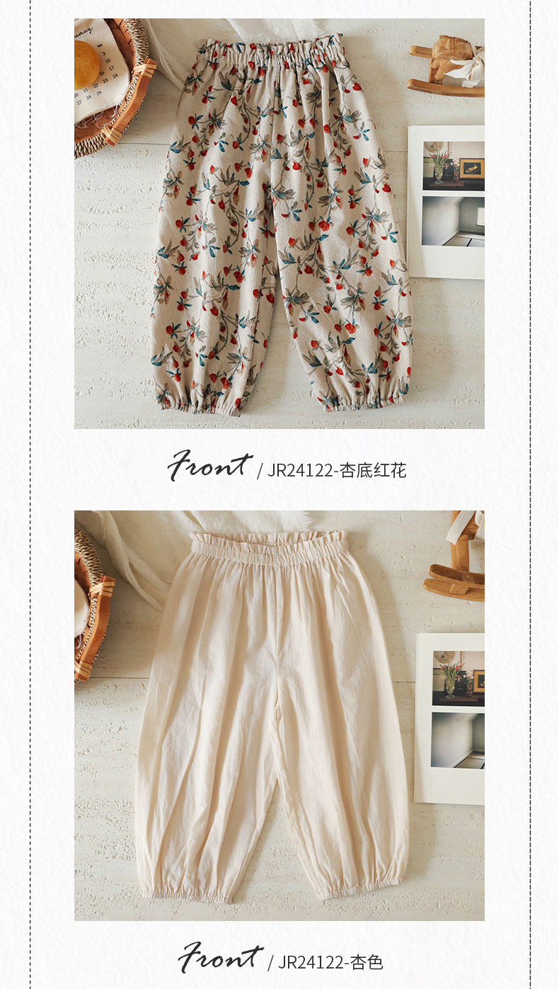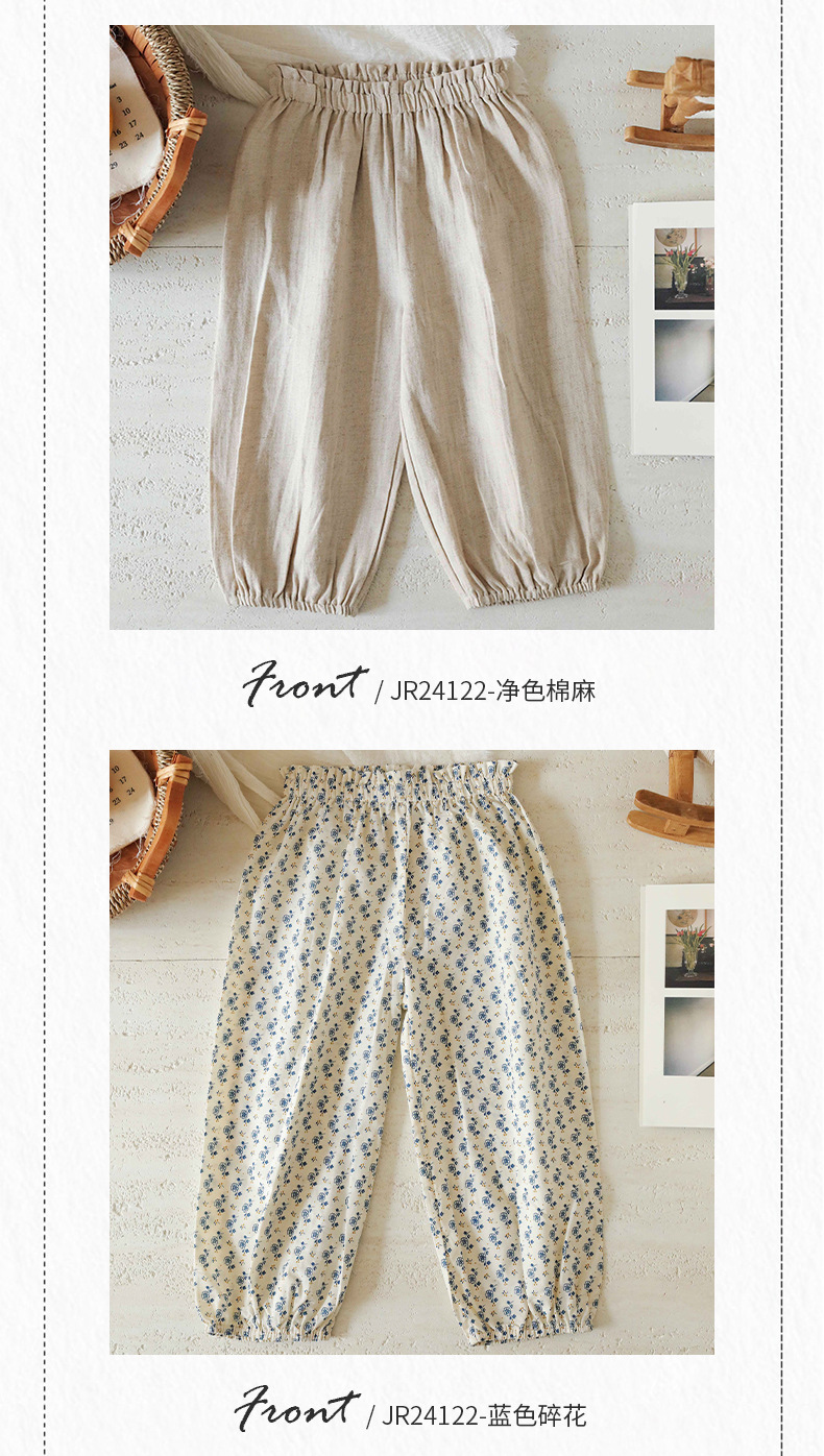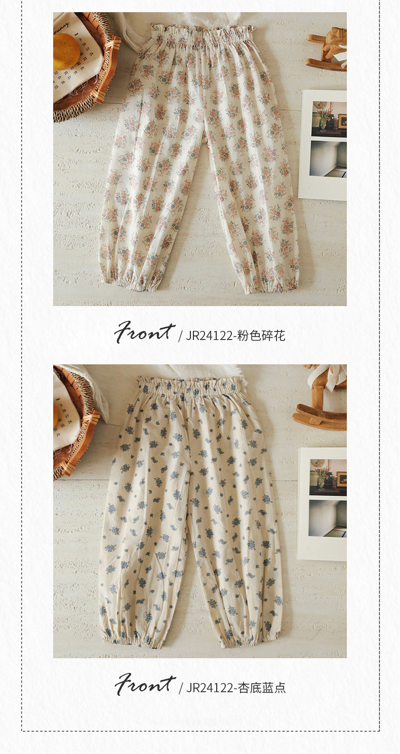 스팟 2025 봄과 여름 면화 꽃 무늬 아기 소녀 캐주얼 바지 단색 소녀 모기 방지 바지 외출 바지스토어 가기