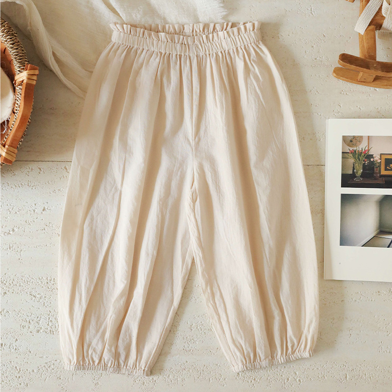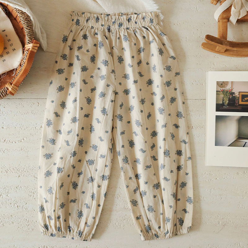 스팟 2025 봄과 여름 면화 꽃 무늬 아기 소녀 캐주얼 바지 단색 소녀 모기 방지 바지 외출 바지