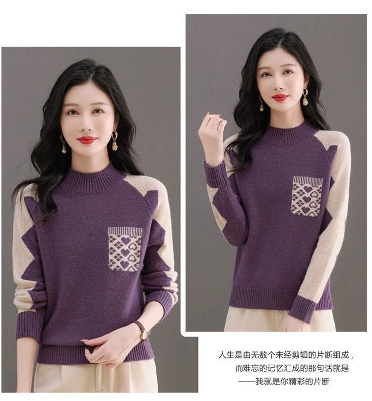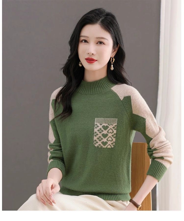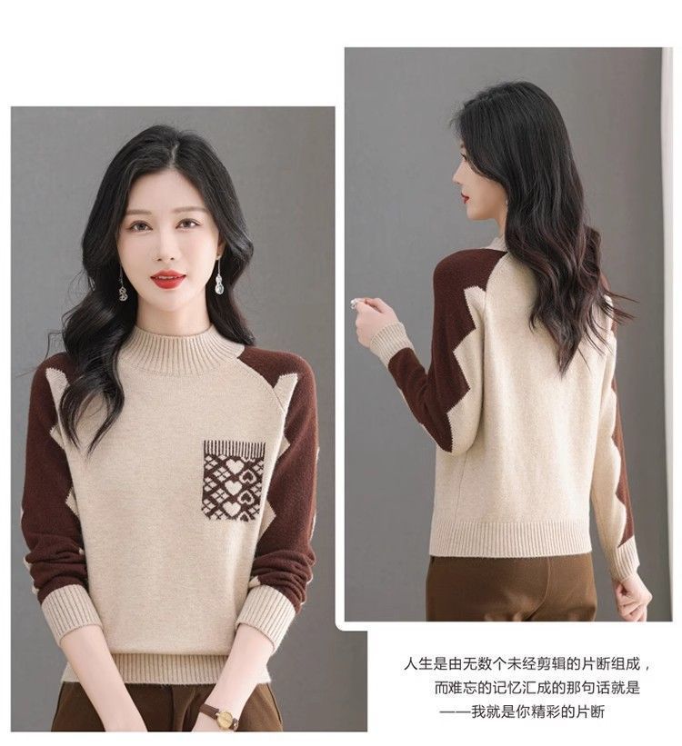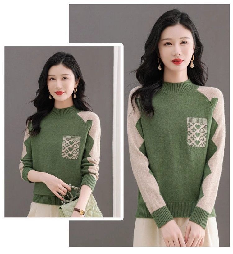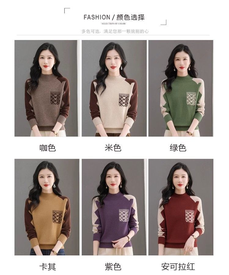 캐시미어 스웨터 여자 25 가을/겨울 새로운 반 높은 목베이스 셔츠 두꺼운 니트 스웨터 내부 재킷 느슨한 대조 컬러 꽃스토어 가기