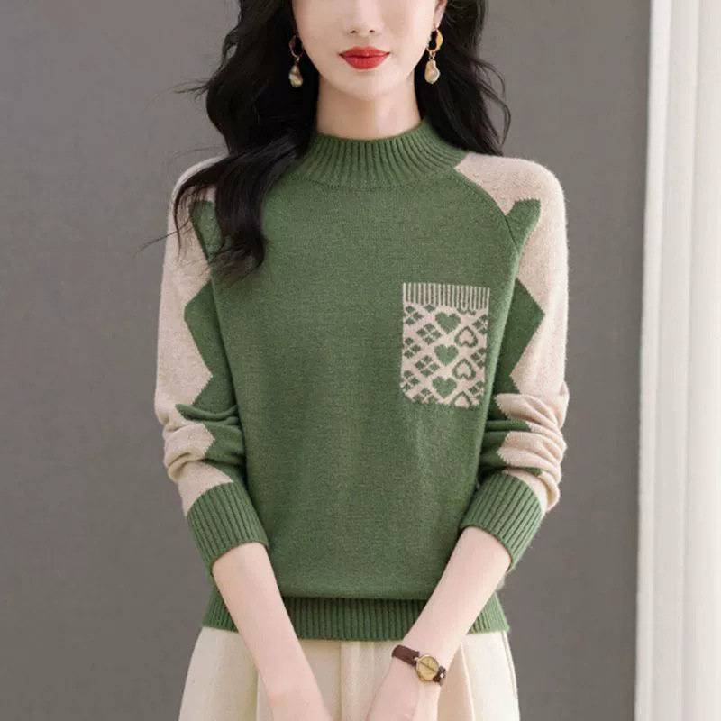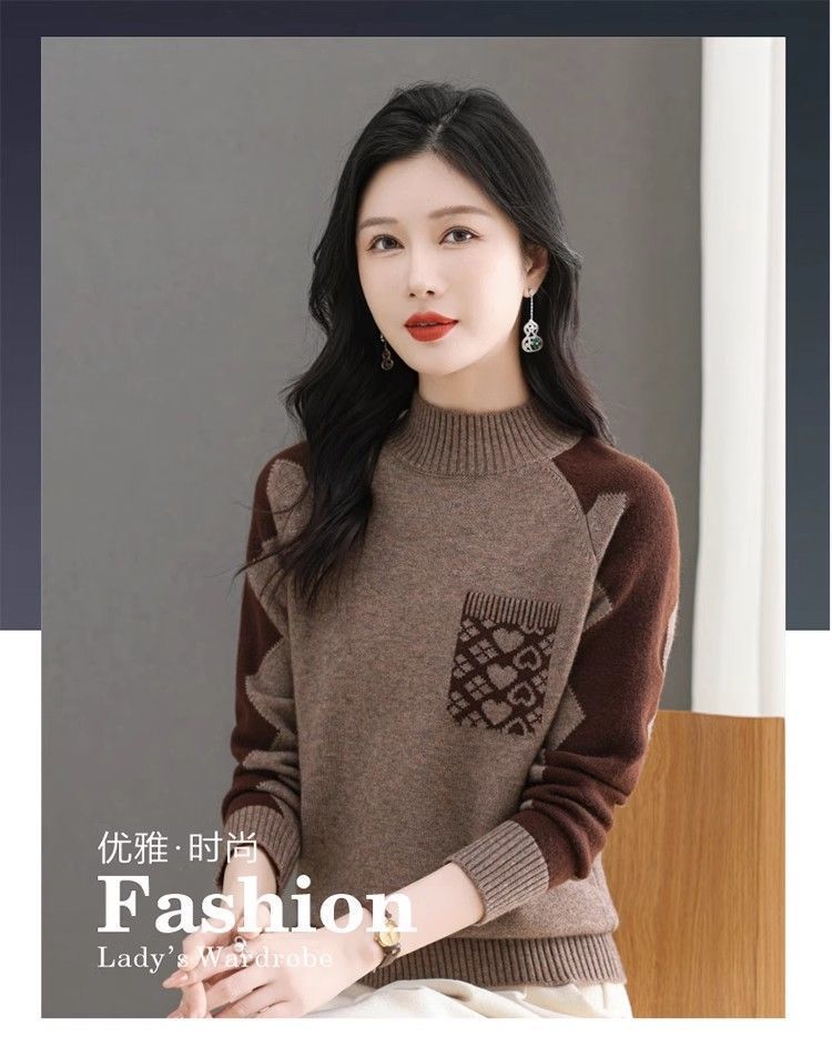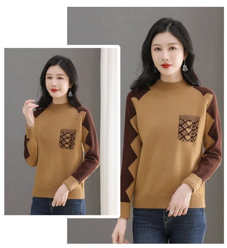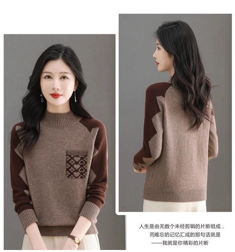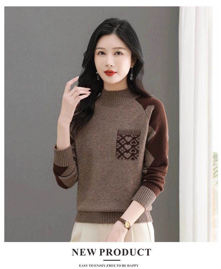 캐시미어 스웨터 여자 25 가을/겨울 새로운 반 높은 목베이스 셔츠 두꺼운 니트 스웨터 내부 재킷 느슨한 대조 컬러 꽃스토어 가기