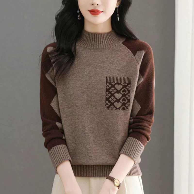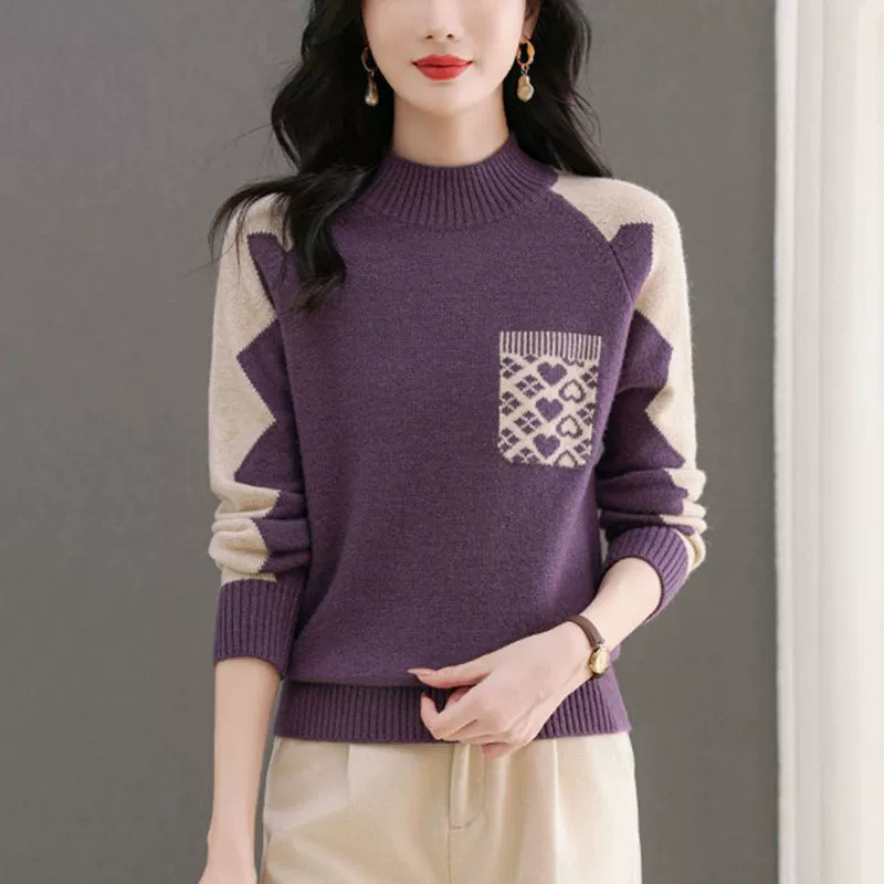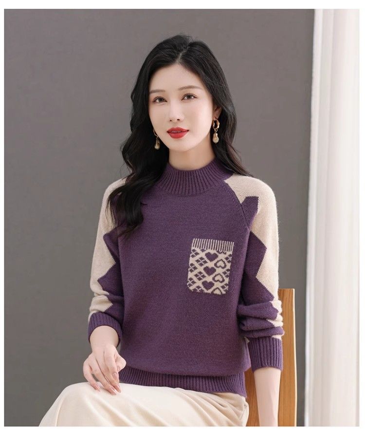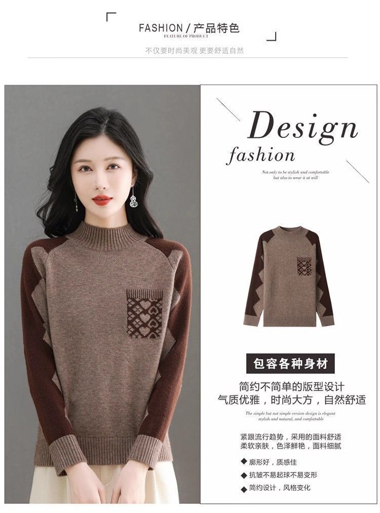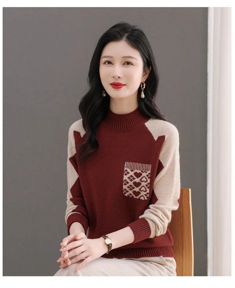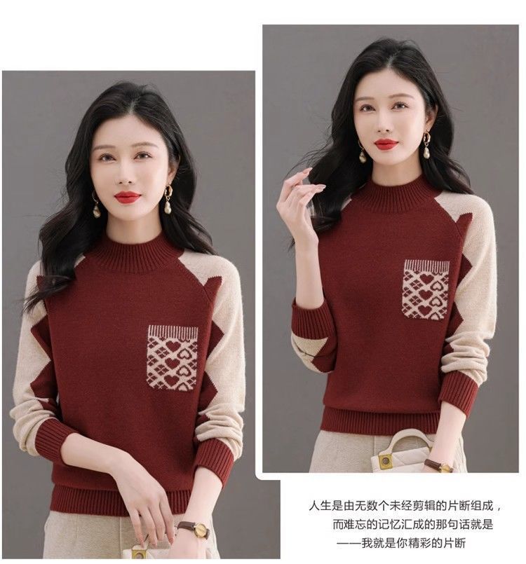 캐시미어 스웨터 여자 25 가을/겨울 새로운 반 높은 목베이스 셔츠 두꺼운 니트 스웨터 내부 재킷 느슨한 대조 컬러 꽃