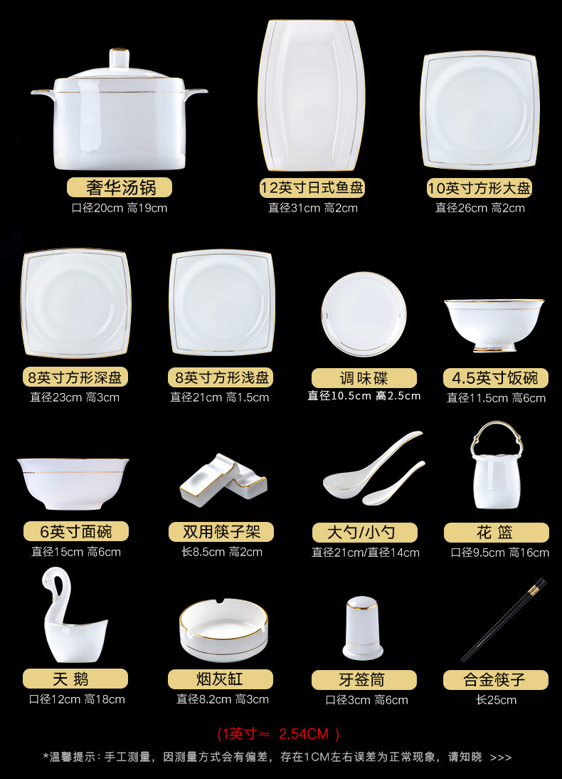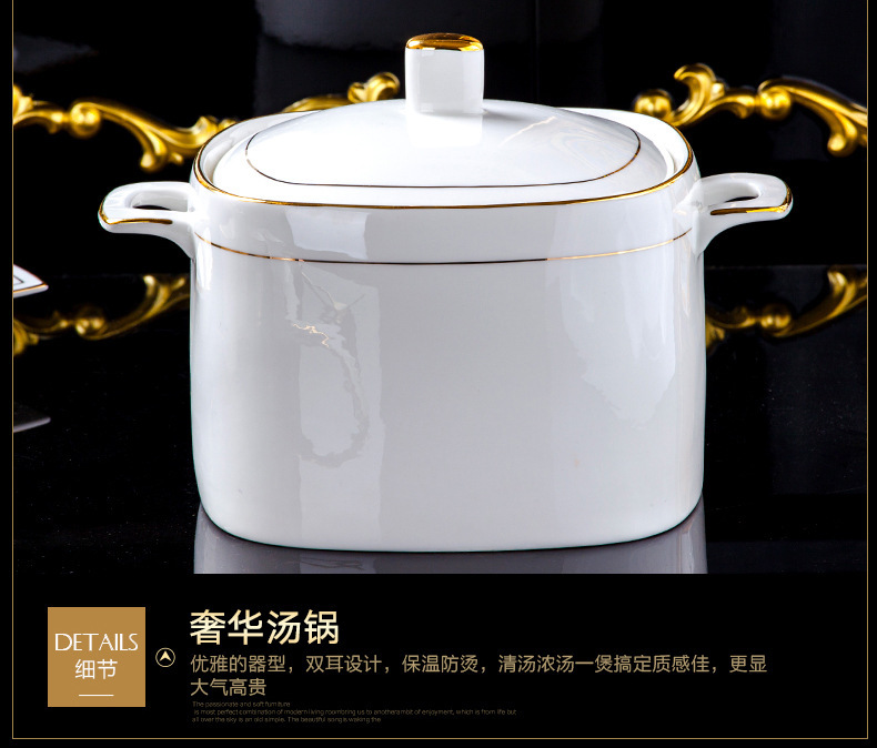 경덕진 도자기 그릇, 가정용 수제 금색 옥 도자기 식기, 크고 작은 국수 그릇, 도자기 접시, 생선 접시