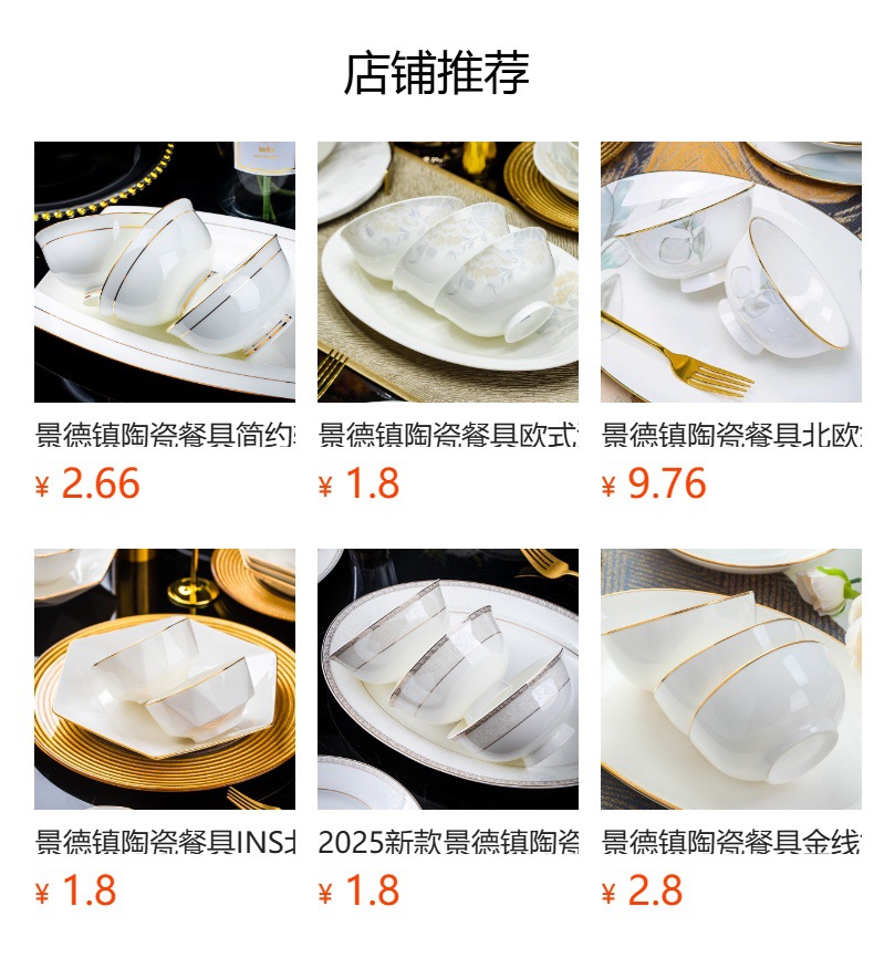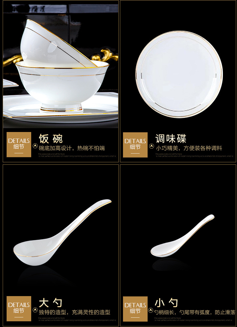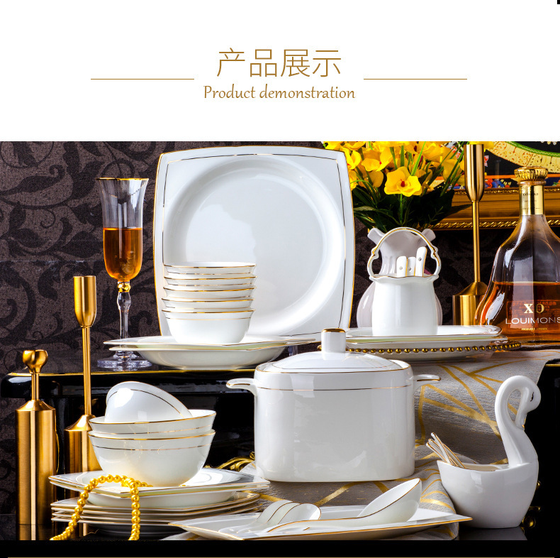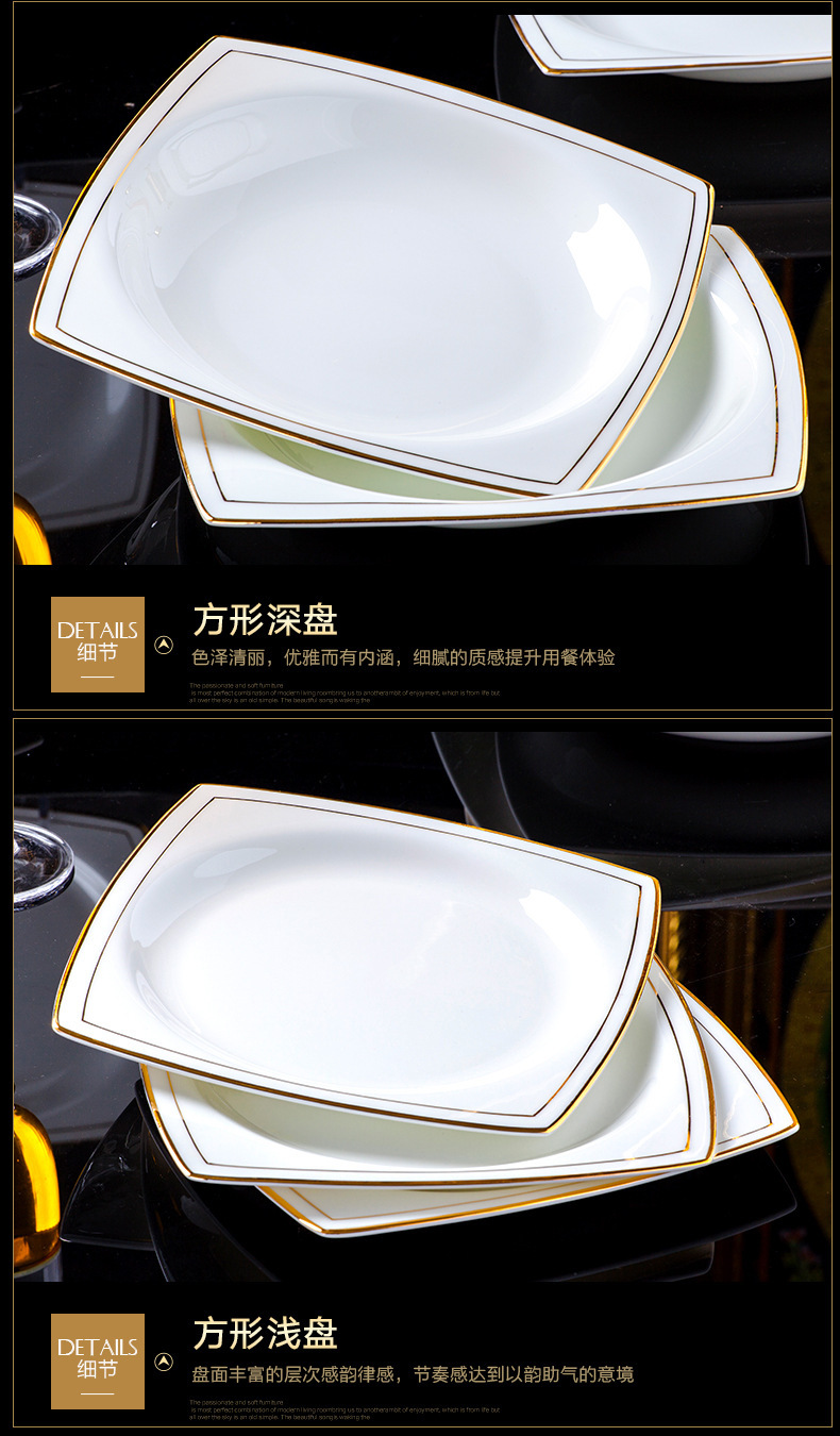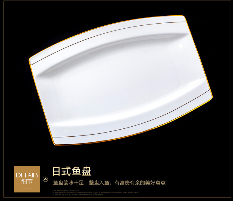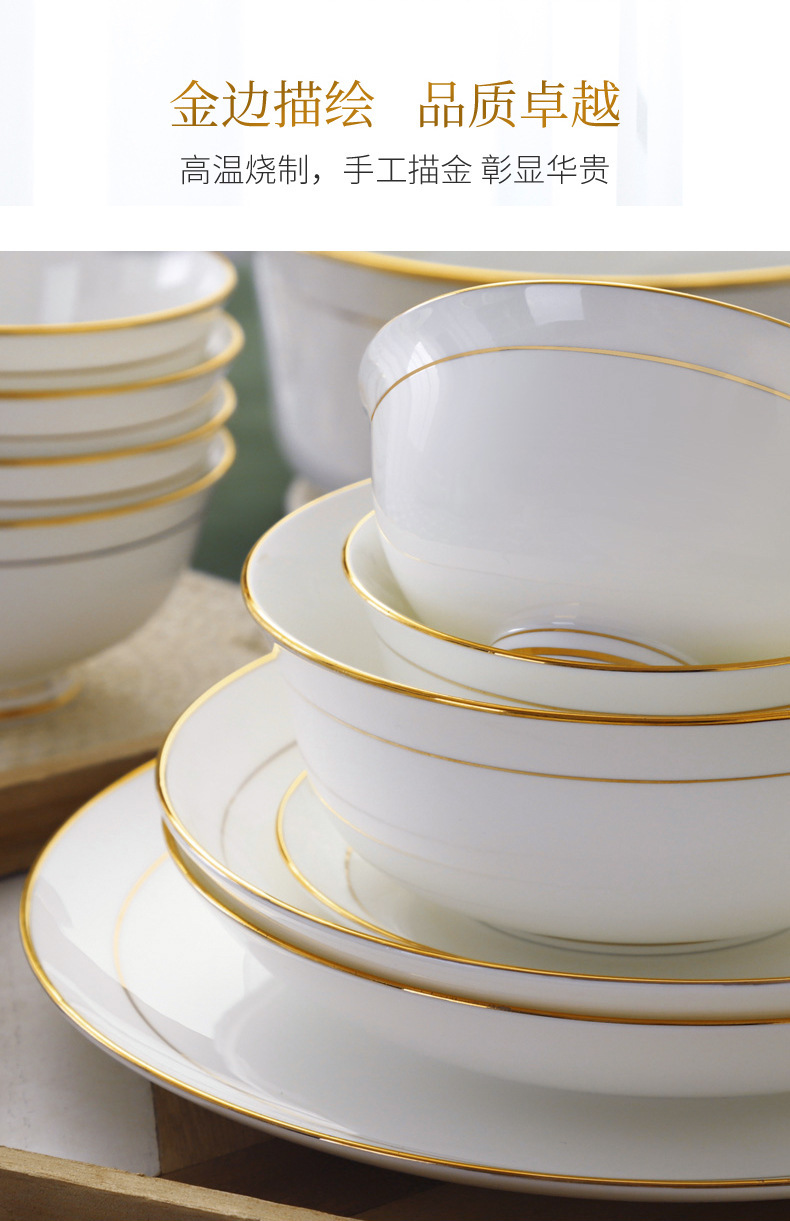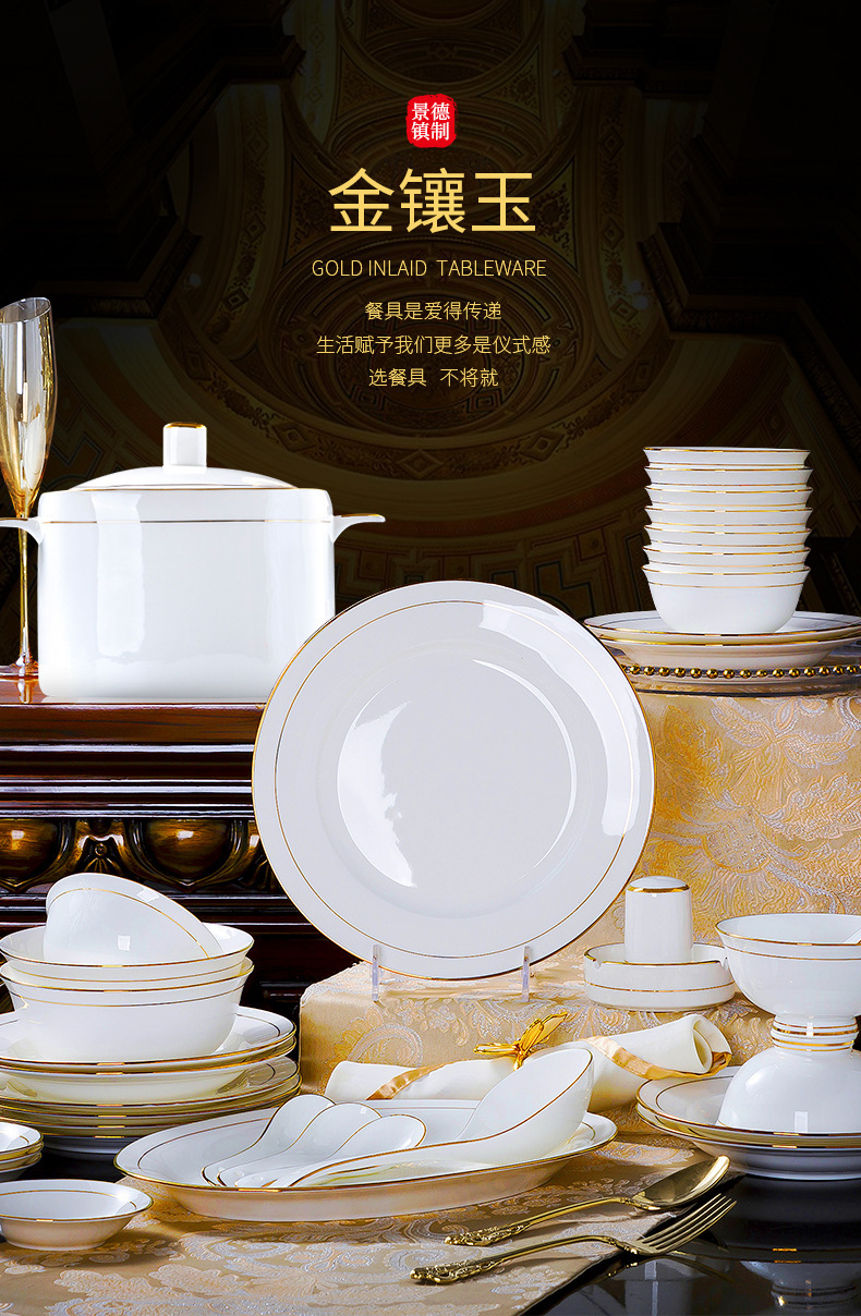 경덕진 도자기 그릇, 가정용 수제 금색 옥 도자기 식기, 크고 작은 국수 그릇, 도자기 접시, 생선 접시스토어 가기