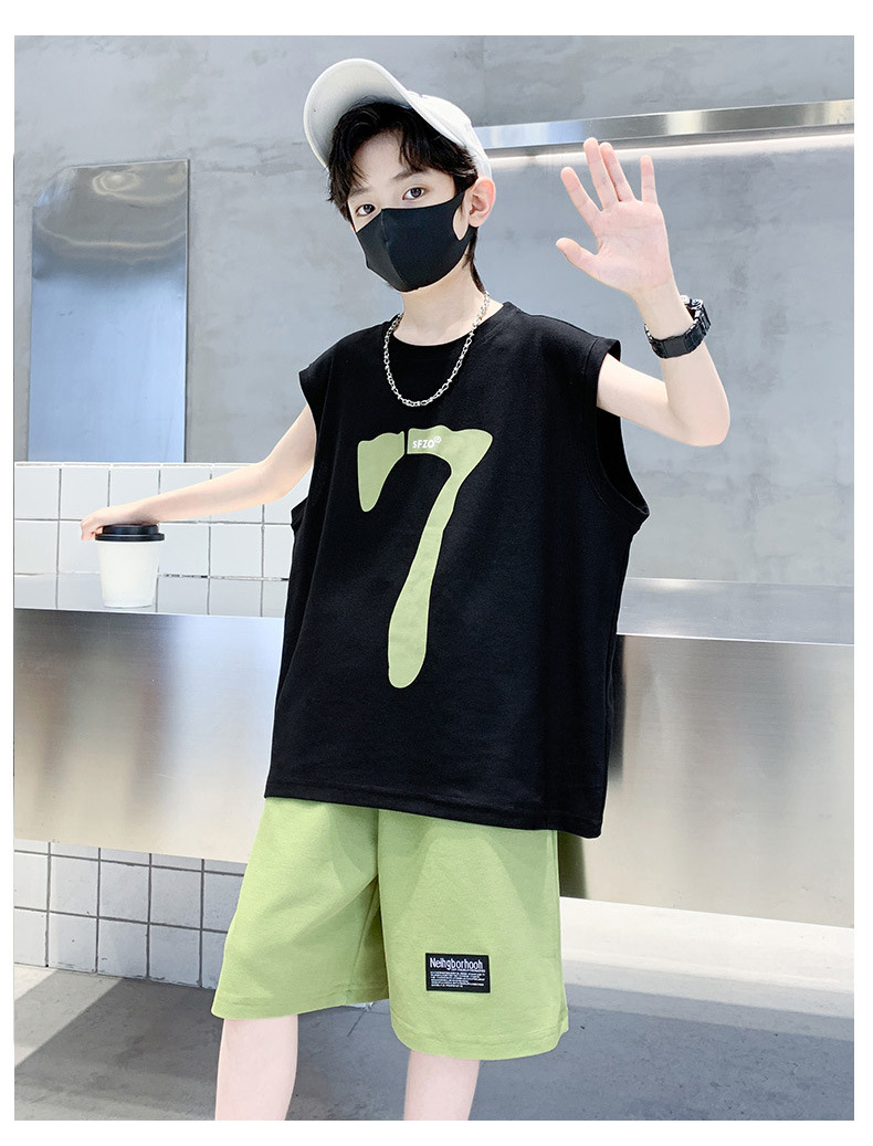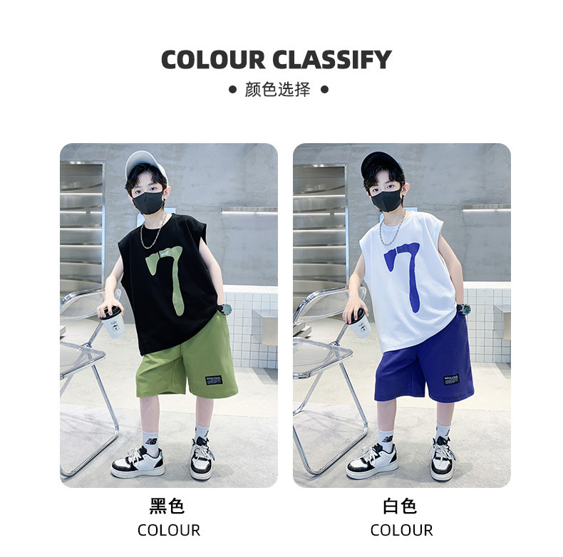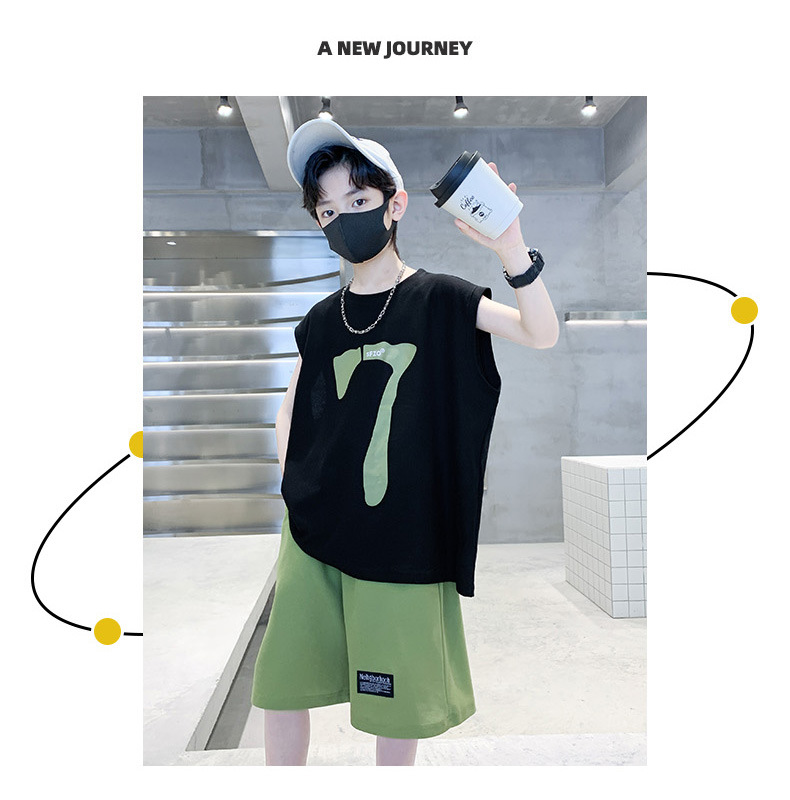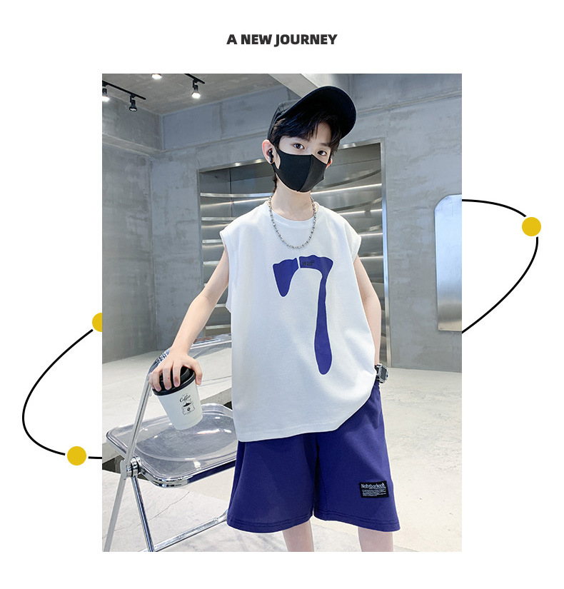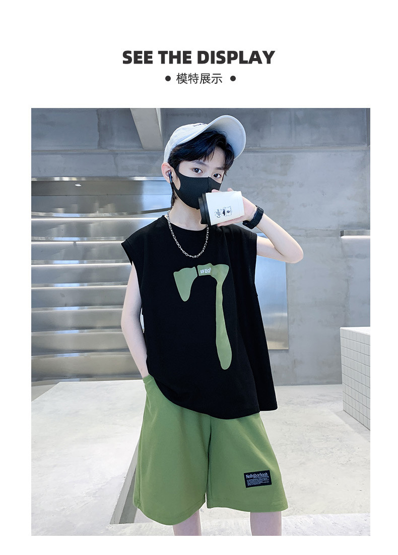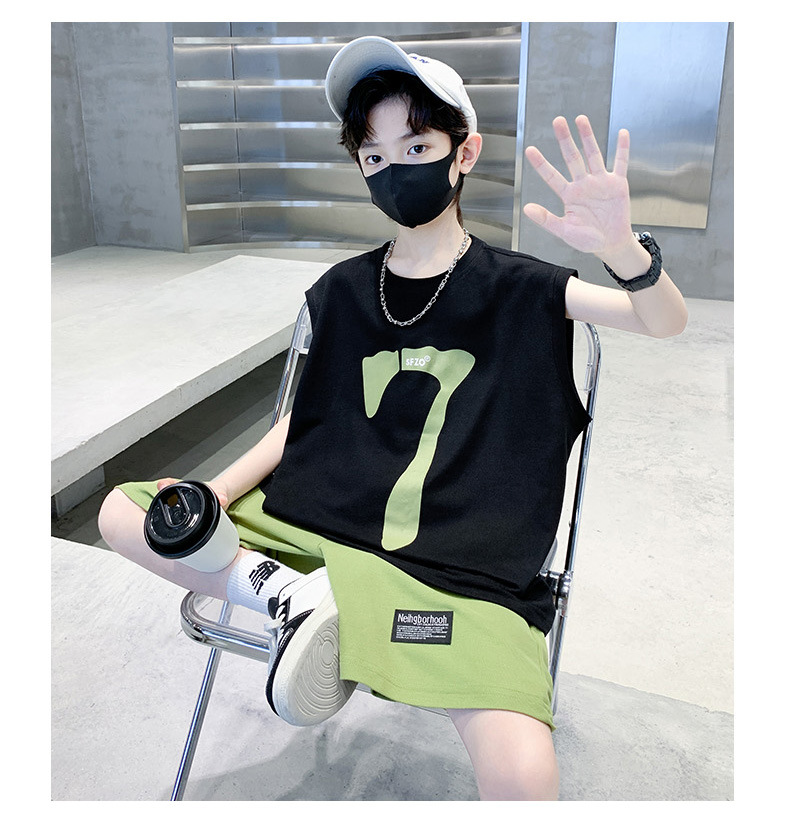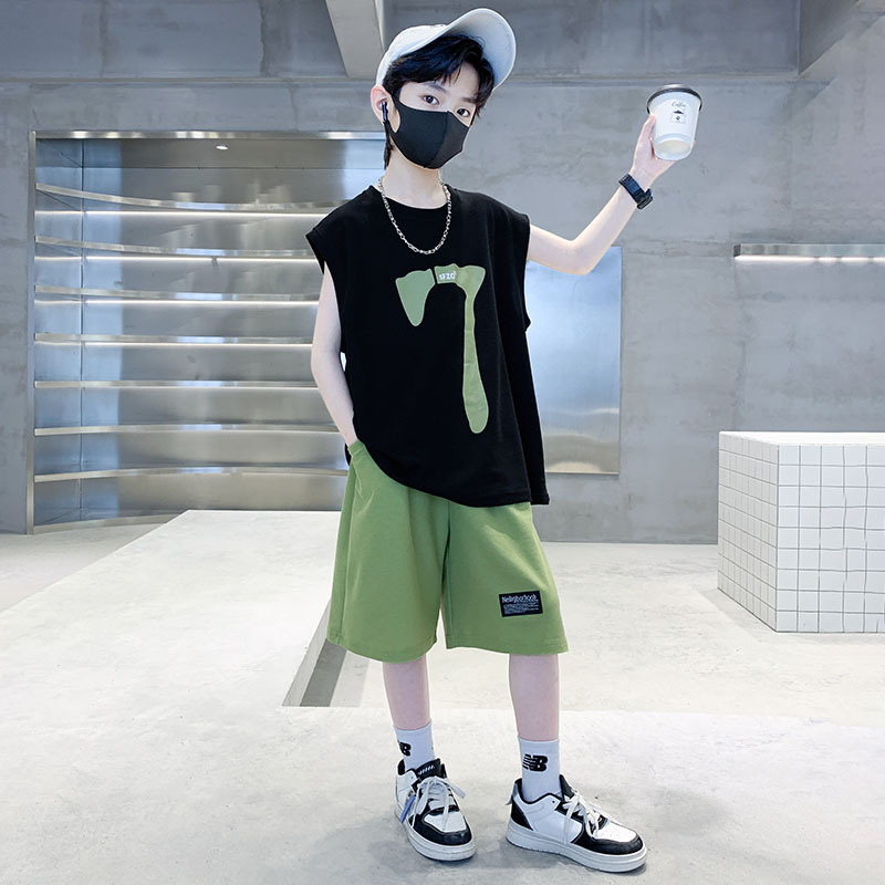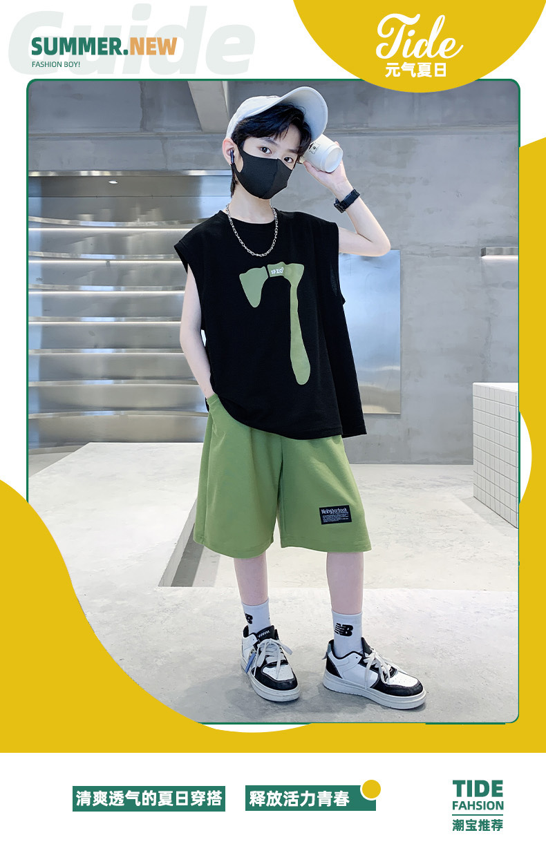 소년 여름 조끼 세트 2025 새로운 스포츠 시원한 잘 생긴 큰 아이들 여름 ruffian 잘 생긴 여름 유행 조수스토어 가기