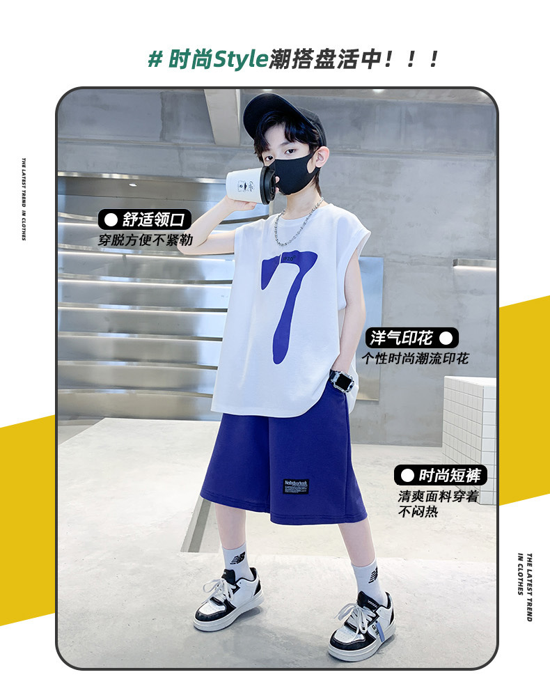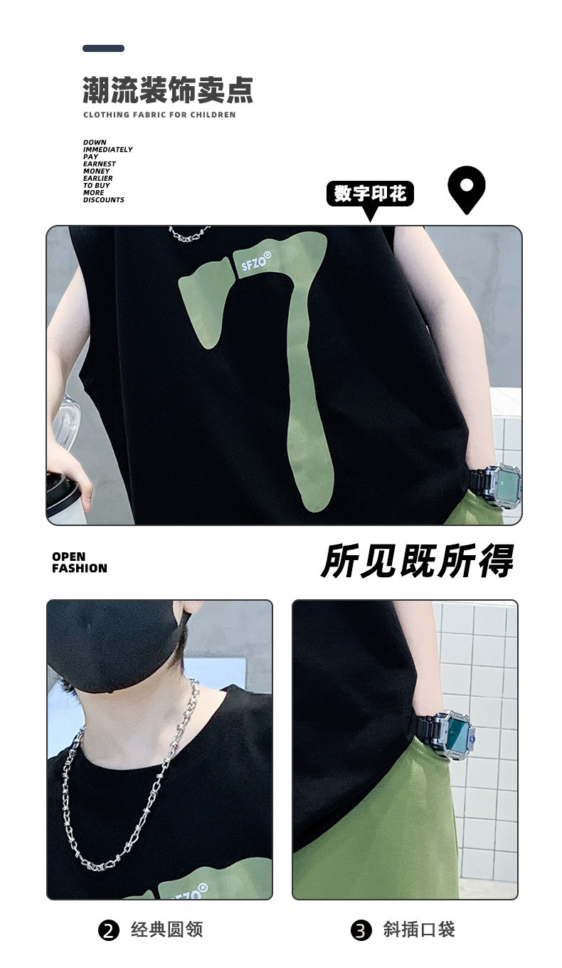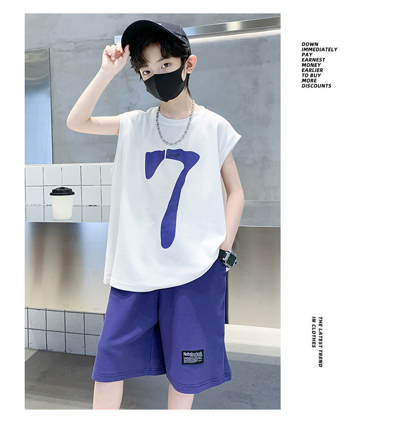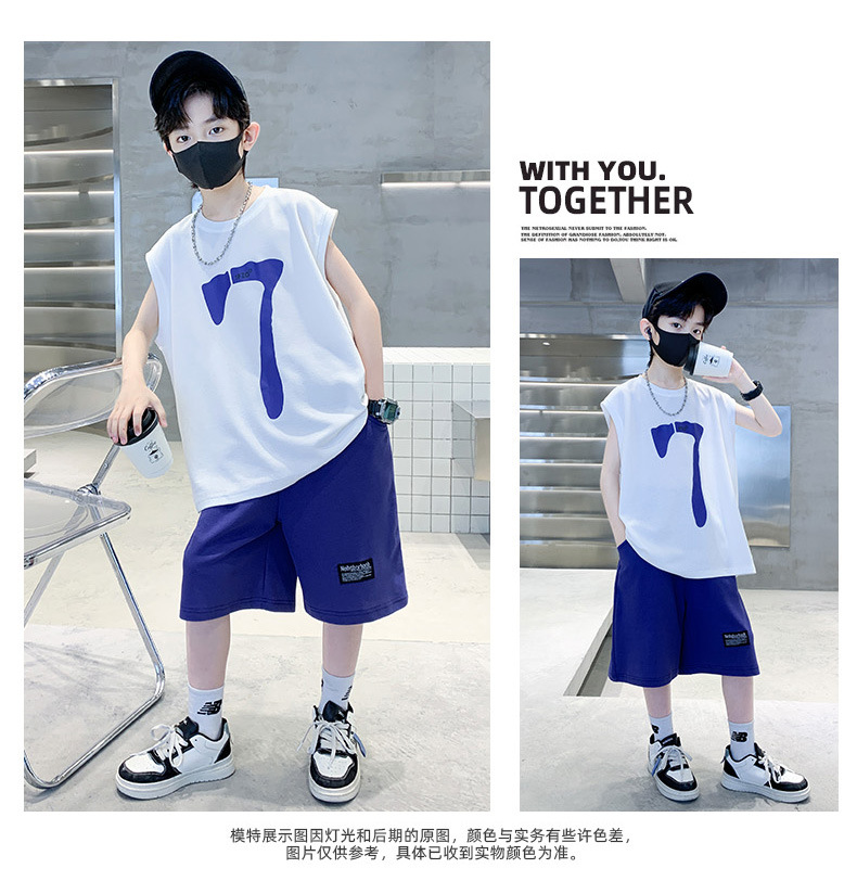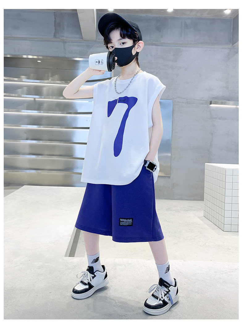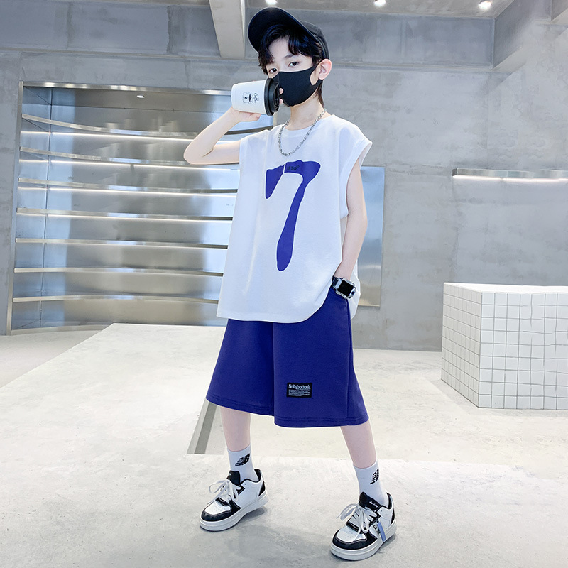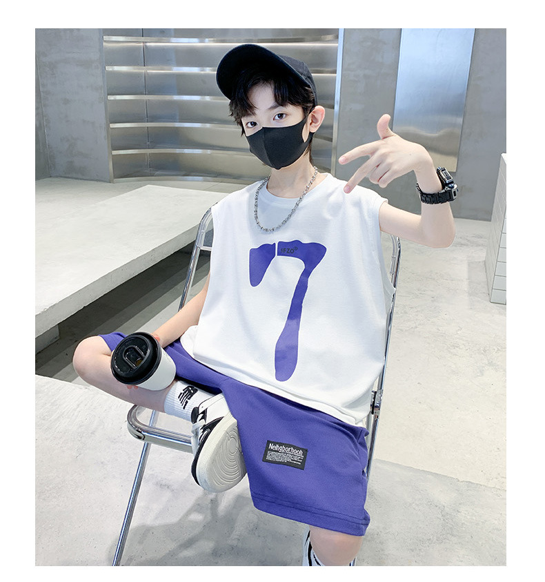 소년 여름 조끼 세트 2025 새로운 스포츠 시원한 잘 생긴 큰 아이들 여름 ruffian 잘 생긴 여름 유행 조수스토어 가기