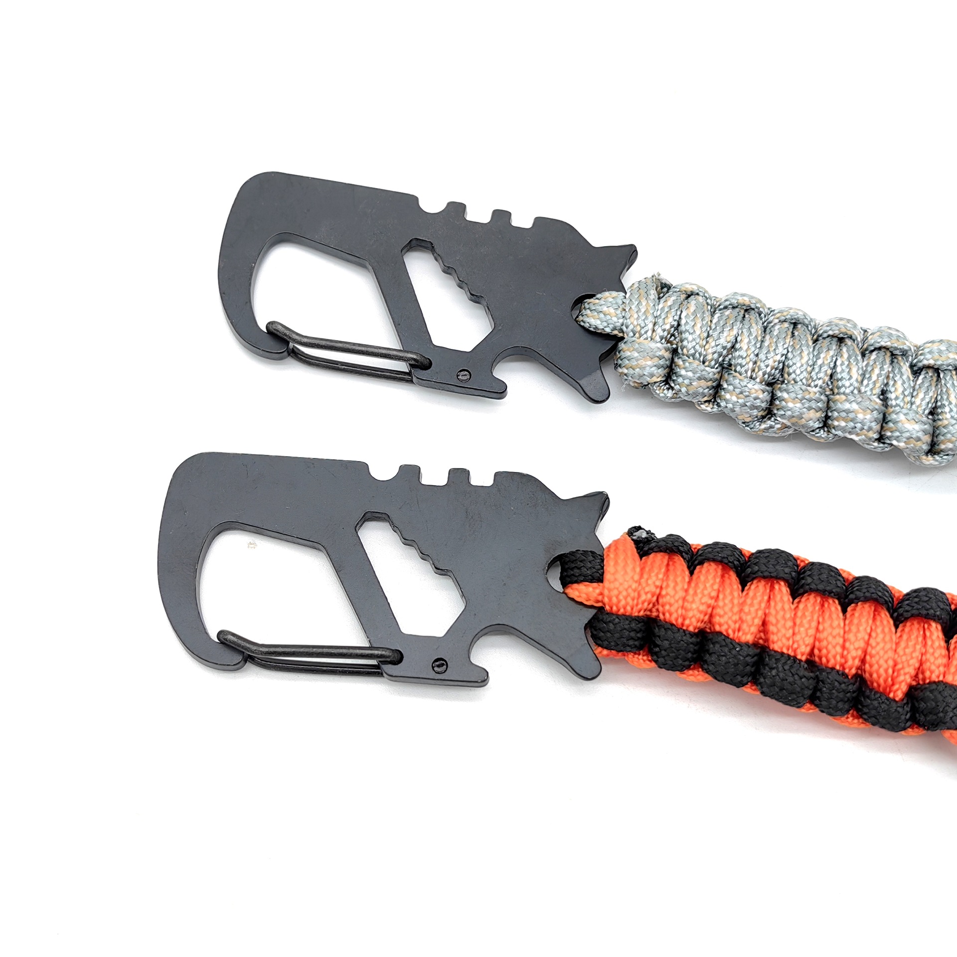 야외 EDC 도구 다기능 카라비너 ​​스테인레스 스틸 교수형 버클 파라코드 땋은 열쇠 고리