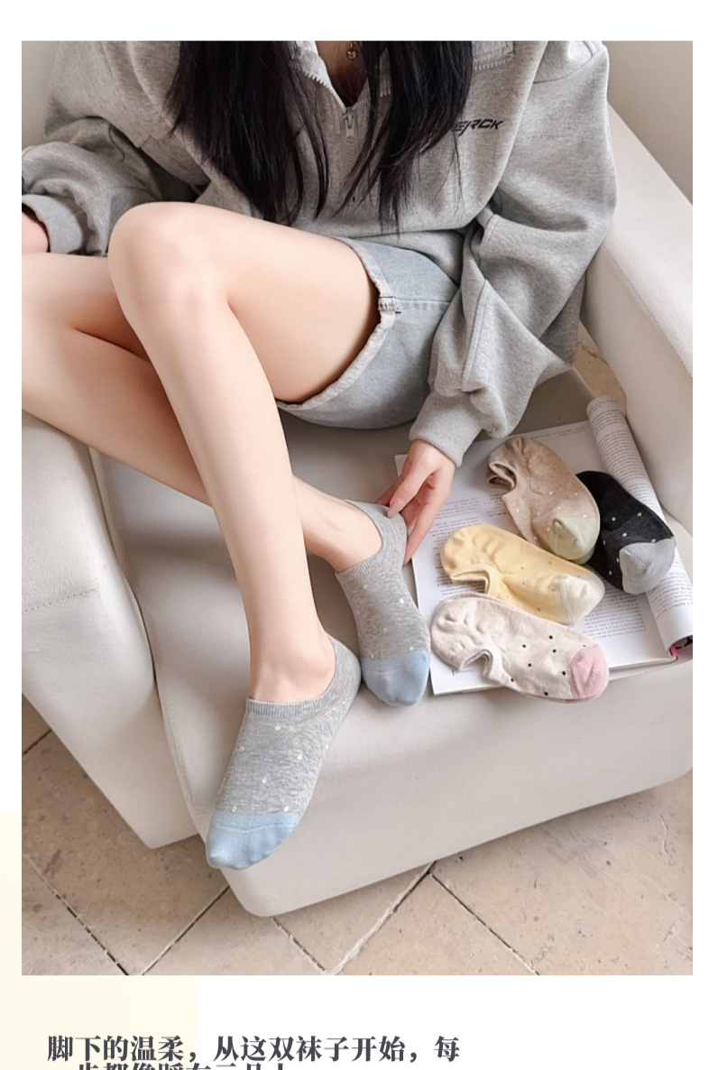 25 년 웨이브 포인트 보트 양말 여성의 봄과 여름 얇은 실리콘 미끄럼은 통기성 캐주얼 얕은 입 양말과 함께 떨어지지 않습니다.스토어 가기