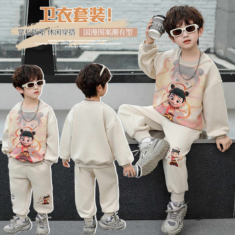 어떤 옷 소년 봄 세트 2025 새로운 봄과 가을 멋진 아기 만화 낙서 조끼 아동복스토어 가기