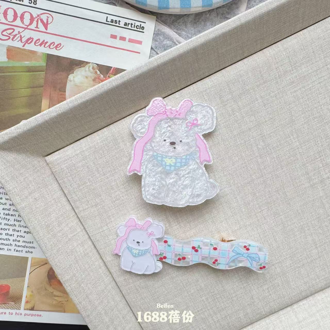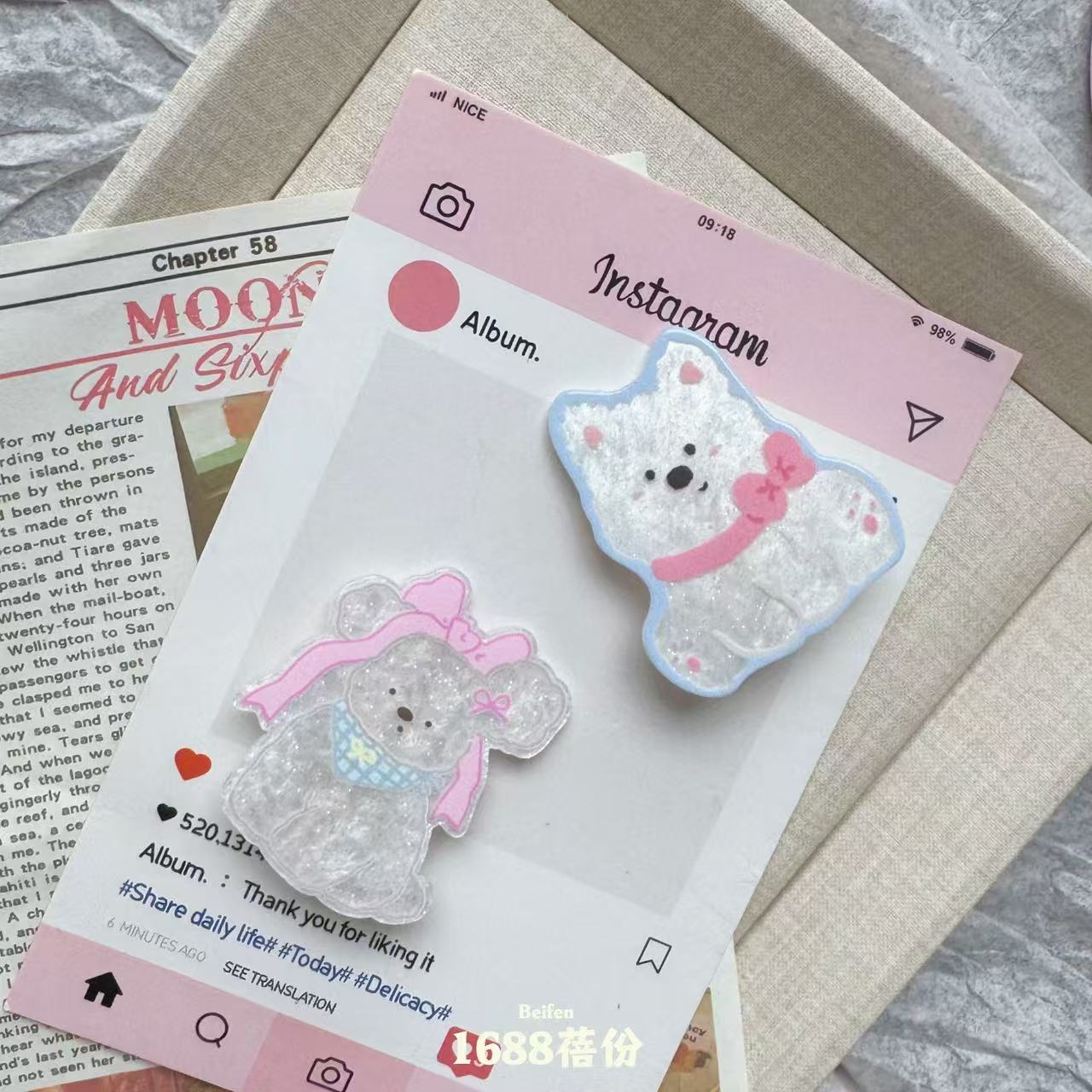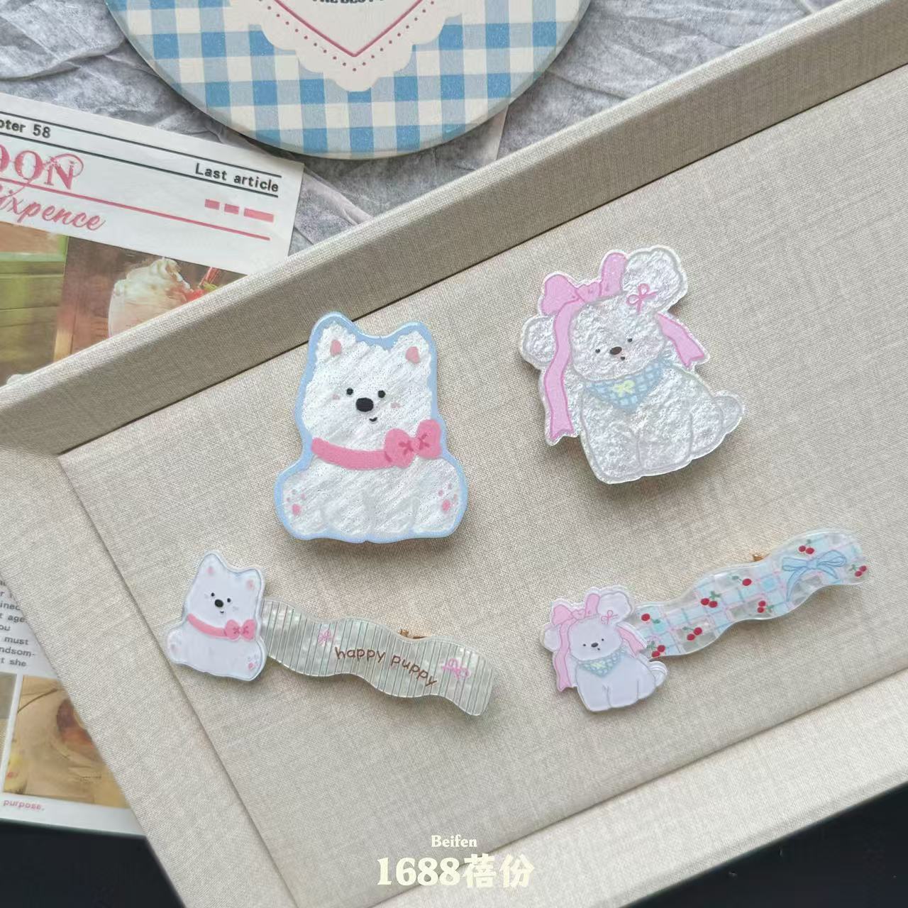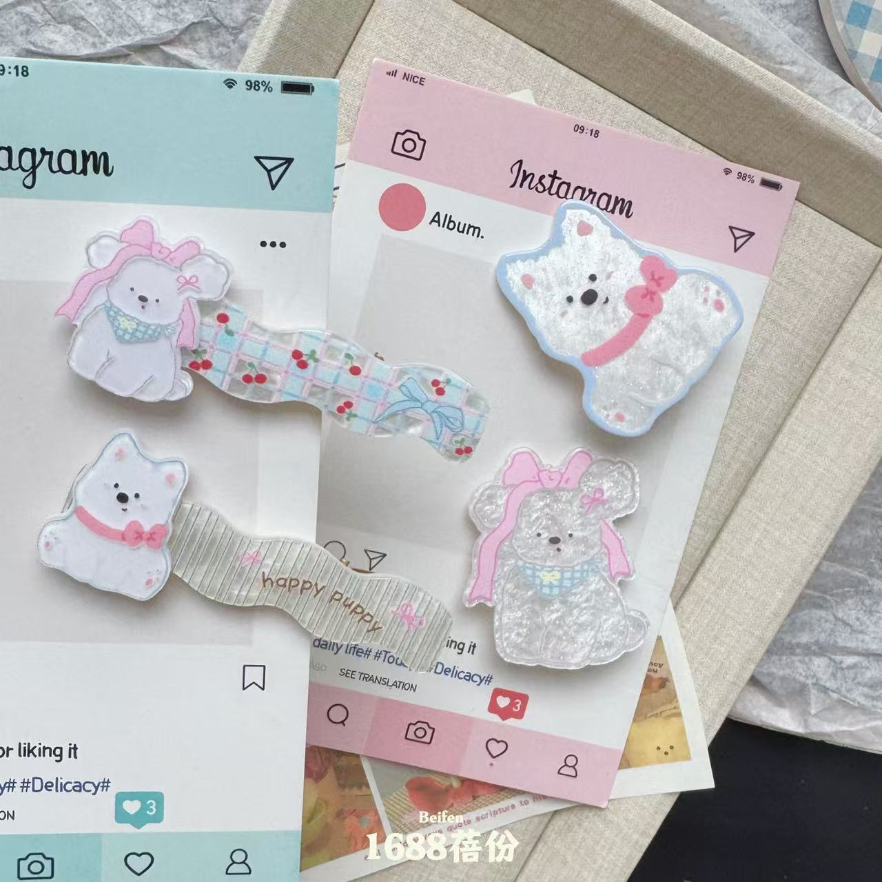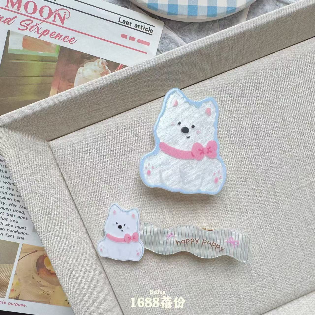 귀여운 만화 웨스트 하이랜드 강아지 헤어핀 활 웨이브 긴 덕빌 클립 인스 타 그램 소녀 심장 어린이 헤어 액세서리스토어 가기
