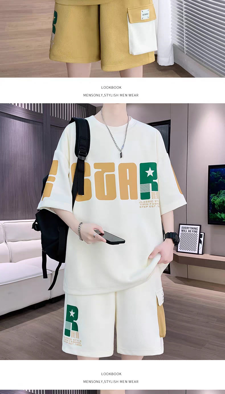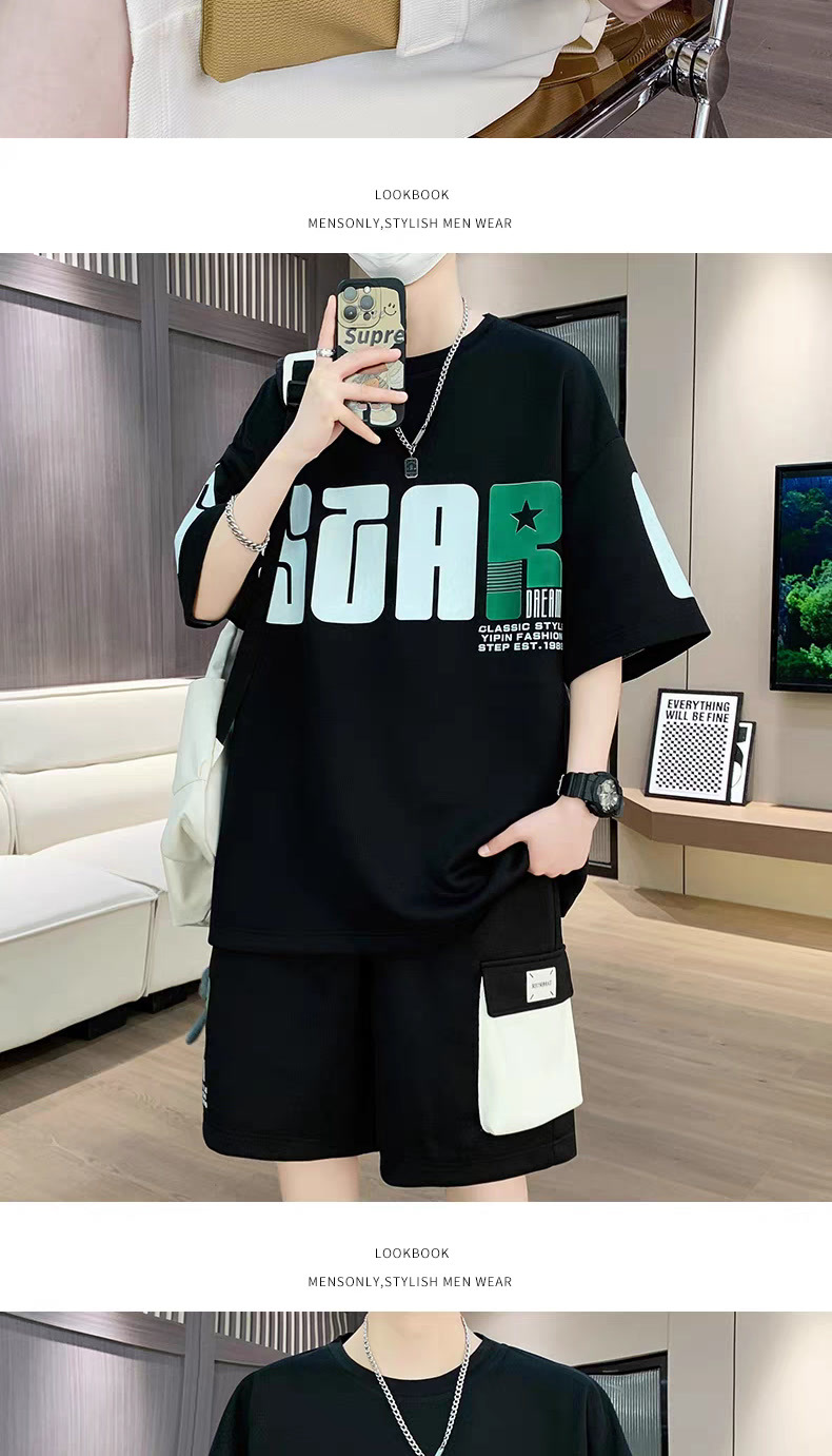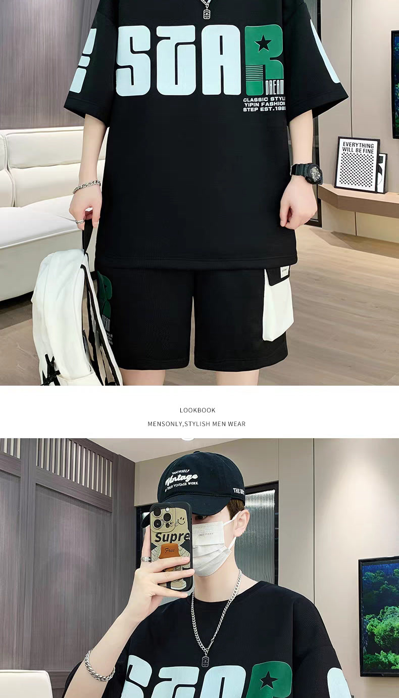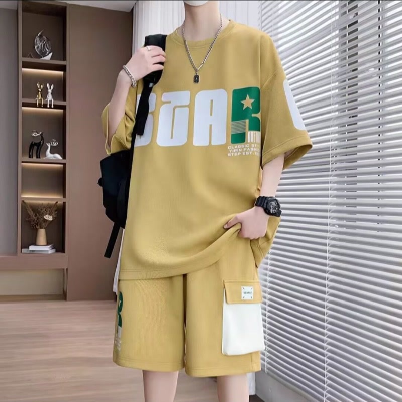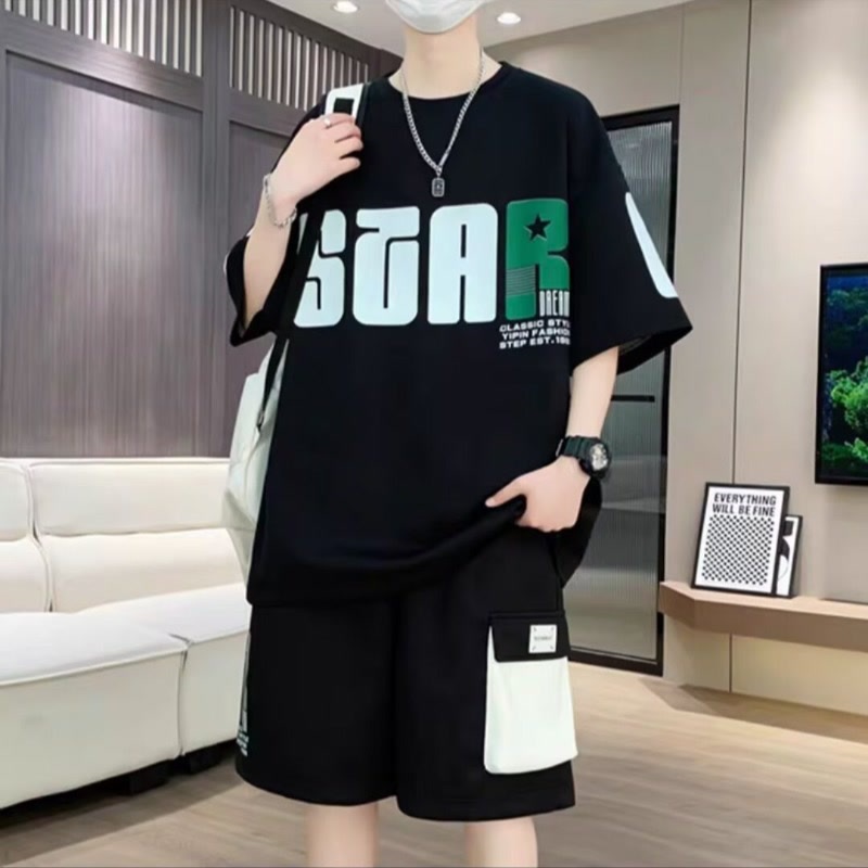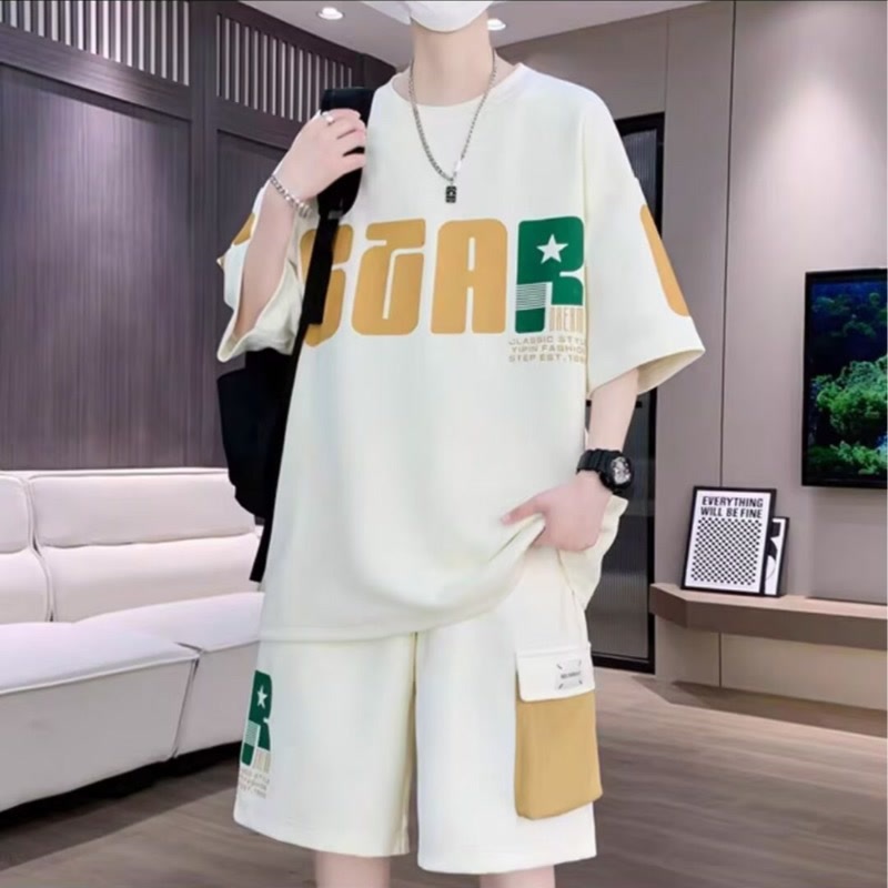 2025 뉴 스포츠 세트 남자 여름 청소년 트렌디 반팔 반바지 중학교 고등학생 잘 생긴 남성복