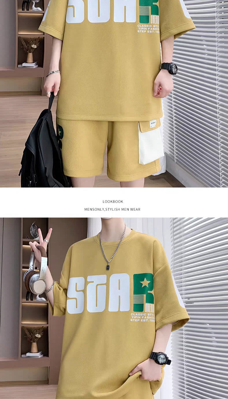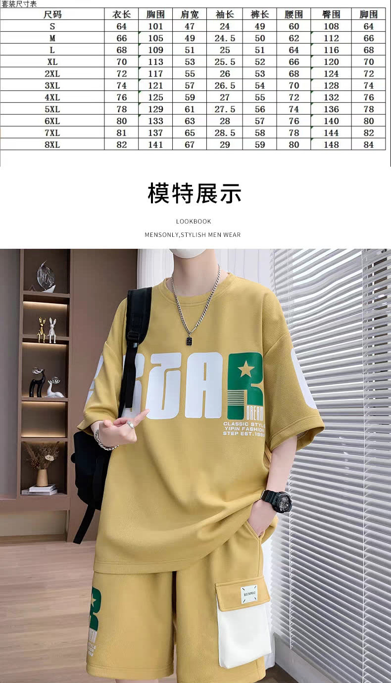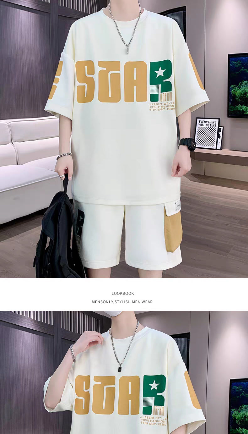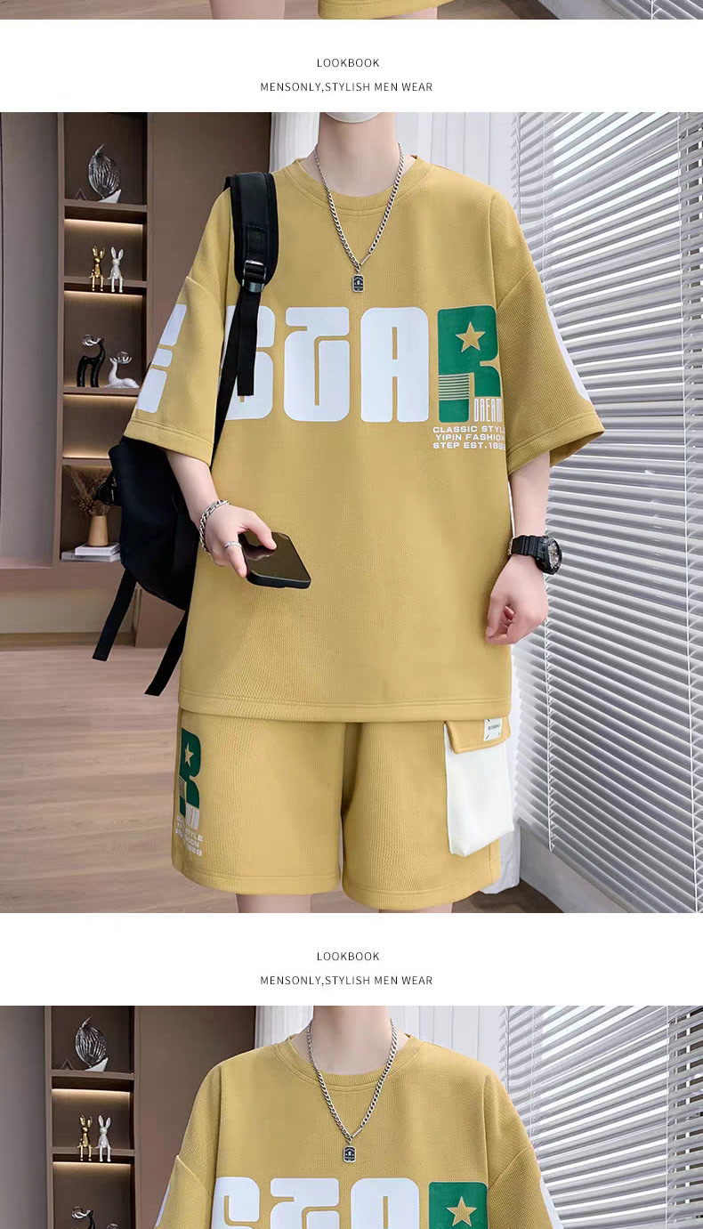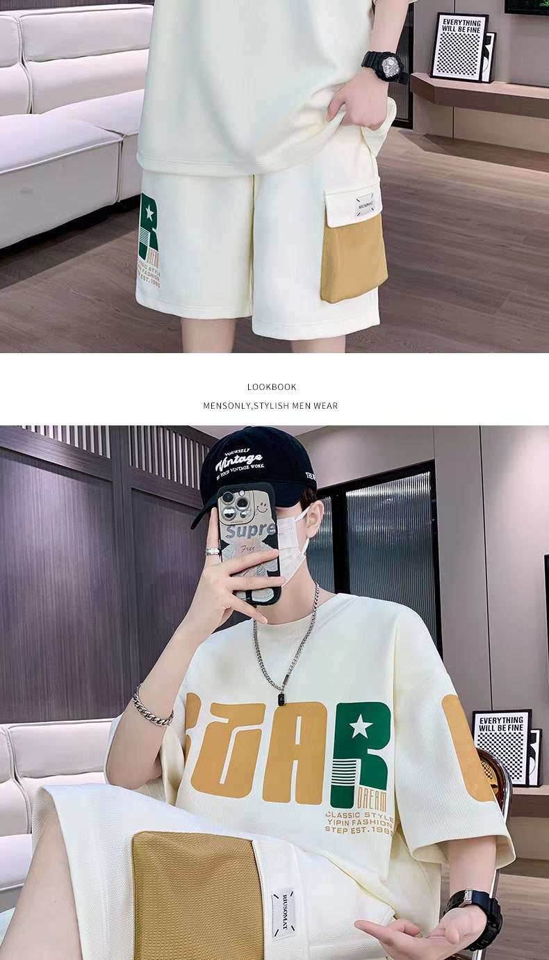 2025 뉴 스포츠 세트 남자 여름 청소년 트렌디 반팔 반바지 중학교 고등학생 잘 생긴 남성복
