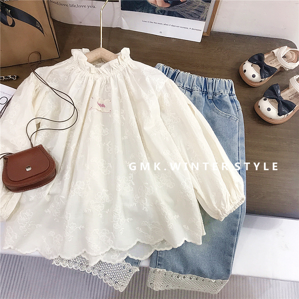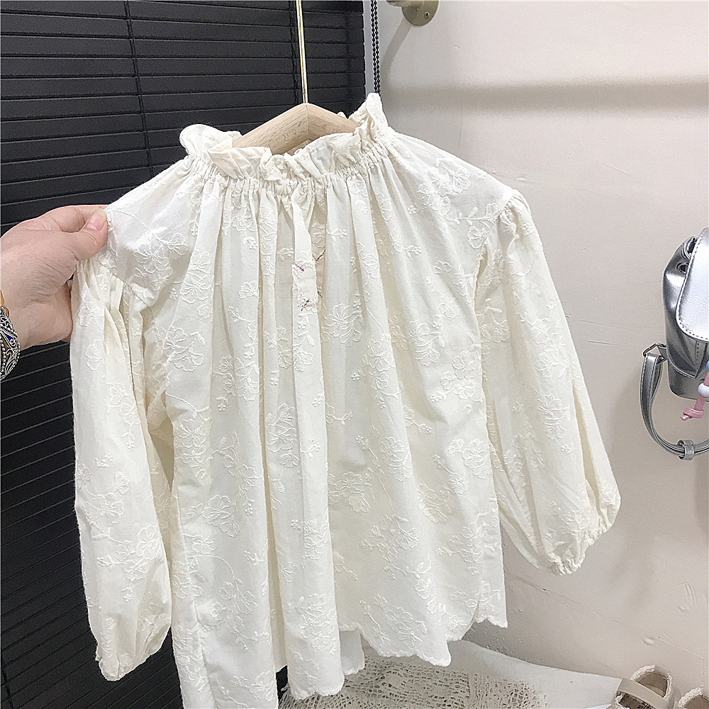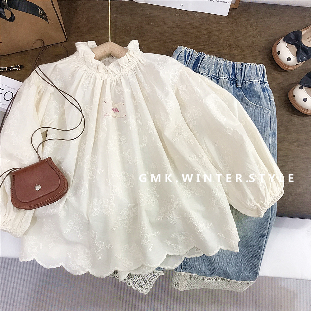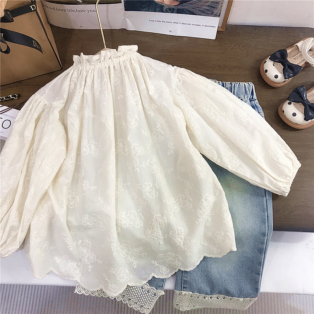어린이 셔츠 봄 새로운 한국 소녀 프랑스 중공업 자카드 자수 인형 셔츠 어린이 대외 무역 최고