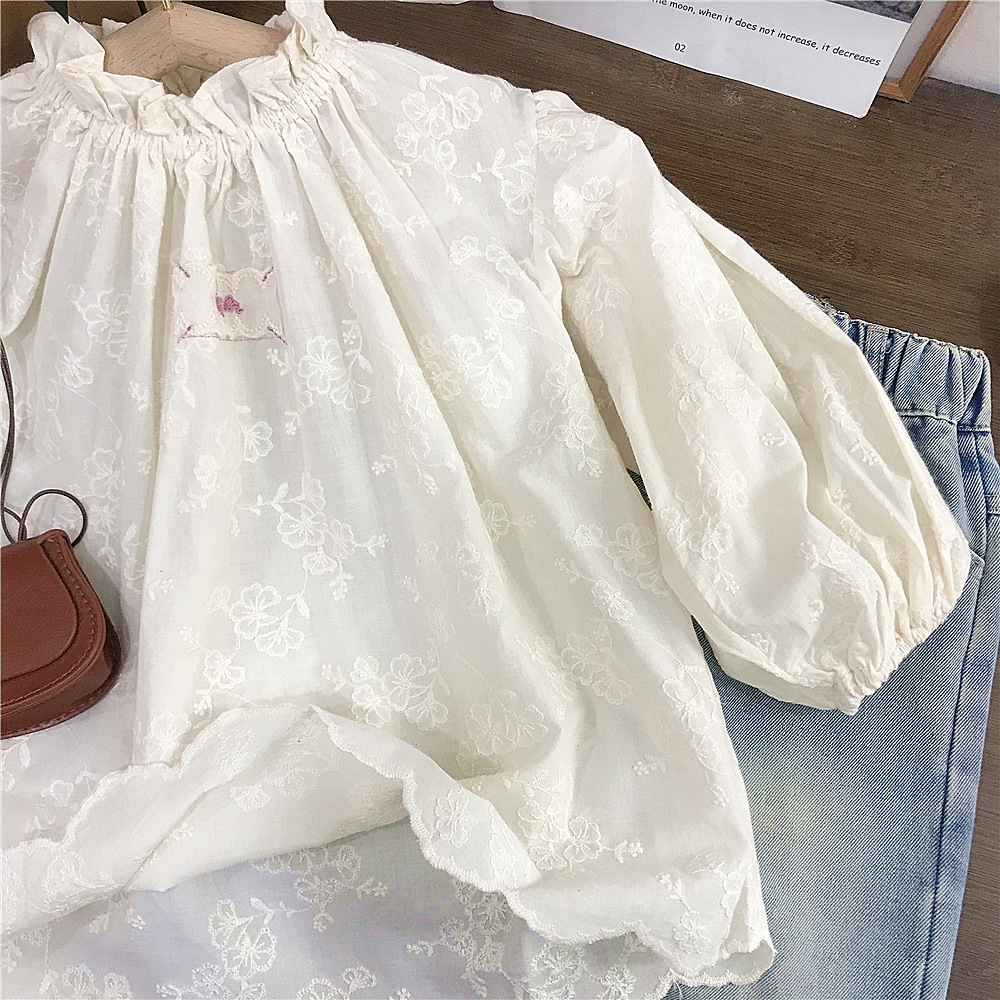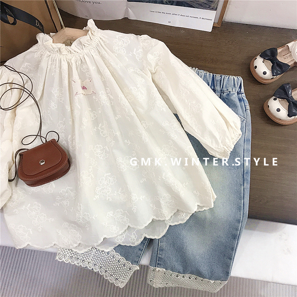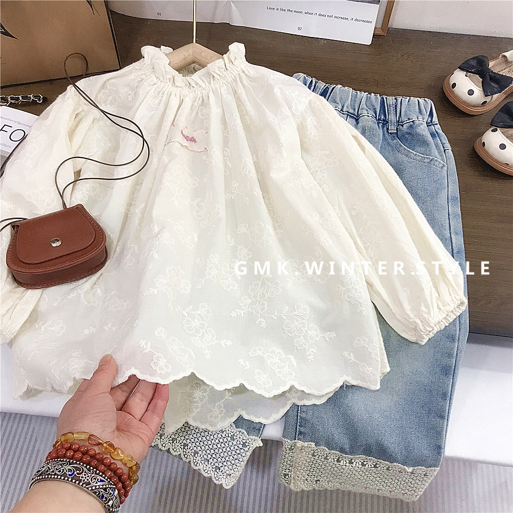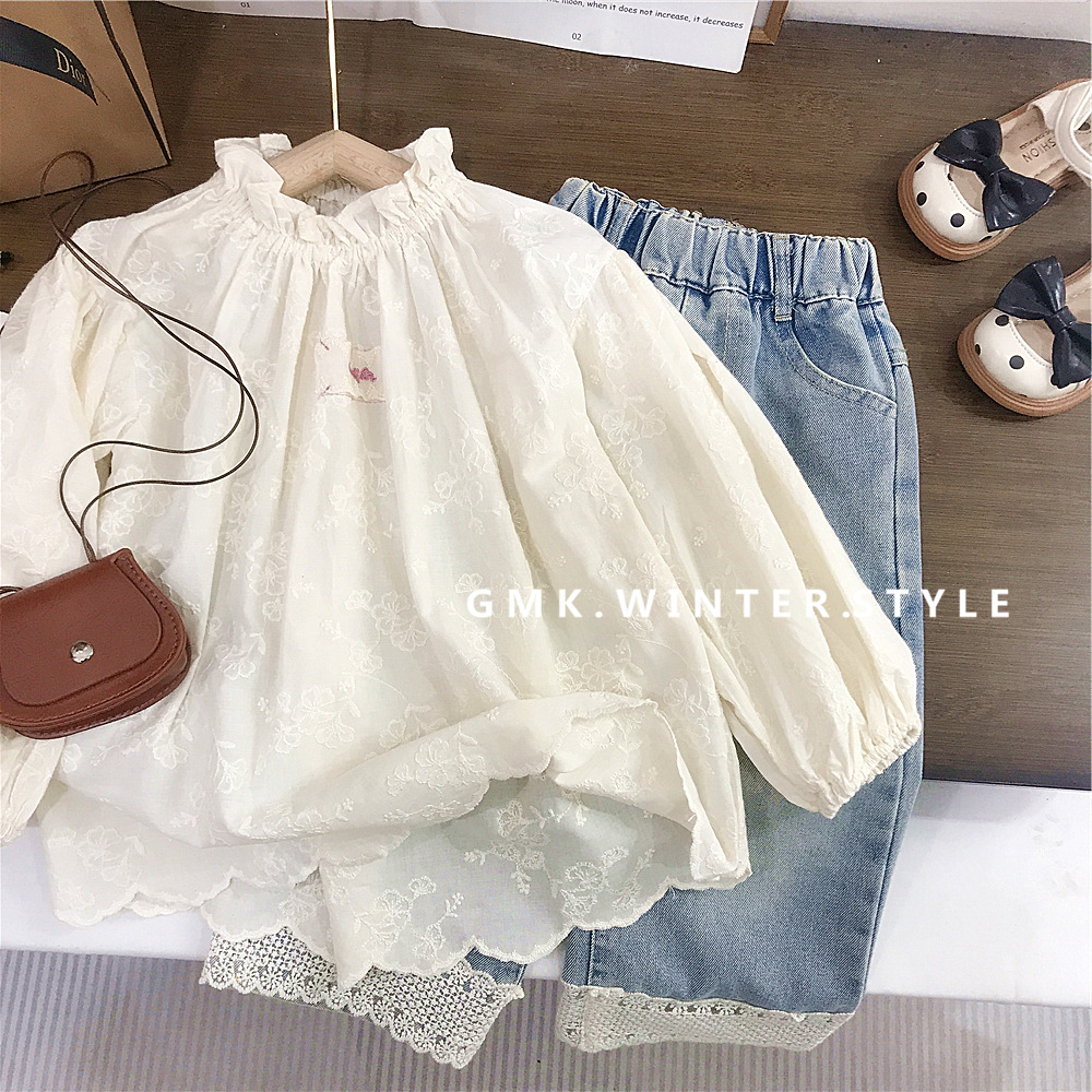 어린이 셔츠 봄 새로운 한국 소녀 프랑스 중공업 자카드 자수 인형 셔츠 어린이 대외 무역 최고