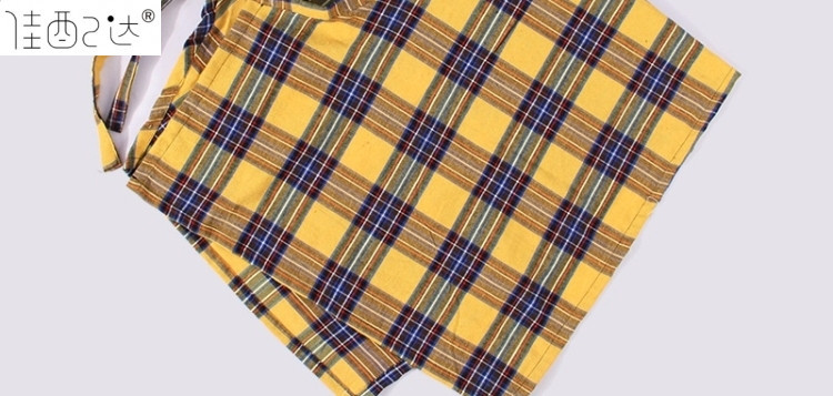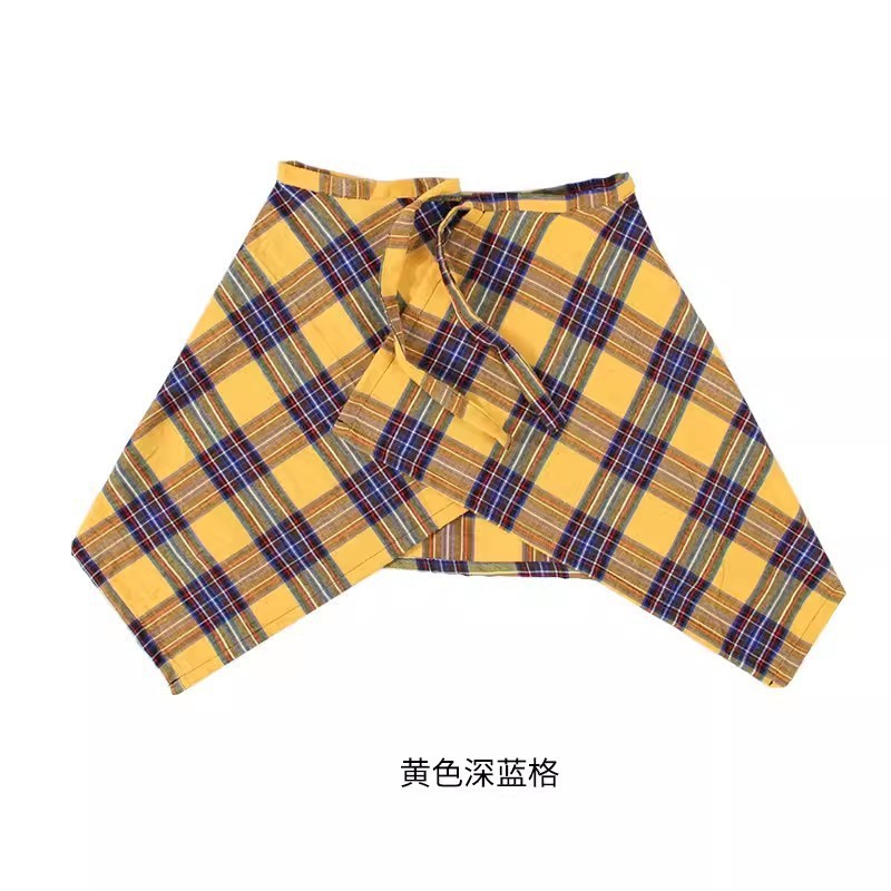 • 노란색, 진한 파란색 체크 무늬 프리 사이즈