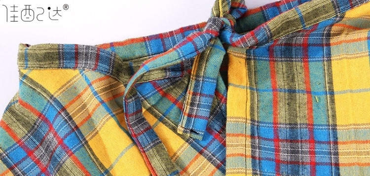• 노란색 하늘색 체크 무늬 프리 사이즈