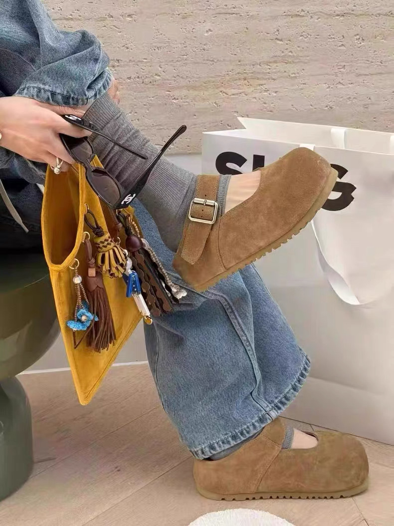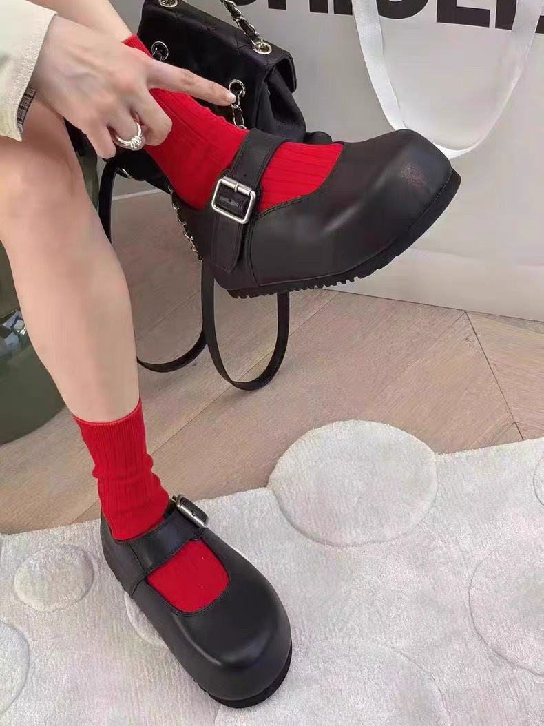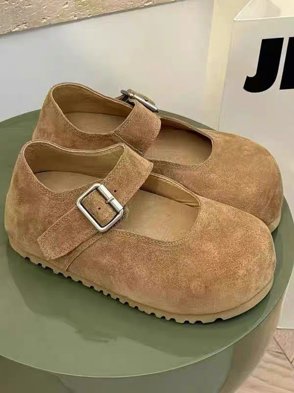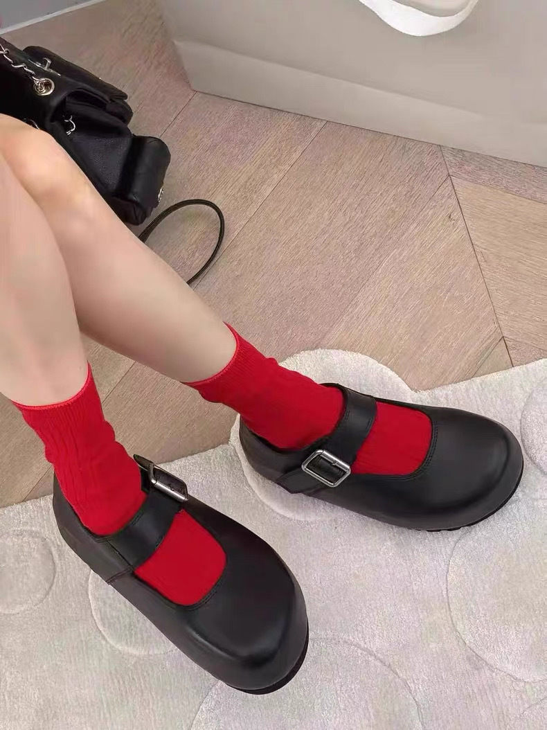 Cowhide 버전 ~ 한국판 큰 머리 높이 증가 얕은 입 버클 신발 여성의 2025 년 봄과 여름 메리 제인 여성 신발스토어 가기