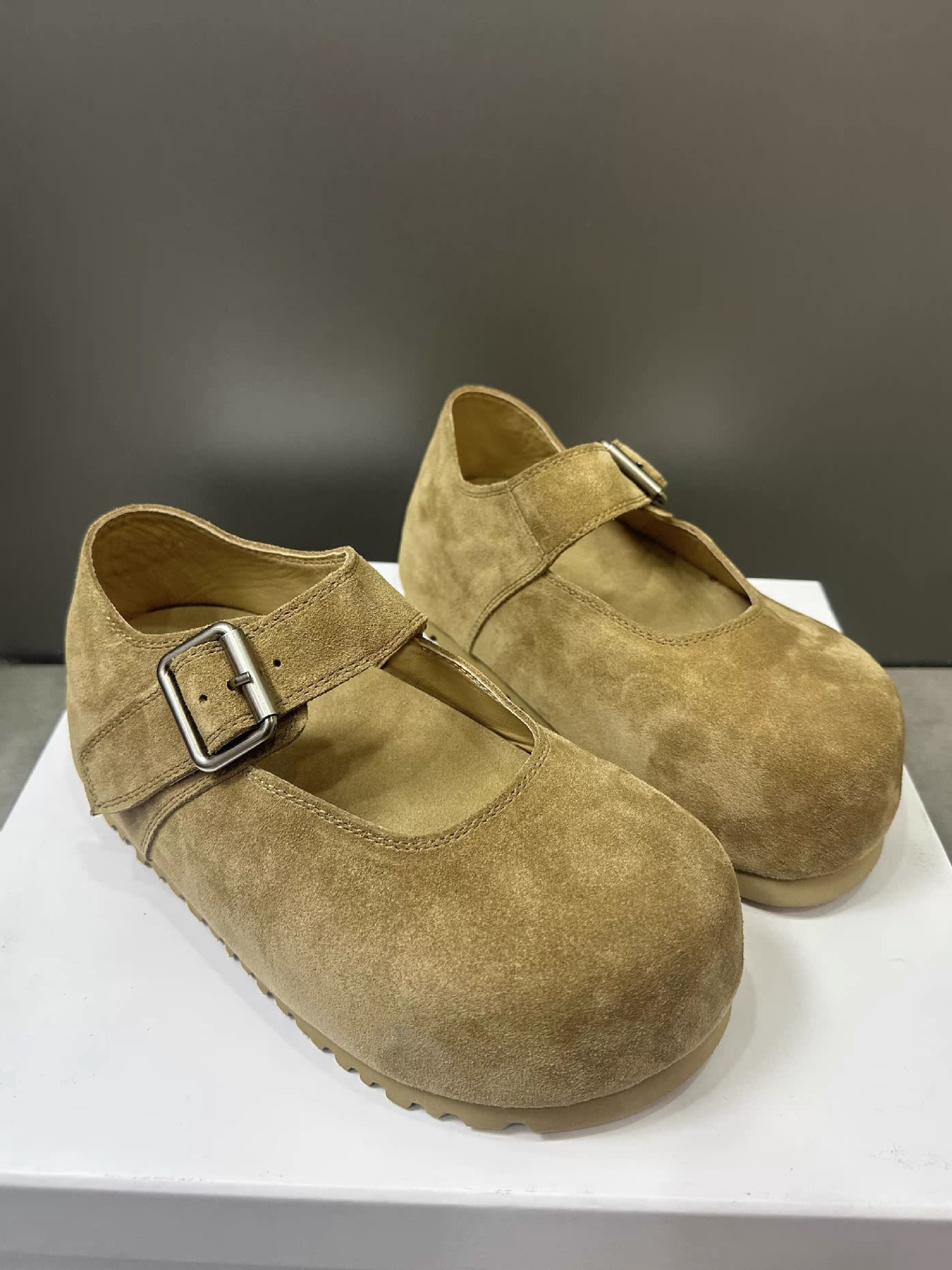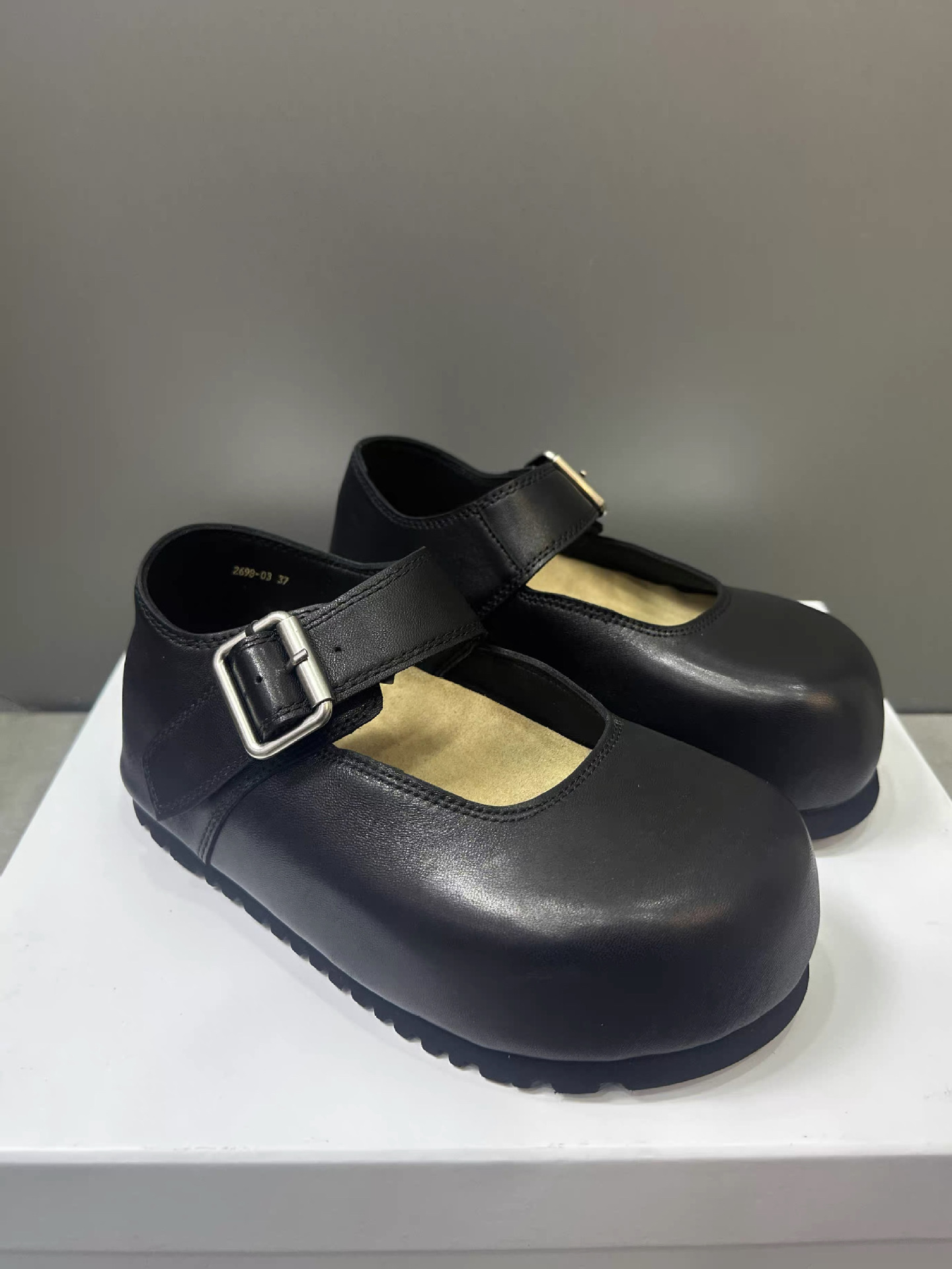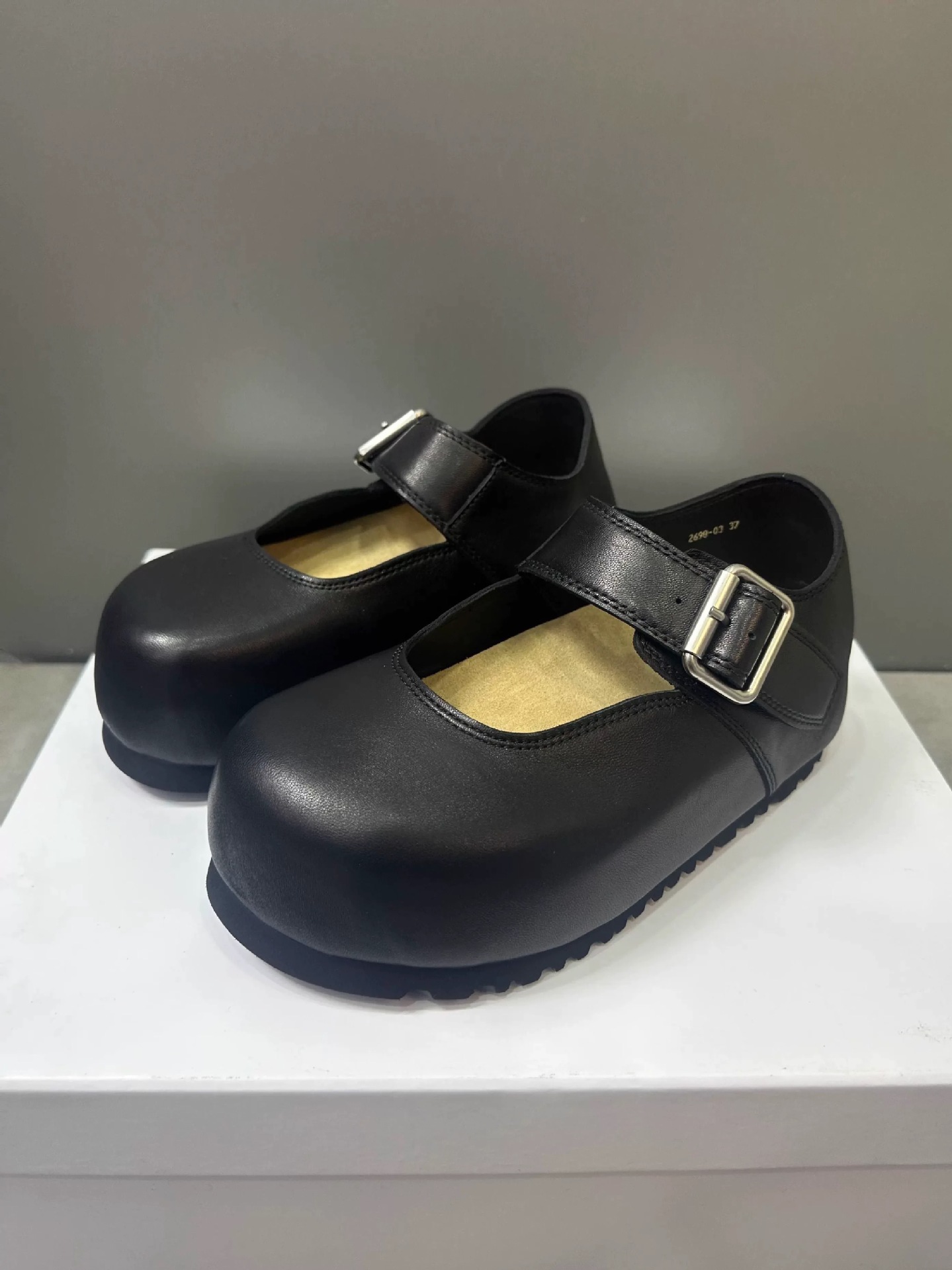 Cowhide 버전 ~ 한국판 큰 머리 높이 증가 얕은 입 버클 신발 여성의 2025 년 봄과 여름 메리 제인 여성 신발스토어 가기