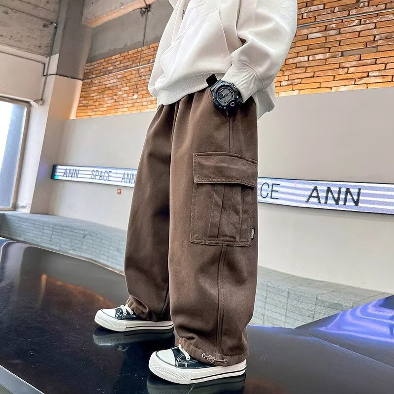 소년 바지 봄과 가을 2025 새로운 Yipi 잘 생긴 어린이 봄 캐주얼 스포츠 커버 바지 큰 소년 바지