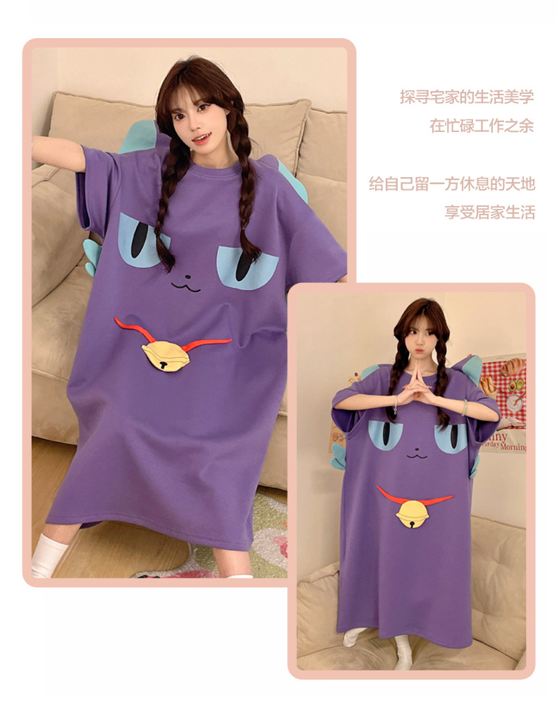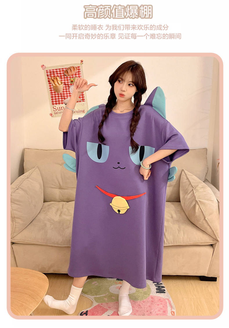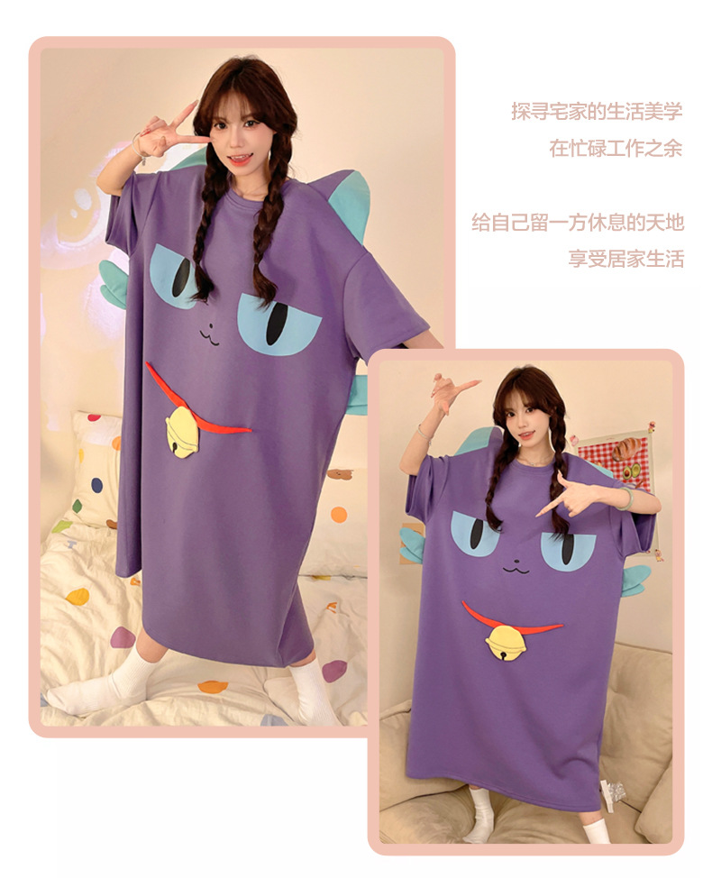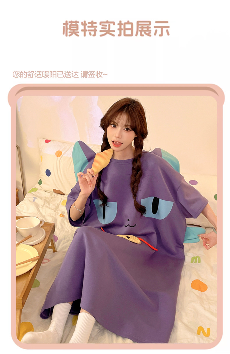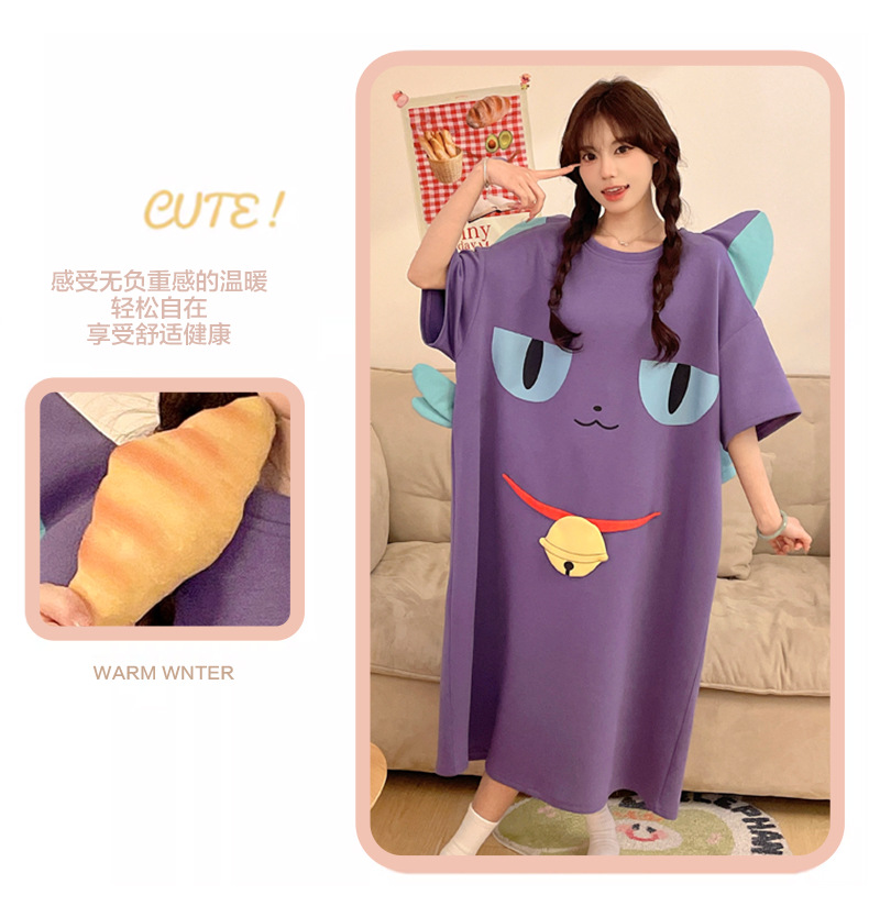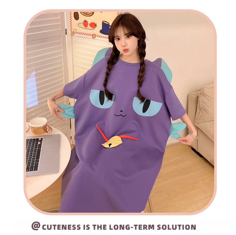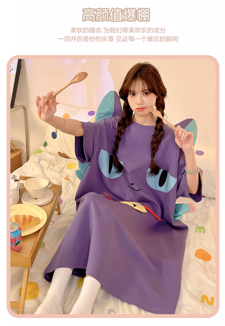 만화 Spinairu 잠옷 긴 여성의 여름 반팔 코튼 얇은 귀여운 플러스 사이즈 잠옷 겉옷스토어 가기