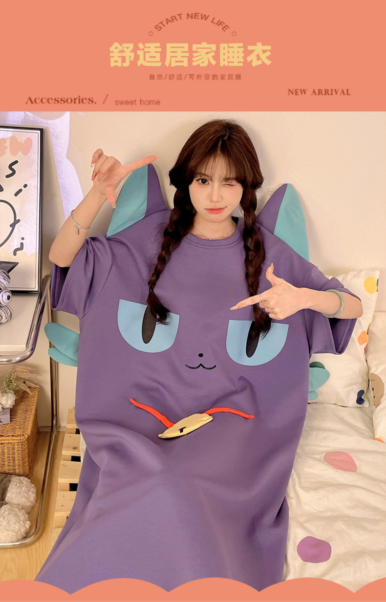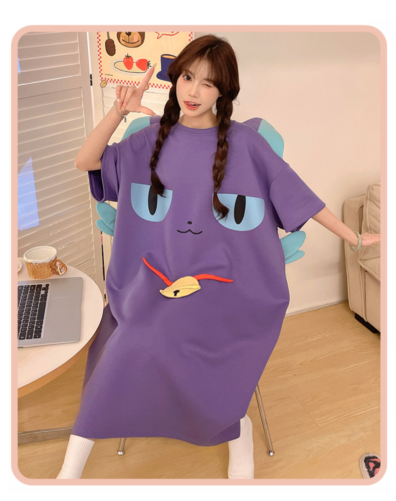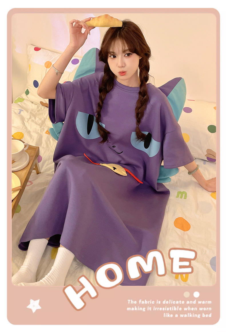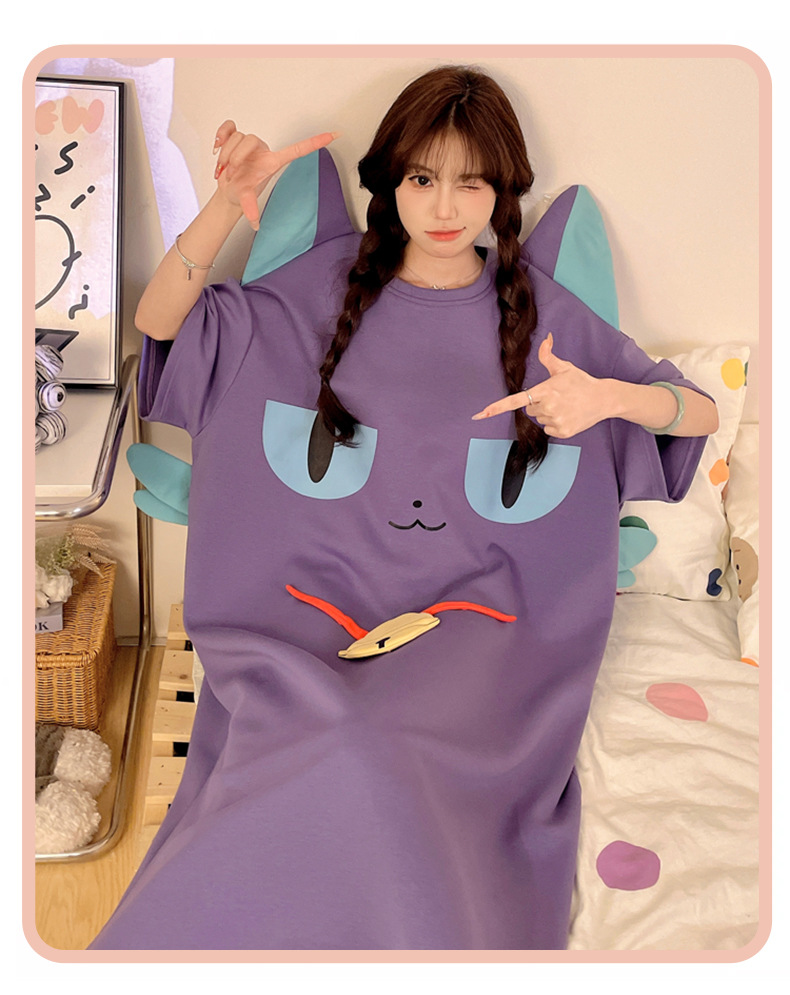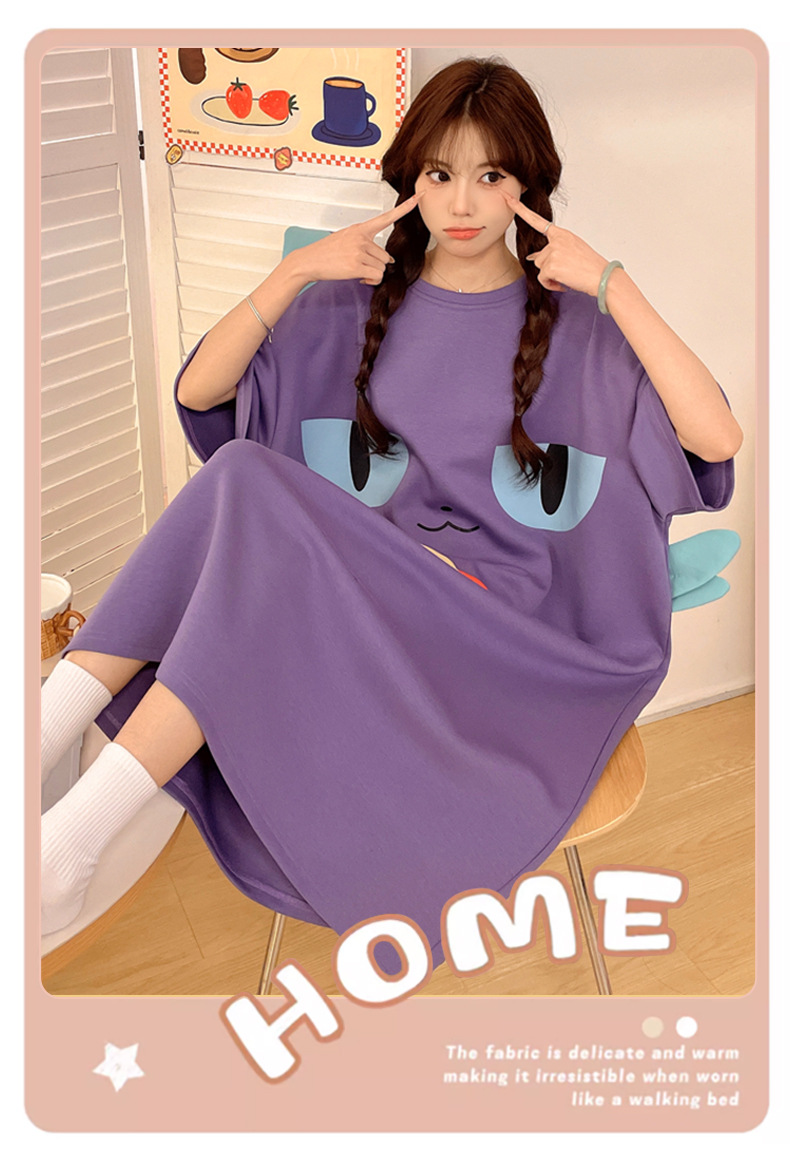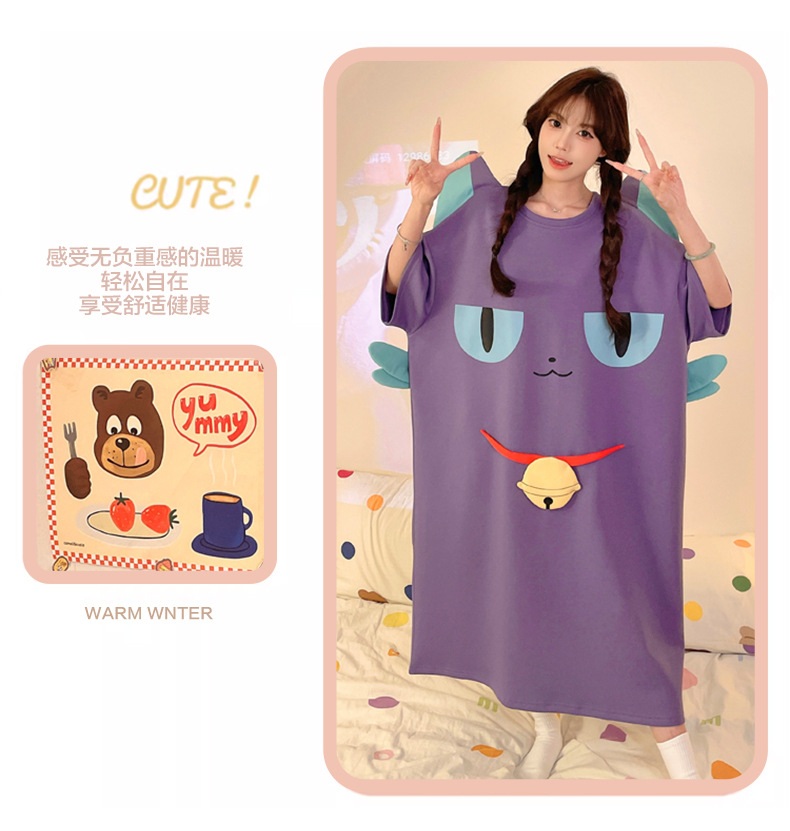 만화 Spinairu 잠옷 긴 여성의 여름 반팔 코튼 얇은 귀여운 플러스 사이즈 잠옷 겉옷스토어 가기