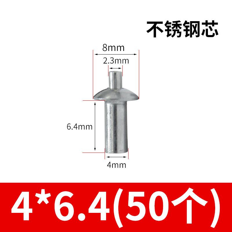 • 4*6.4(알루미늄 캡 + 스테인레스 스틸 코어)(50개)(개구부 4mm)