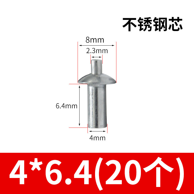 • 4*6.4(알루미늄 캡 + 스테인레스 스틸 코어)(20개)(개구부 4mm)