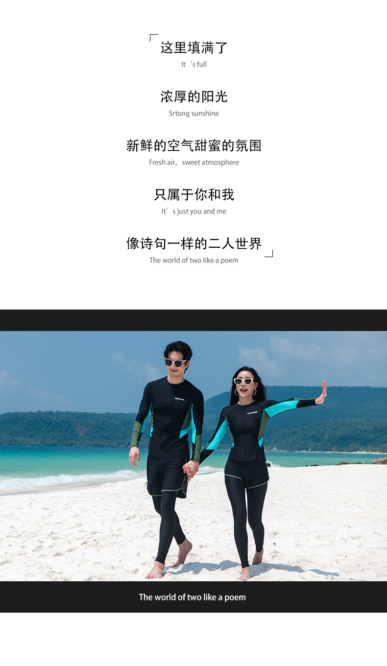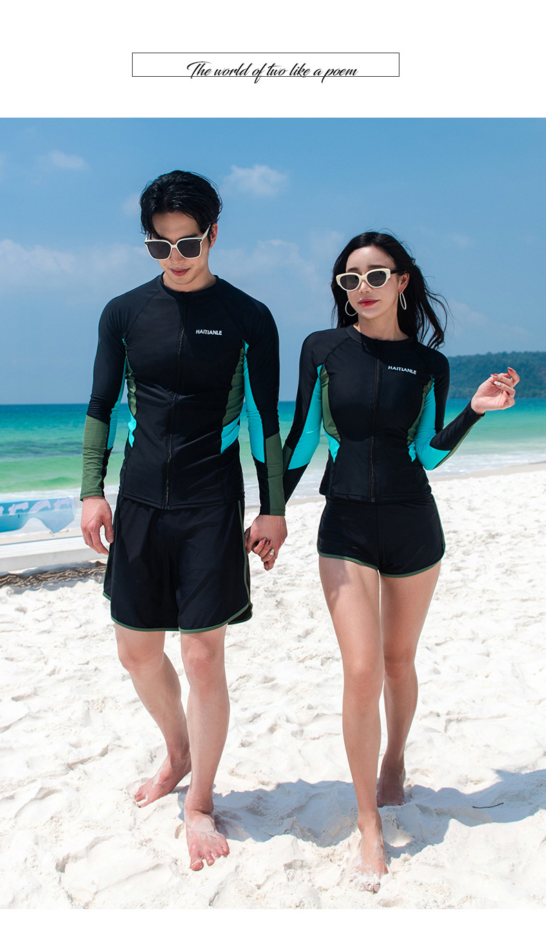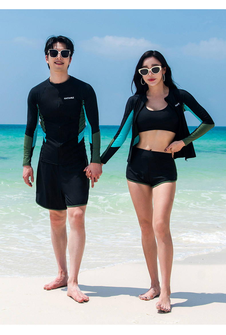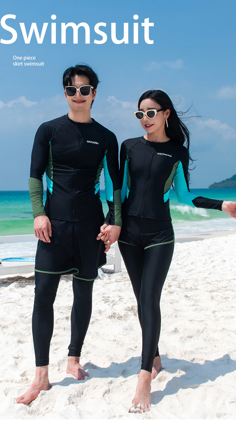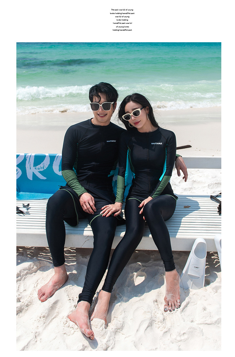 2025 새로운 커플 패션 수영복 분할 긴 소매 바지 세트 컬러 매칭 다이빙 세트 서핑 비치스토어 가기