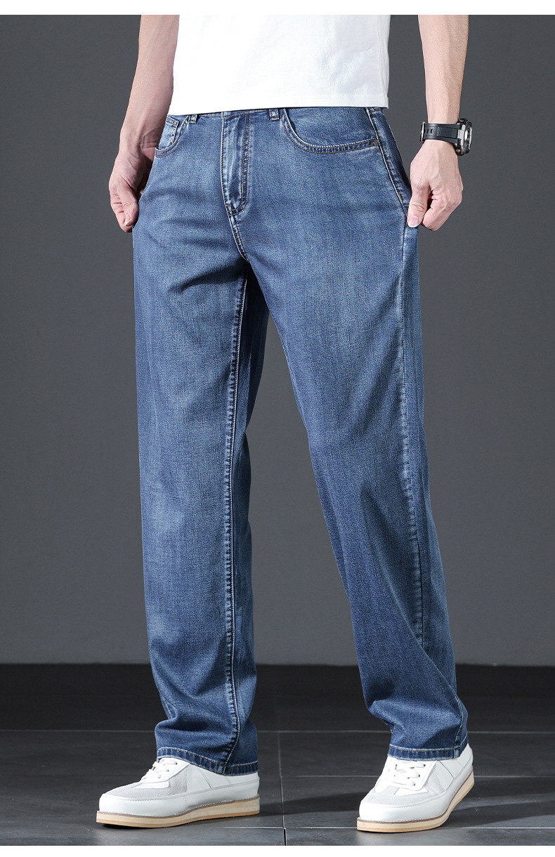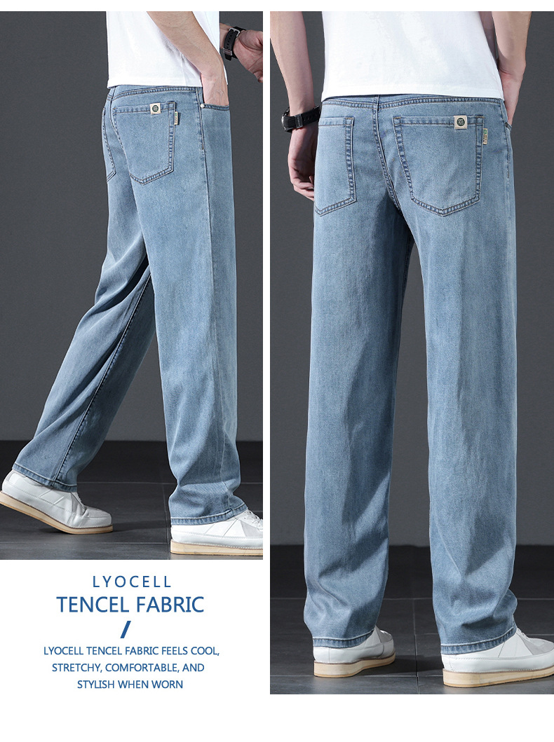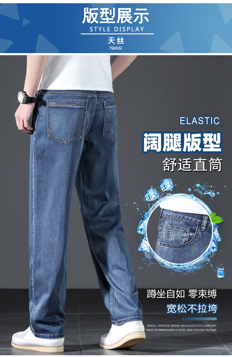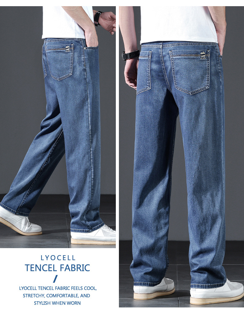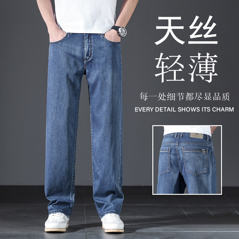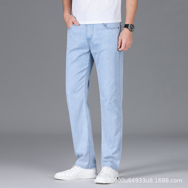 텐셀 여름 초박형 청바지 남성 높은 허리 느슨한 직선 탄성 비즈니스 캐주얼 뉴 플러스 사이즈 남성 바지스토어 가기