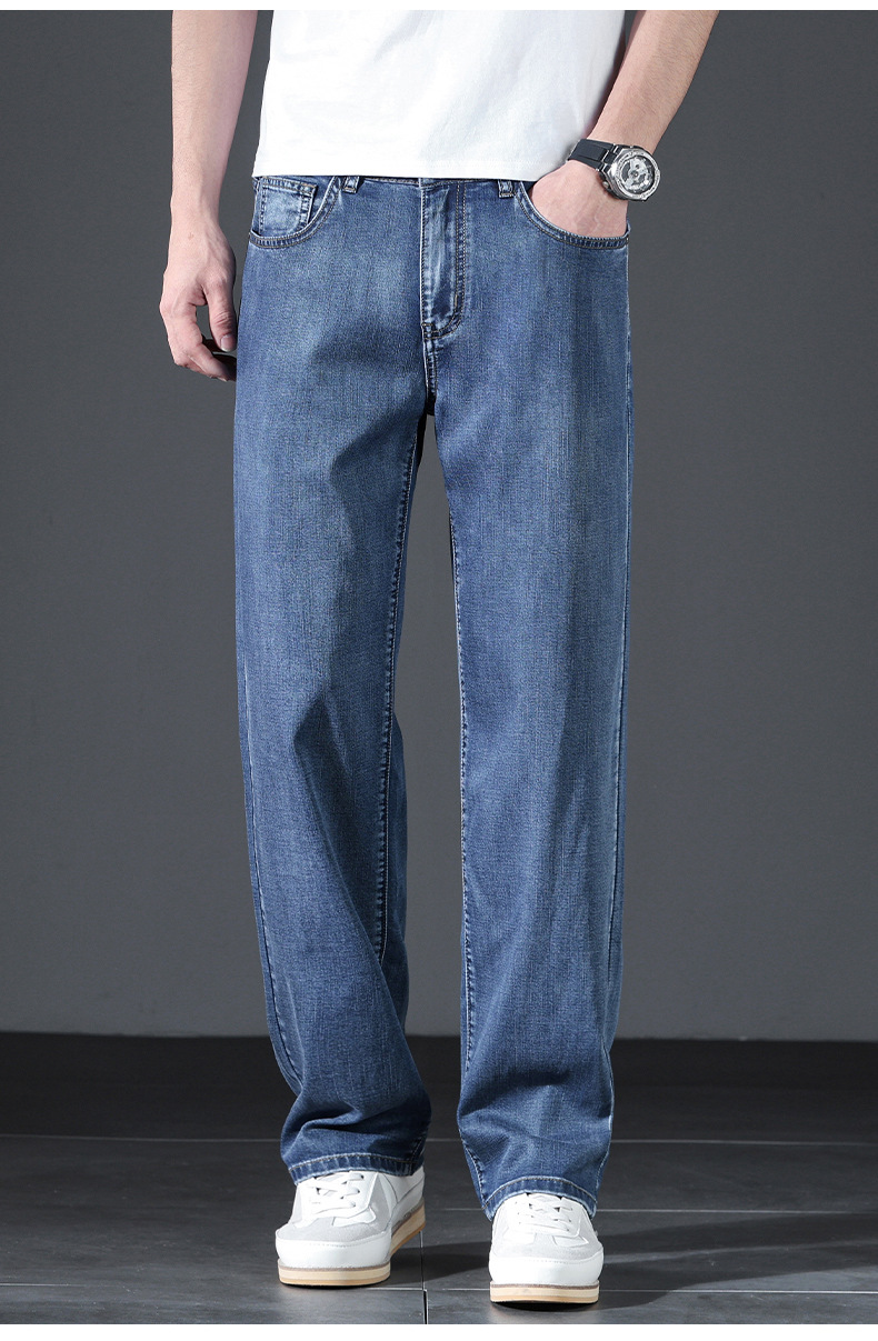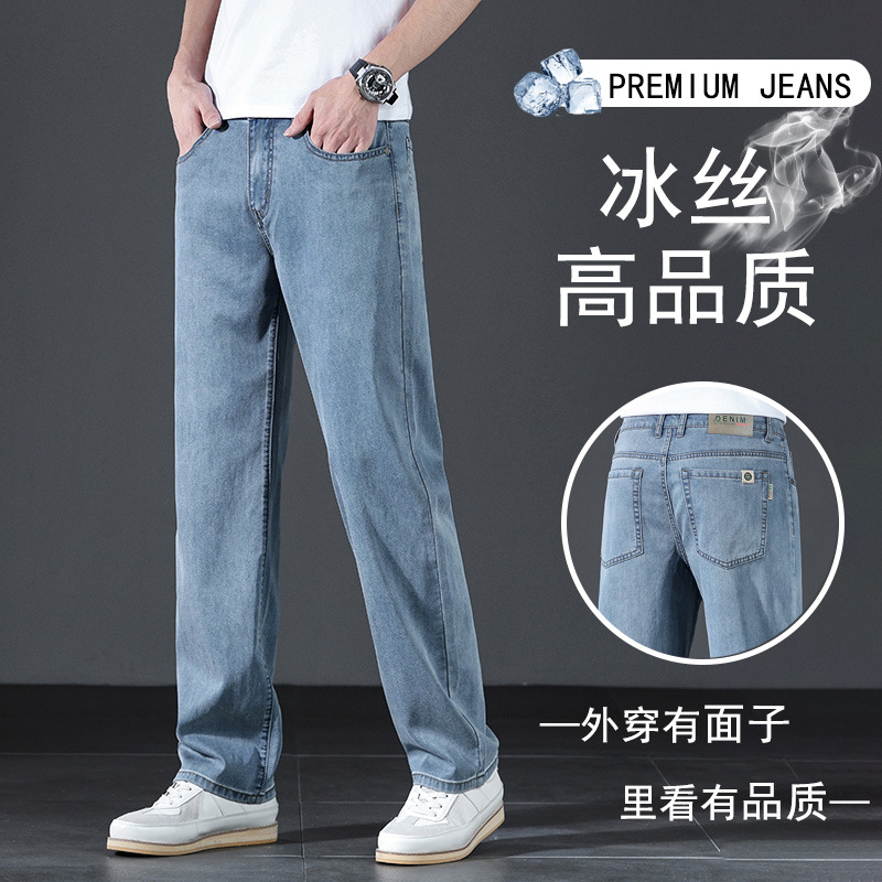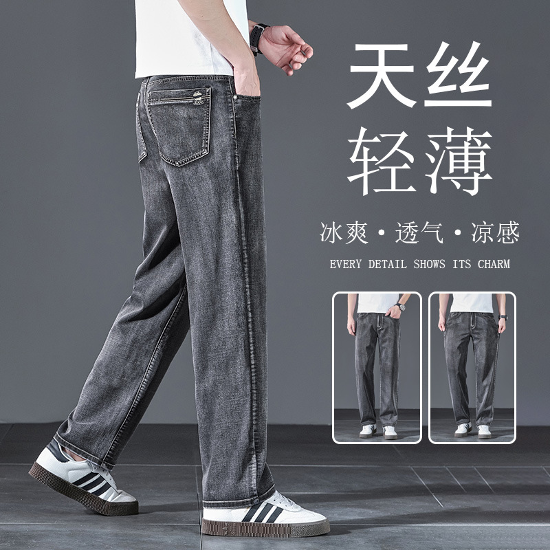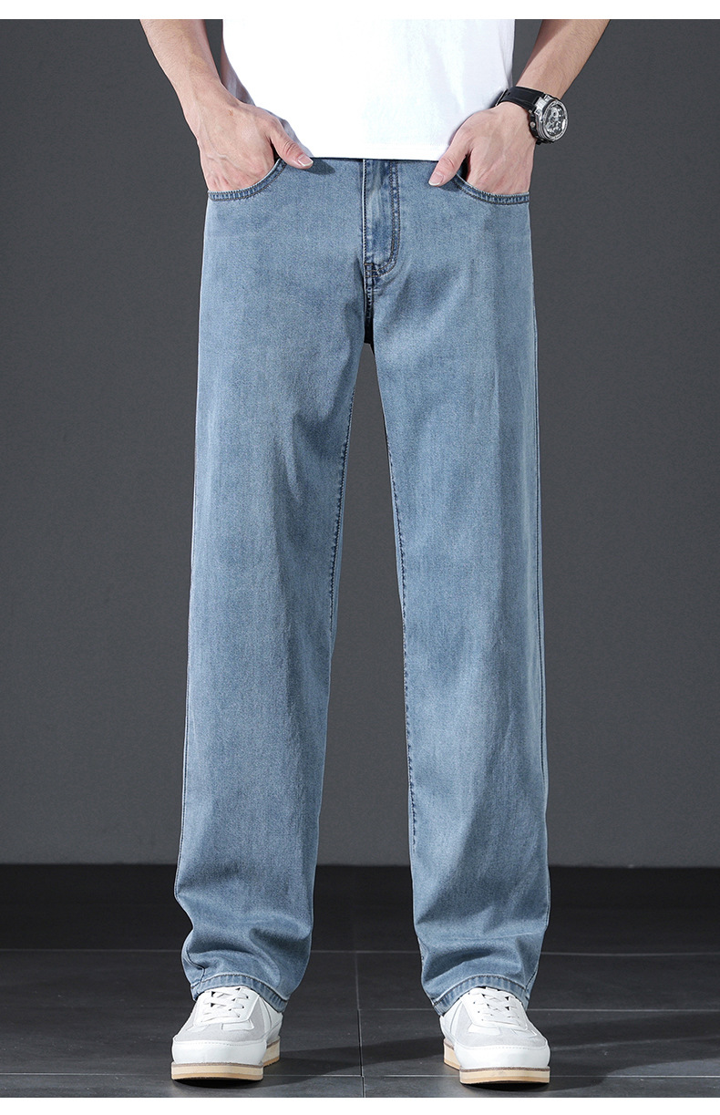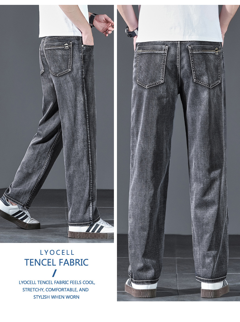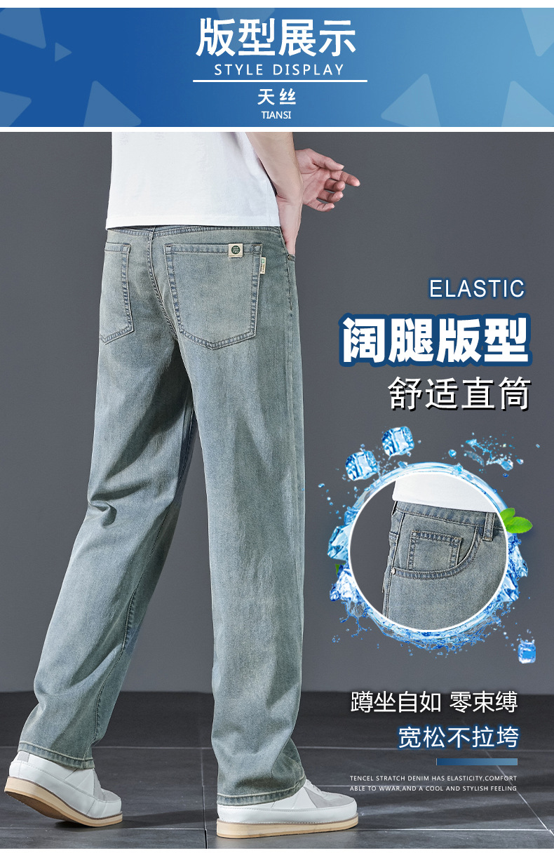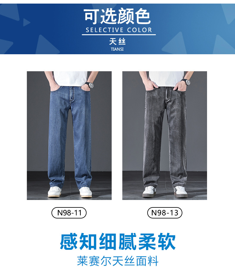 텐셀 여름 초박형 청바지 남성 높은 허리 느슨한 직선 탄성 비즈니스 캐주얼 뉴 플러스 사이즈 남성 바지스토어 가기