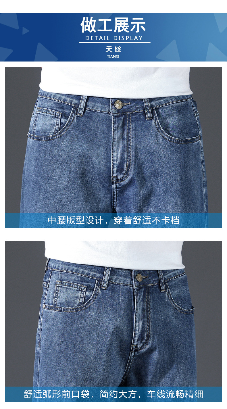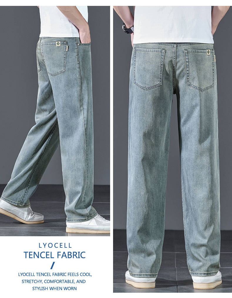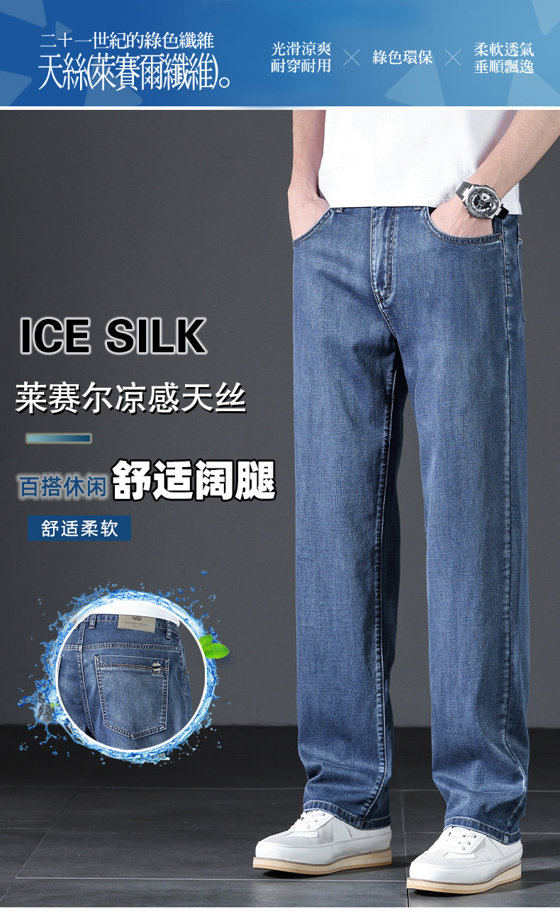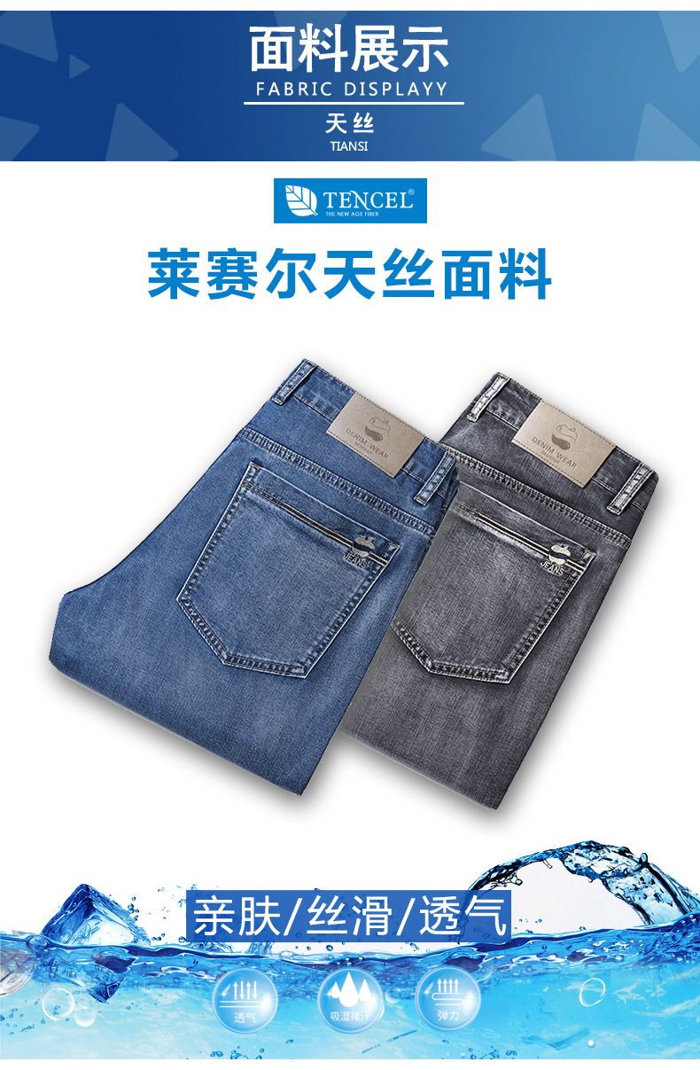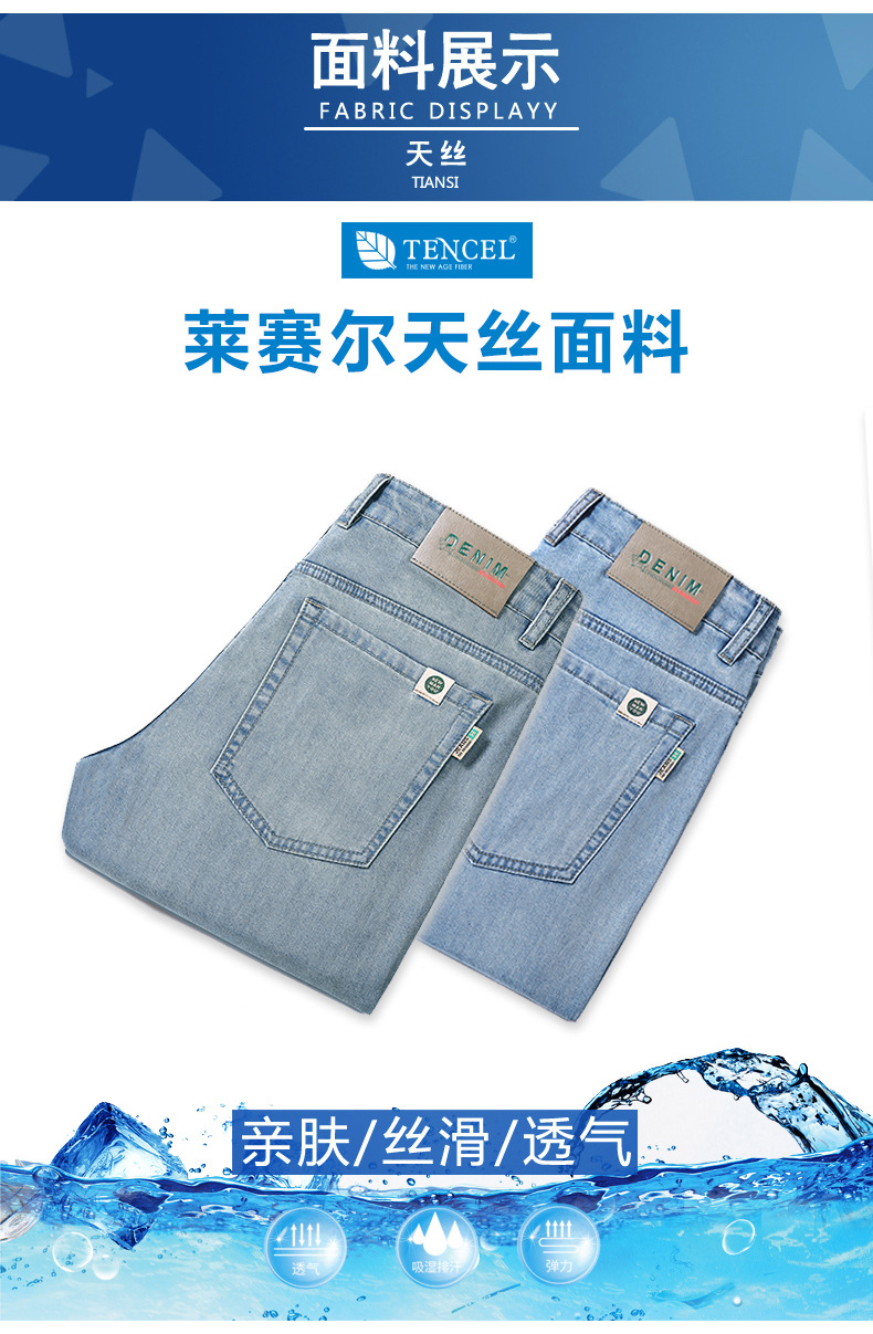 텐셀 여름 초박형 청바지 남성 높은 허리 느슨한 직선 탄성 비즈니스 캐주얼 뉴 플러스 사이즈 남성 바지스토어 가기