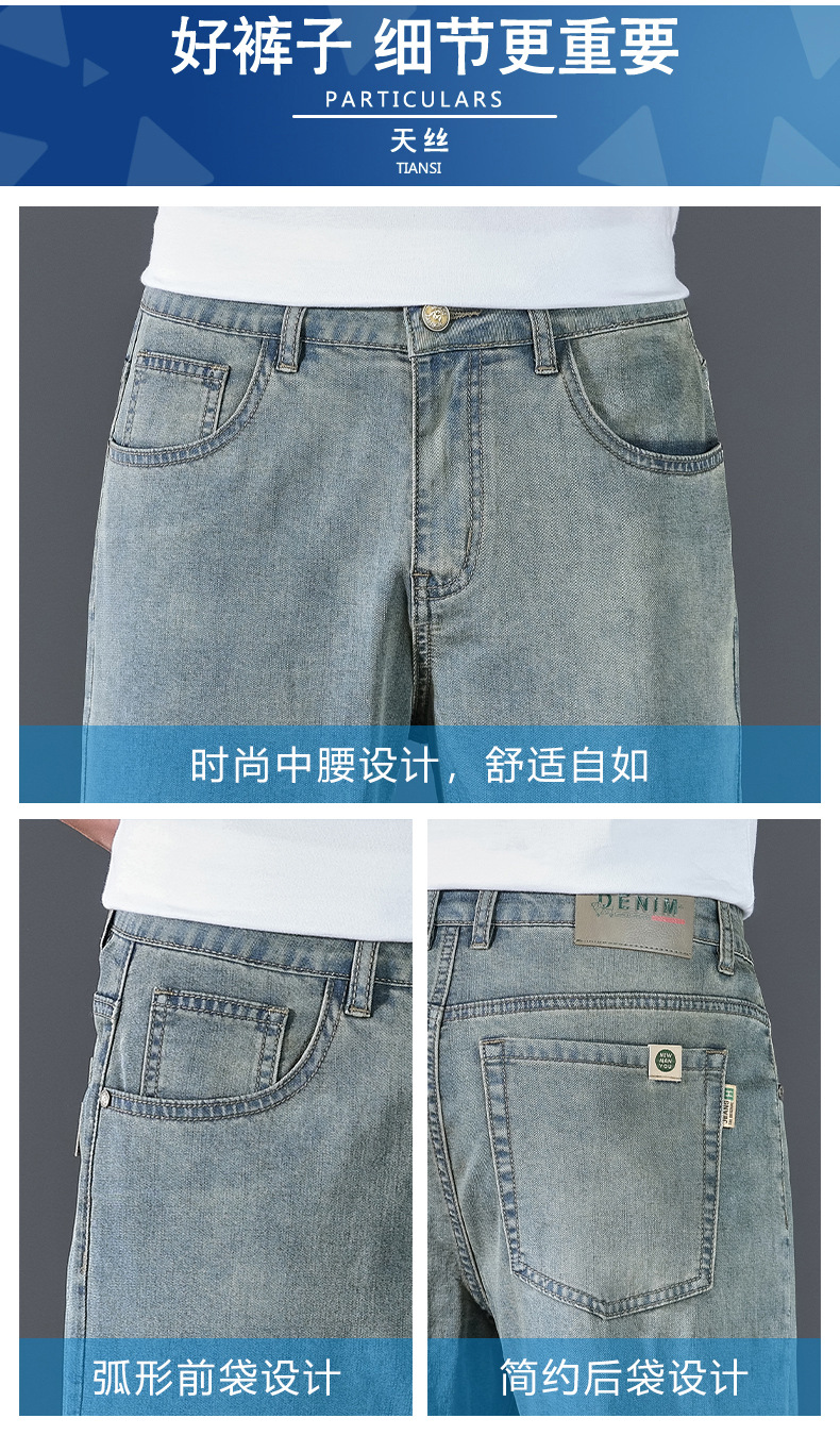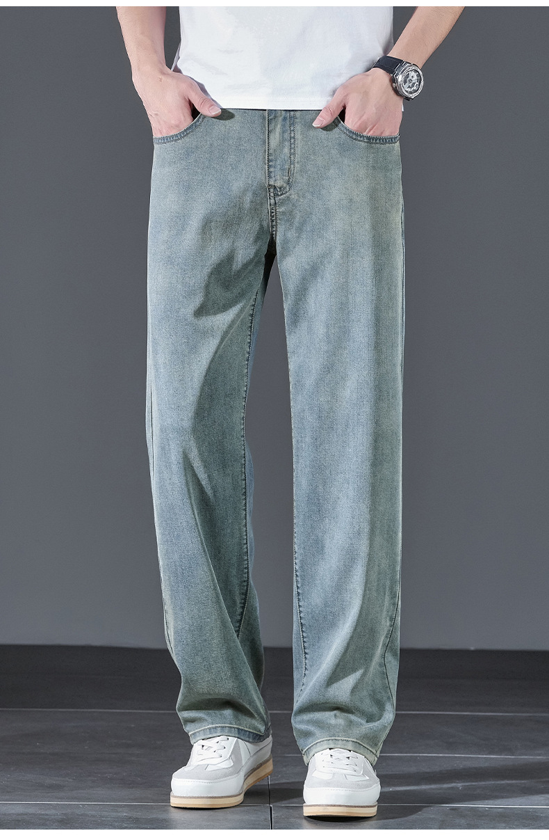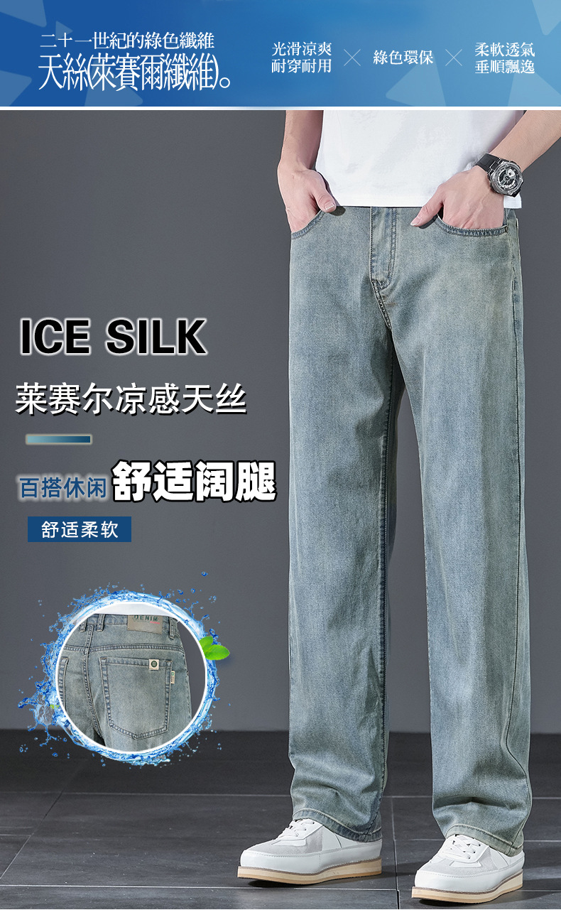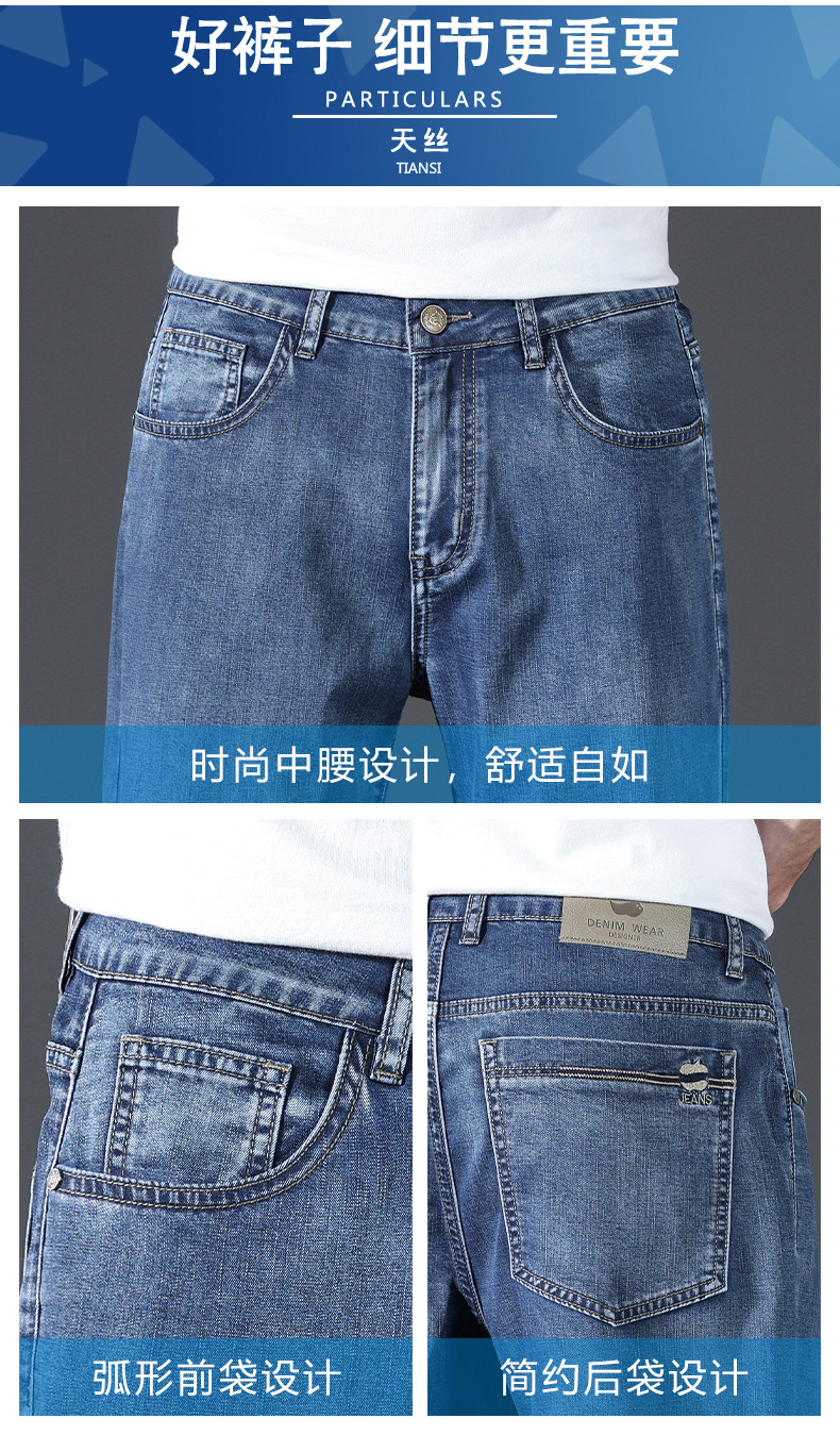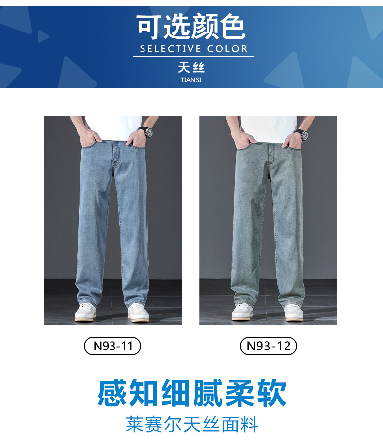 텐셀 여름 초박형 청바지 남성 높은 허리 느슨한 직선 탄성 비즈니스 캐주얼 뉴 플러스 사이즈 남성 바지스토어 가기