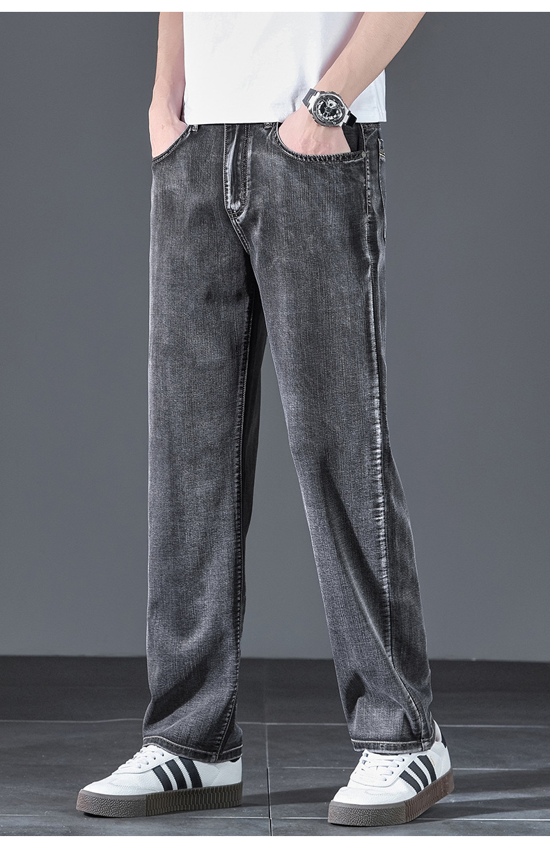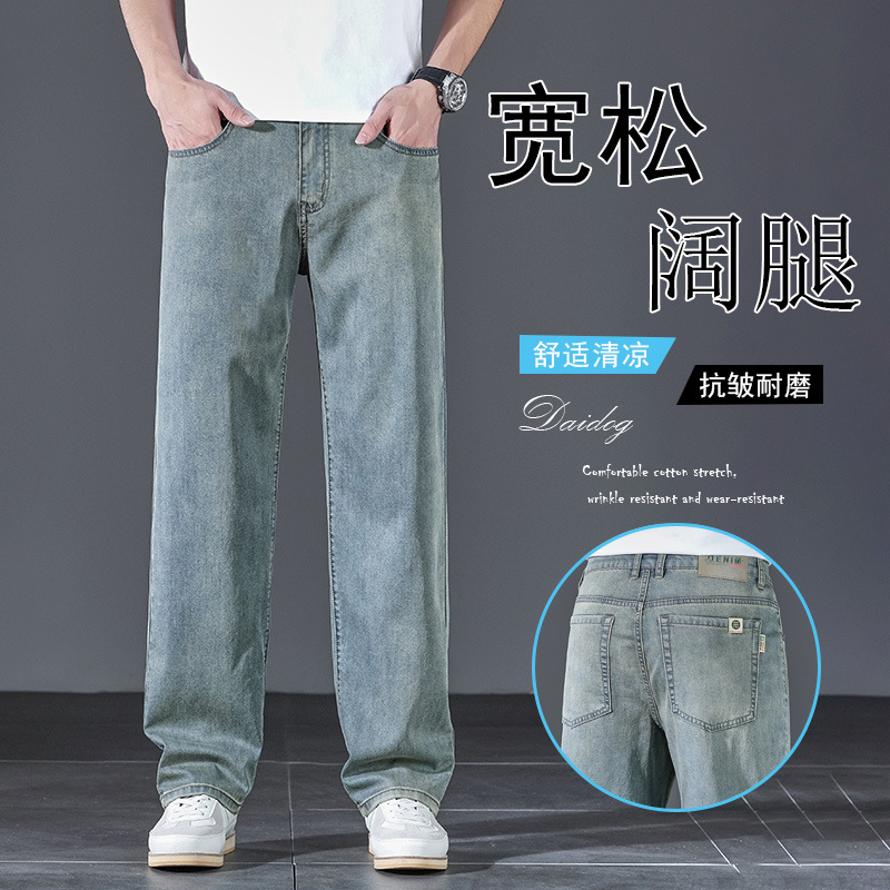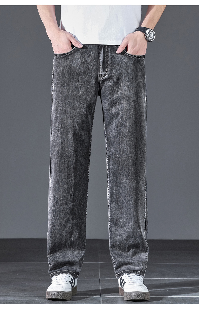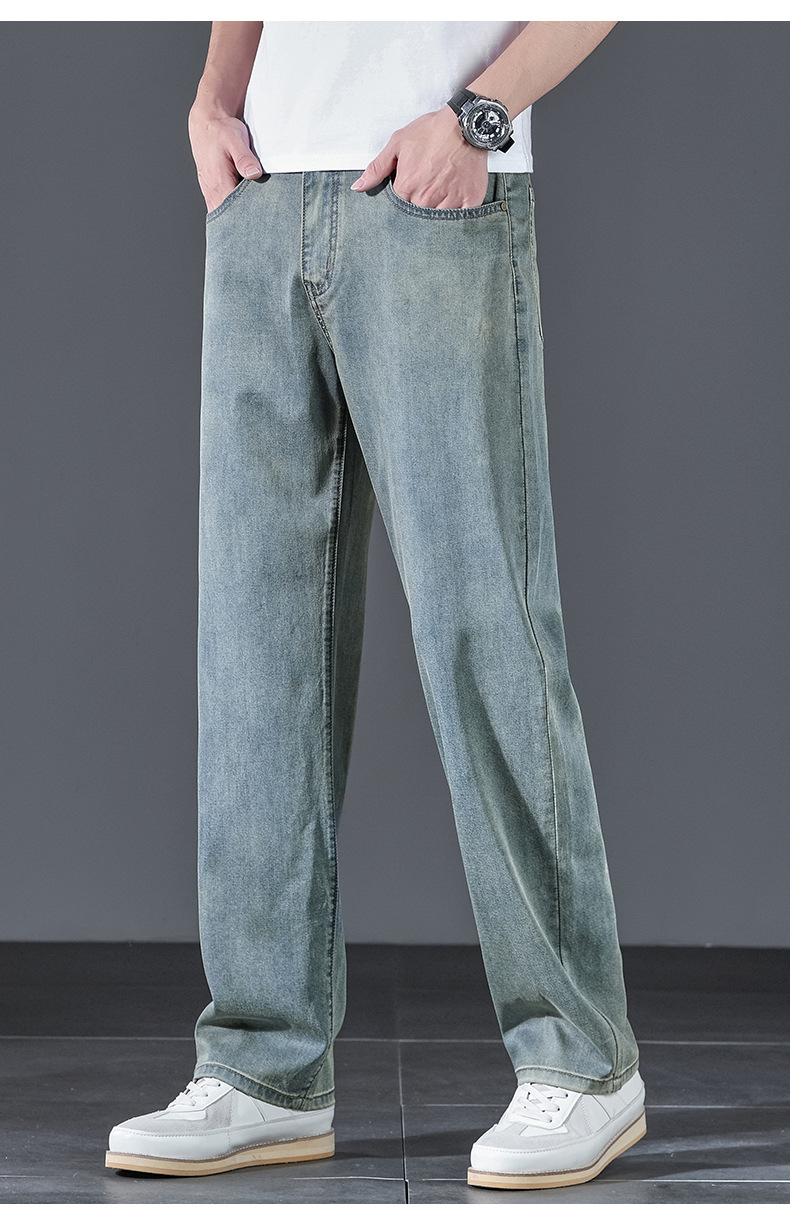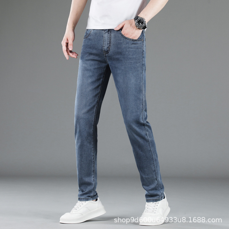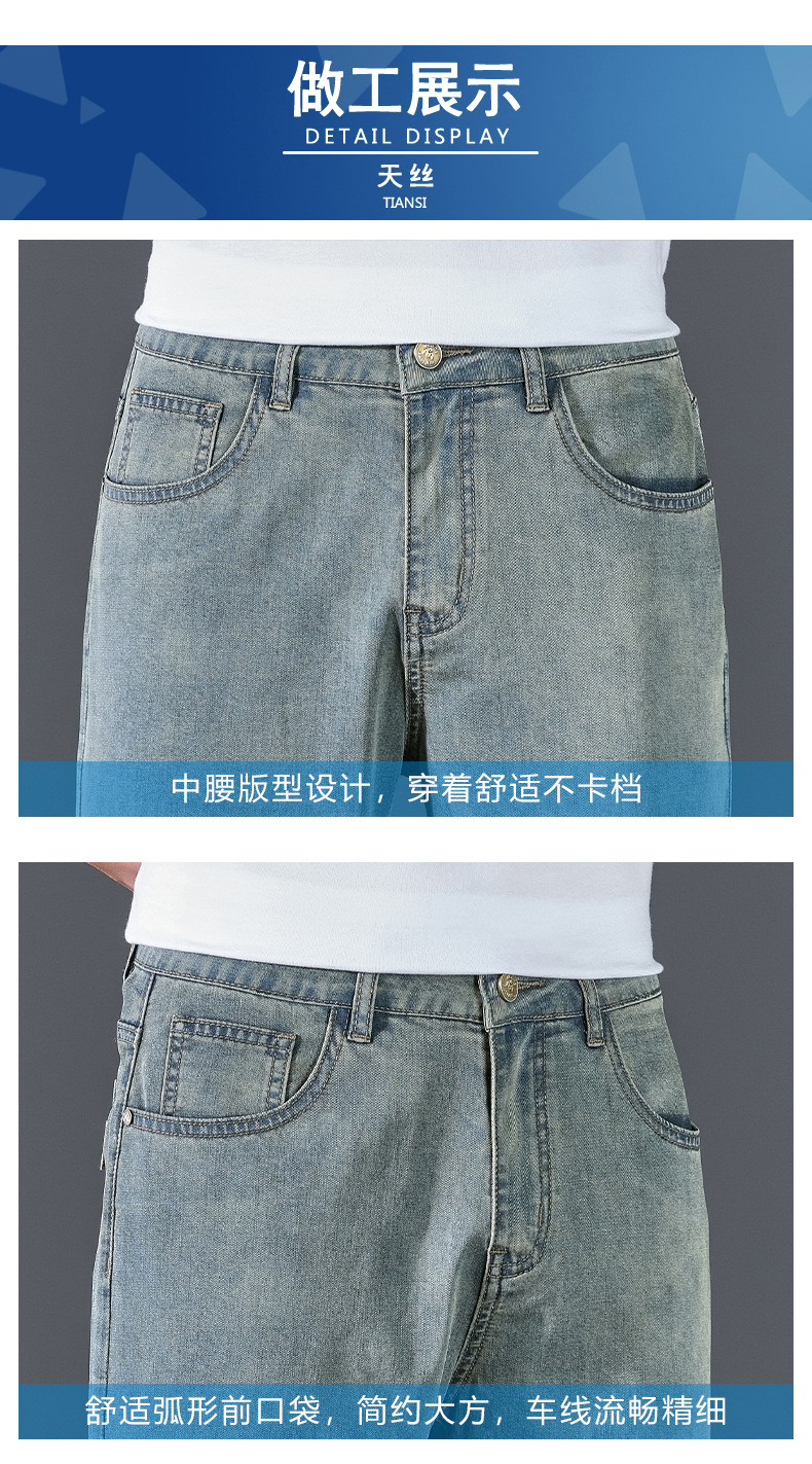 텐셀 여름 초박형 청바지 남성 높은 허리 느슨한 직선 탄성 비즈니스 캐주얼 뉴 플러스 사이즈 남성 바지스토어 가기