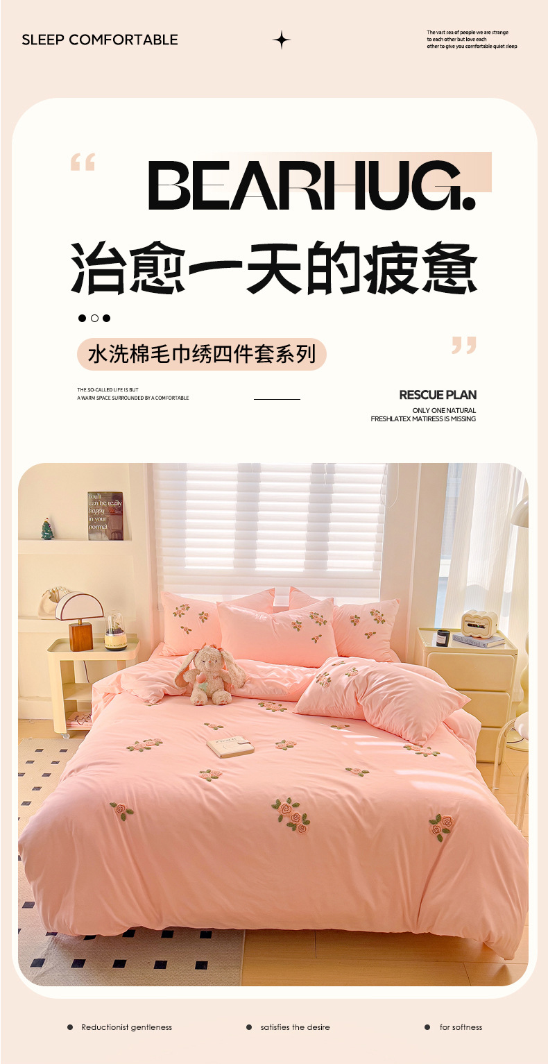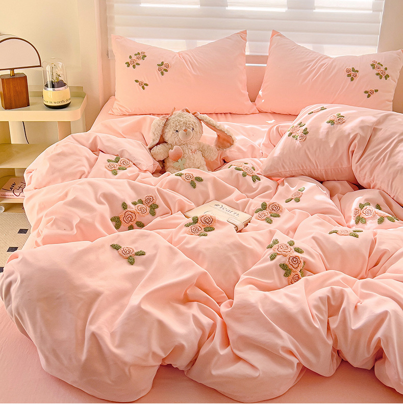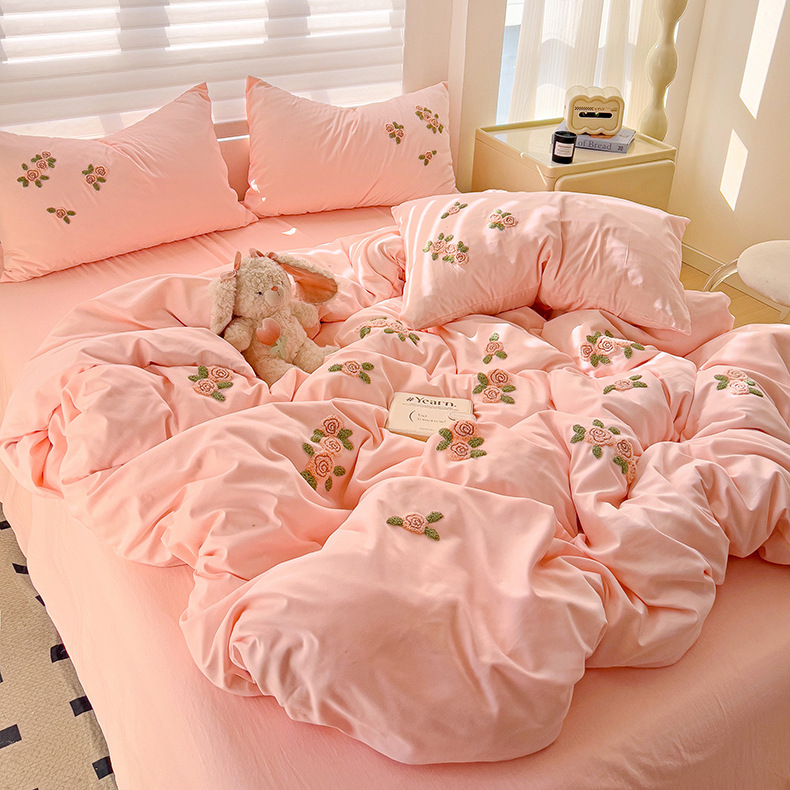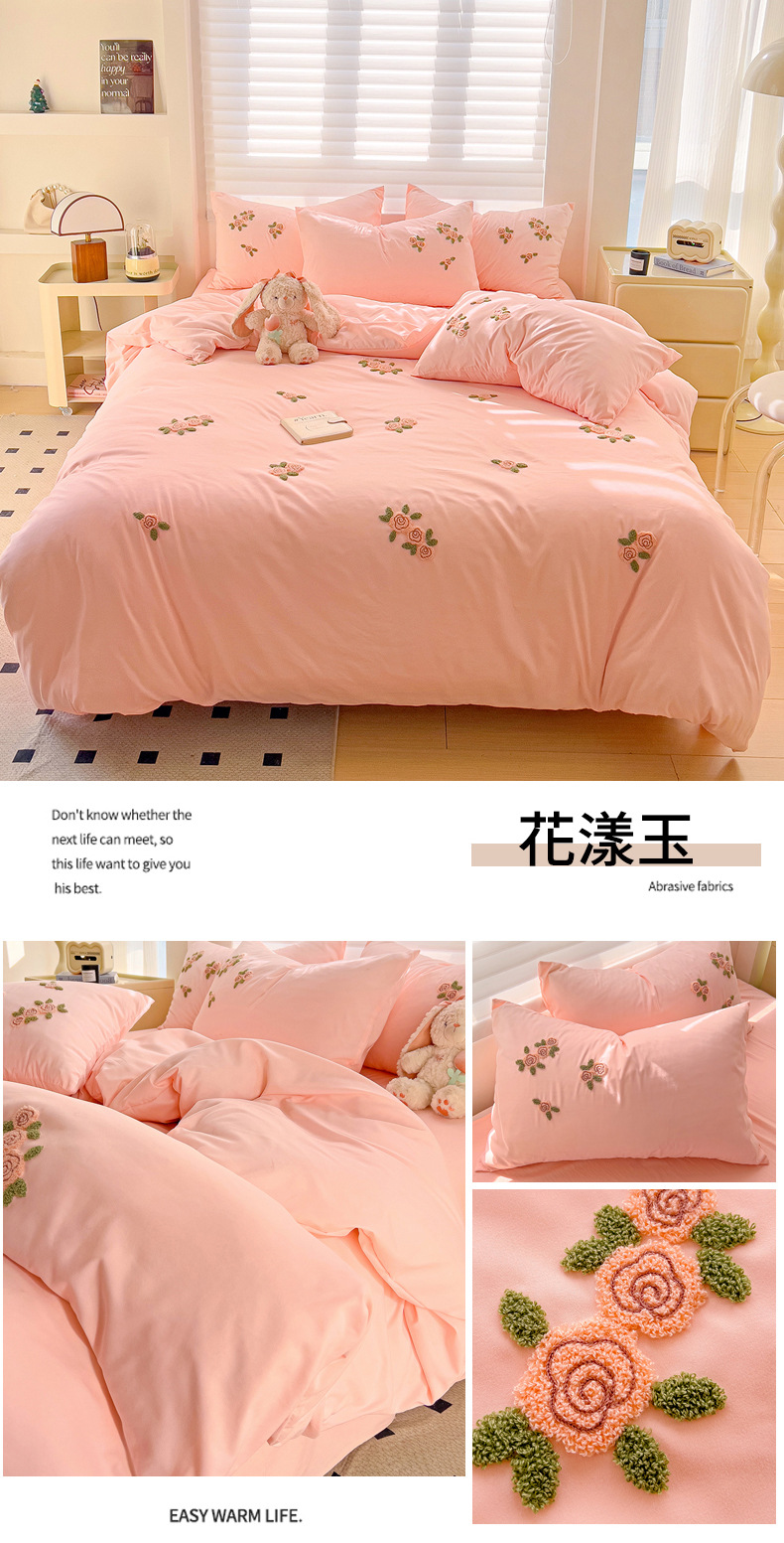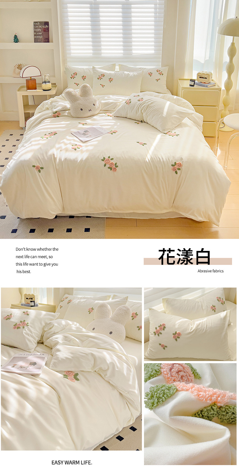 씻은 면화 타월 자수 꽃 4 피스 세트 침상 기숙사 씻은 면화 3 피스 세트