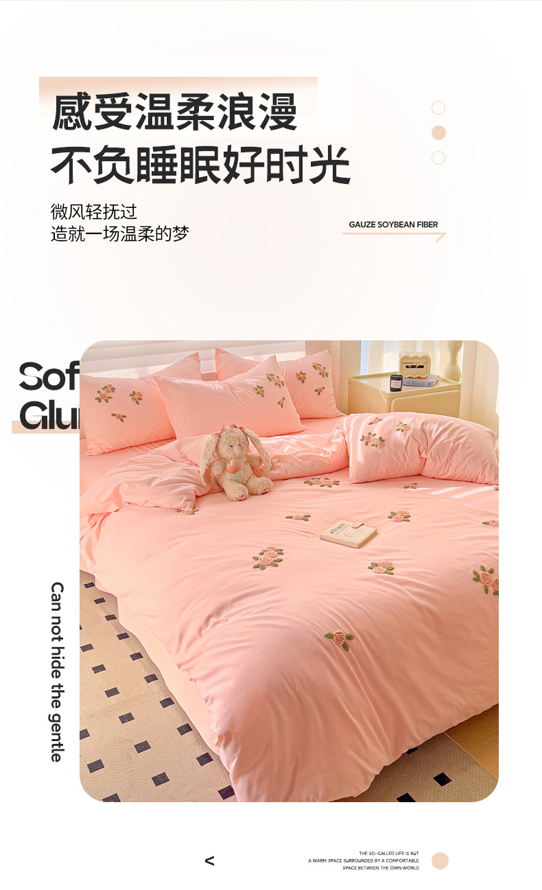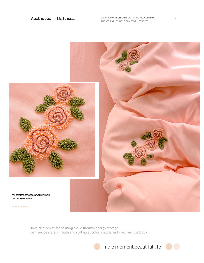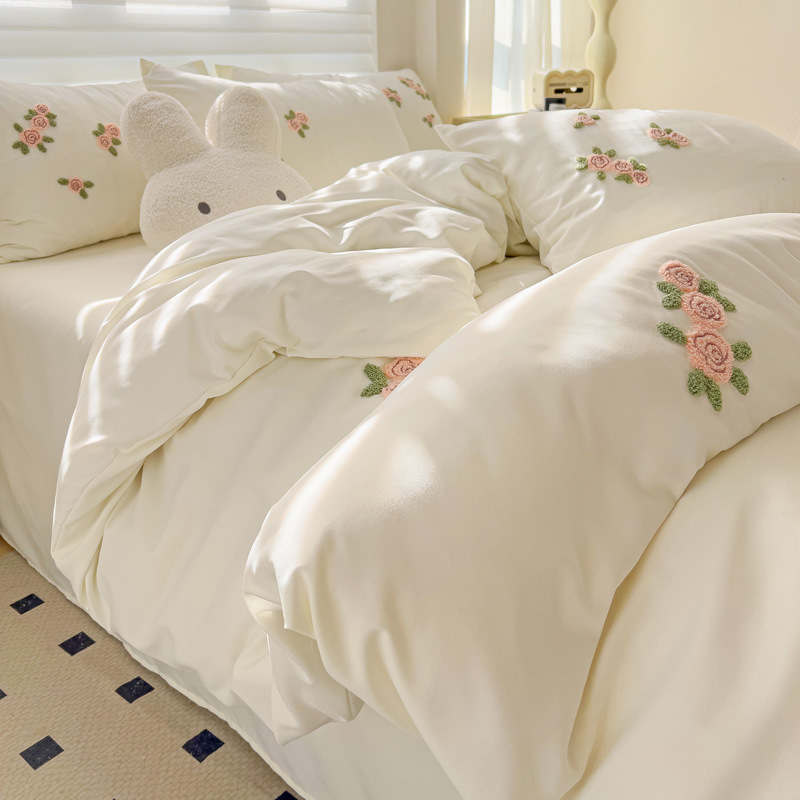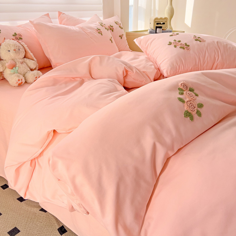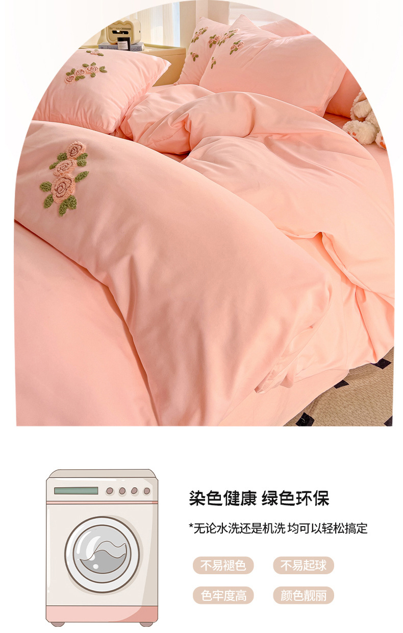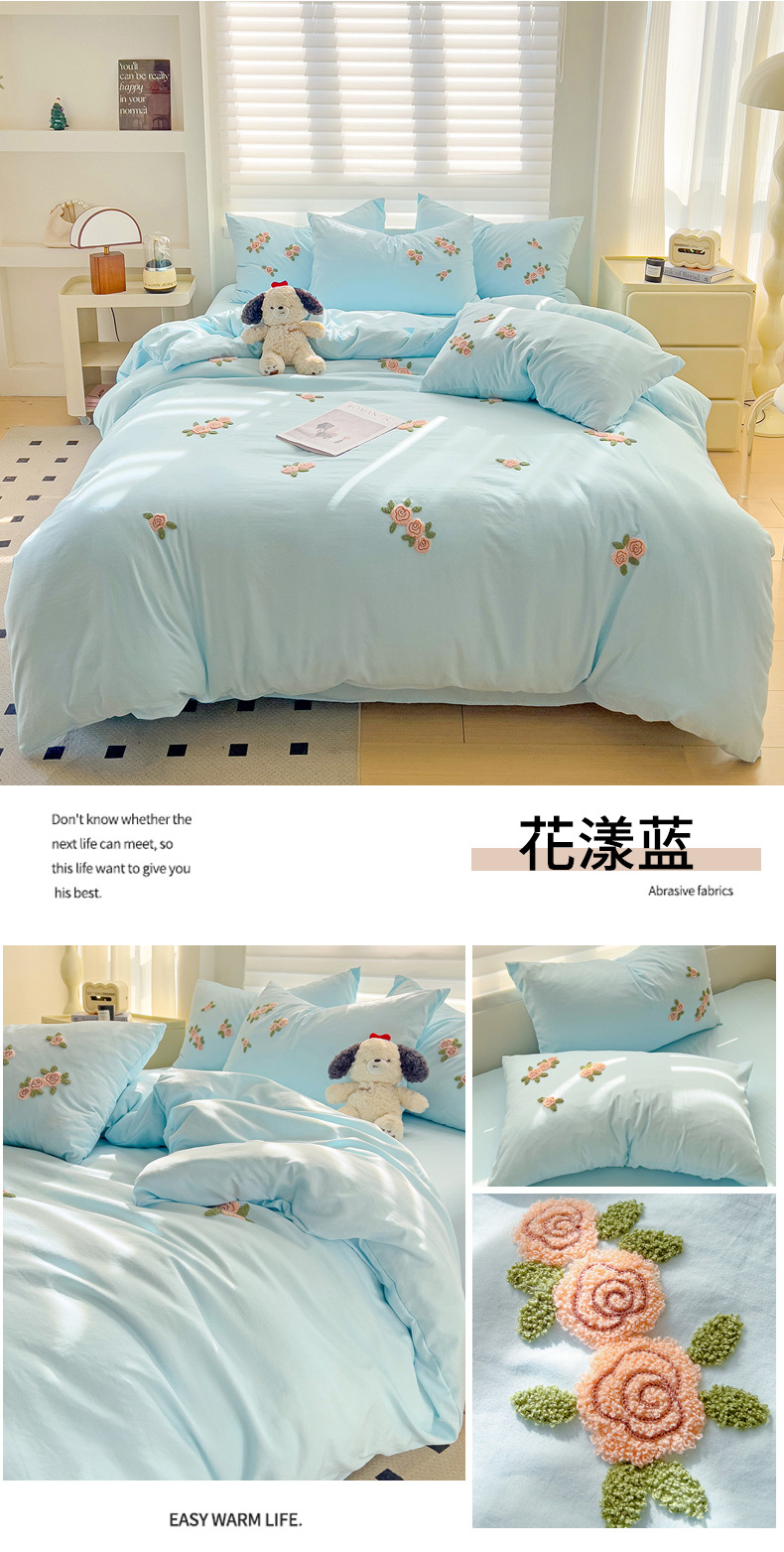 씻은 면화 타월 자수 꽃 4 피스 세트 침상 기숙사 씻은 면화 3 피스 세트