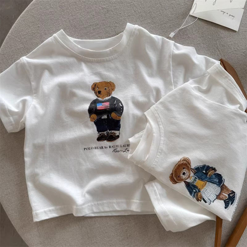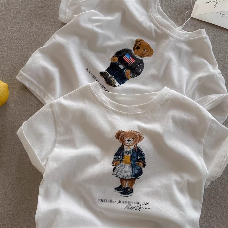 순수 코튼 어린이 반팔 티셔츠 여름 2025 새로운 다목적 캐주얼 만화 유행 브랜드 소년과 소녀를위한 패션상의