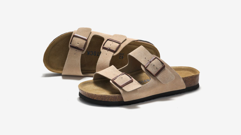 ORFISTOCK Summer Bocken Slippers Unisex 남성과 여성의 풀 Cowhide 한 줄 버클 코르크 비치 샌들스토어 가기