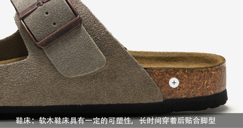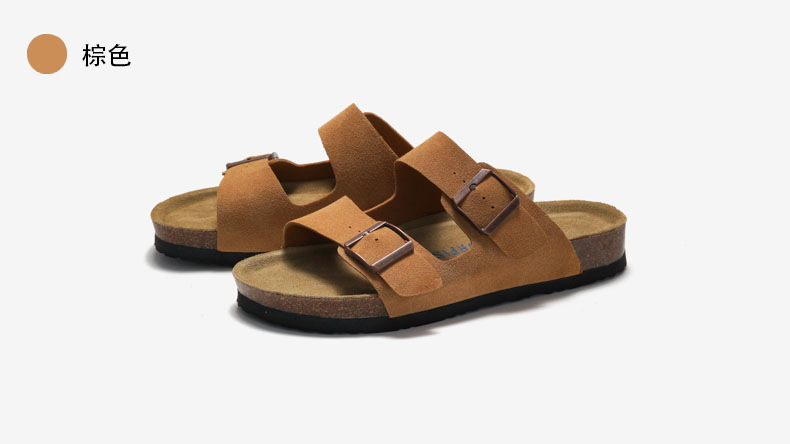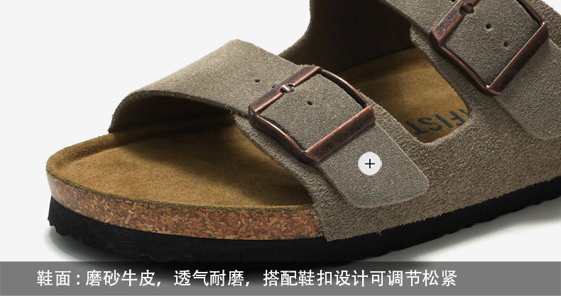 ORFISTOCK Summer Bocken Slippers Unisex 남성과 여성의 풀 Cowhide 한 줄 버클 코르크 비치 샌들