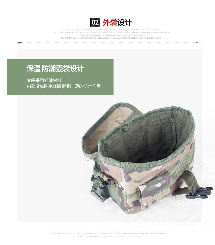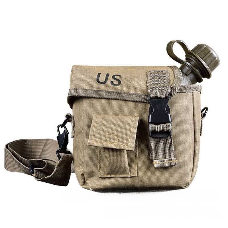 1.75L 야외 등산 캠핑 전술 주전자 미국 광장 대용량 단일 어깨 크로스 바디 위장 휴대용 군사 팬 주전자