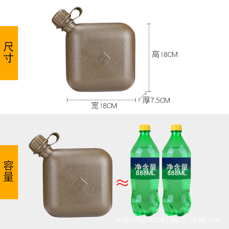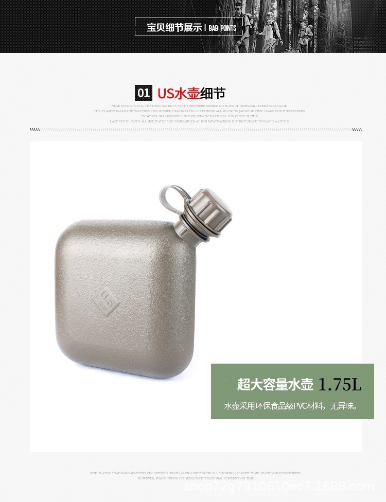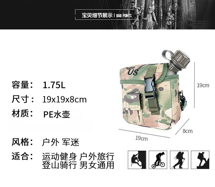 1.75L 야외 등산 캠핑 전술 주전자 미국 광장 대용량 단일 어깨 크로스 바디 위장 휴대용 군사 팬 주전자스토어 가기