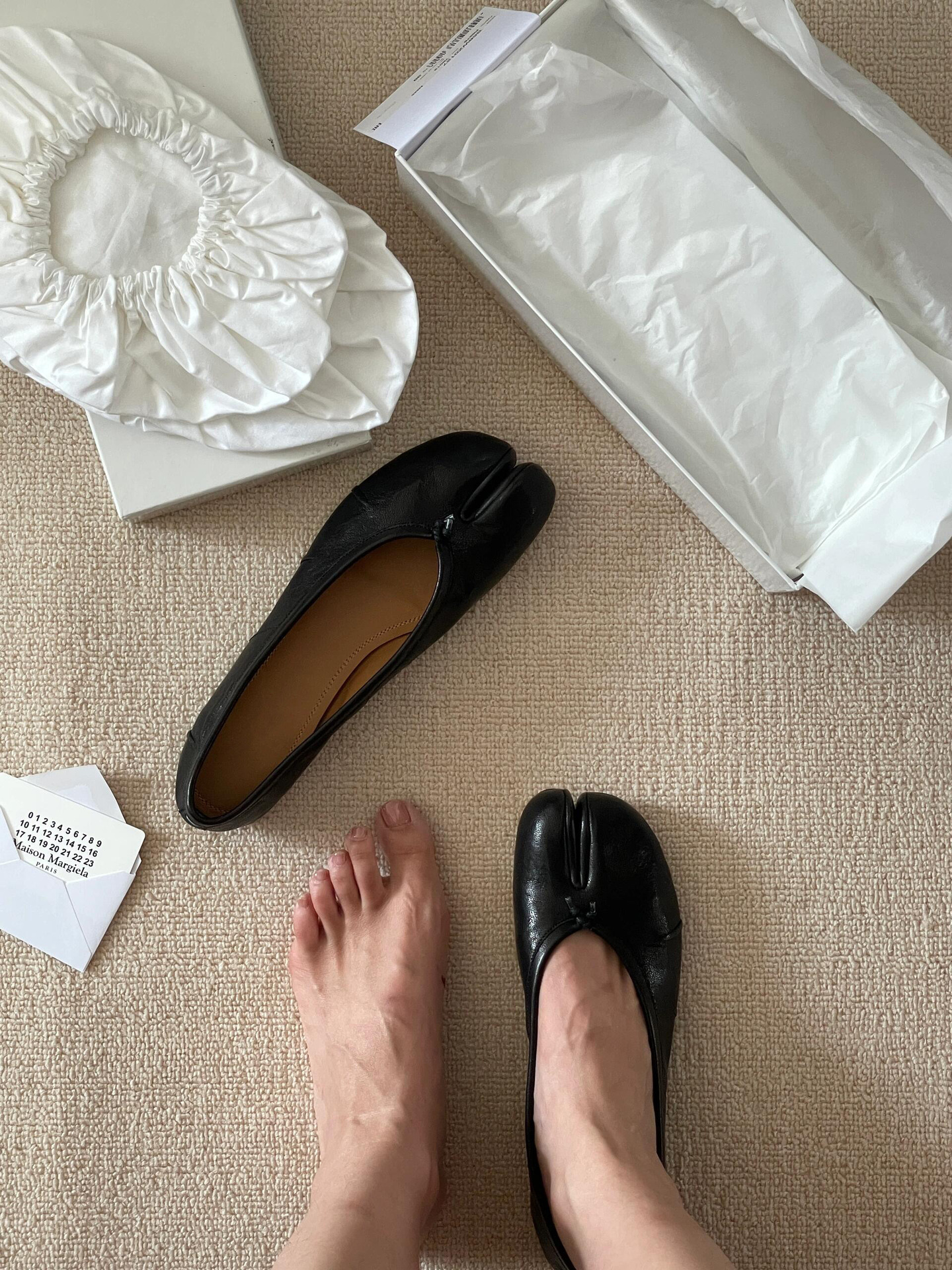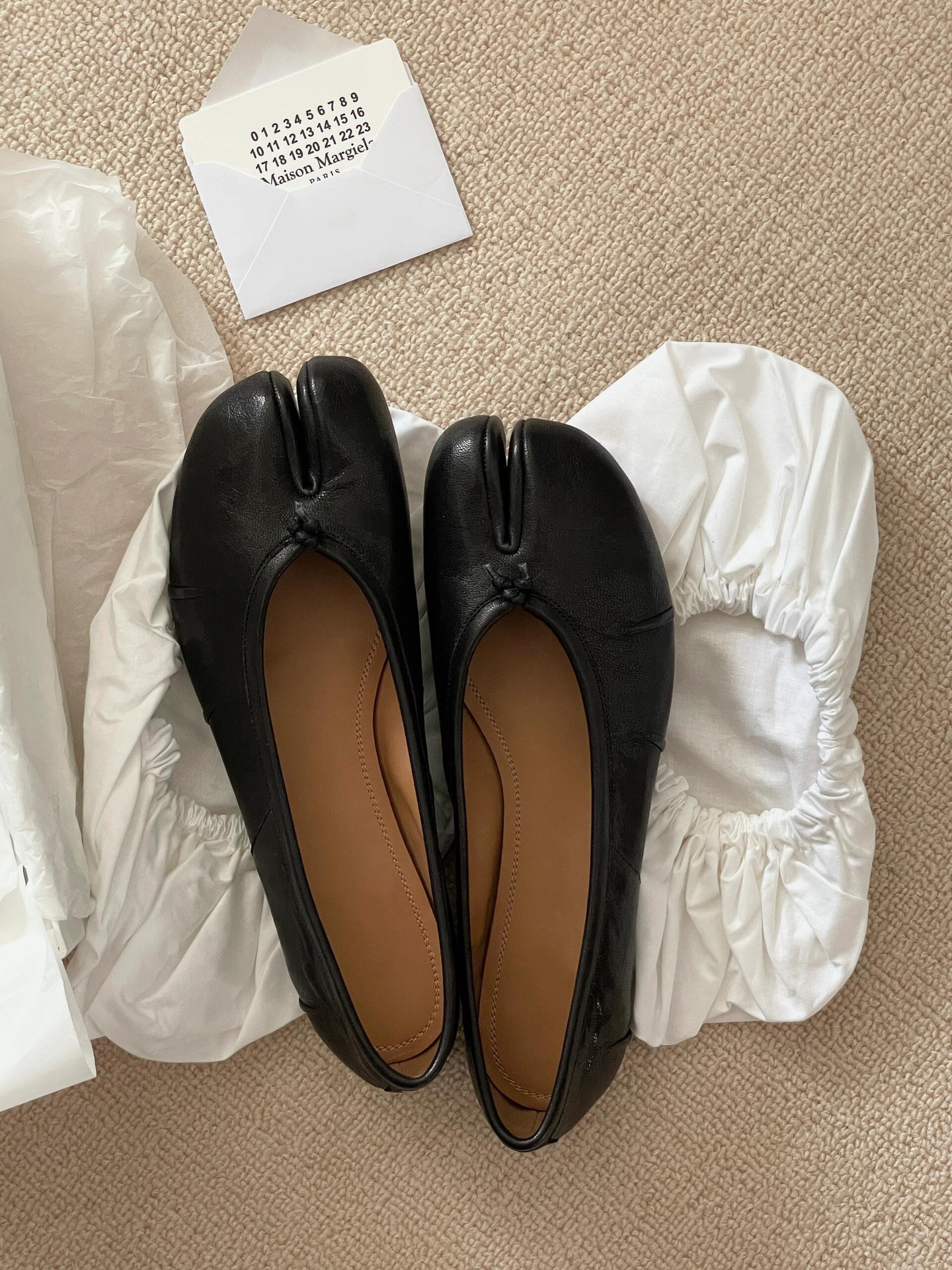양가죽 버전 ~ 가죽 주름 부드러운 바닥 발가락 신발 여성 돼지 trotters Mary Jane 신발 검은 작은 가죽 신발 플랫 국자 신발스토어 가기