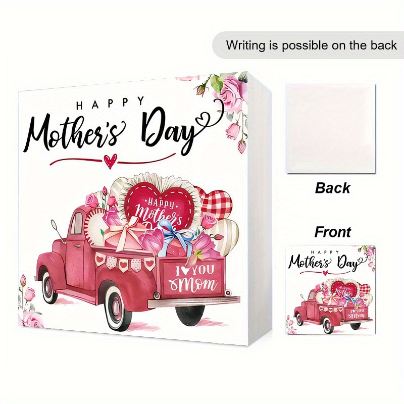 1 조각 PVC "해피 어머니의 날" 플라크 장식-신선한 빈티지 핑크 트럭 디자인스토어 가기