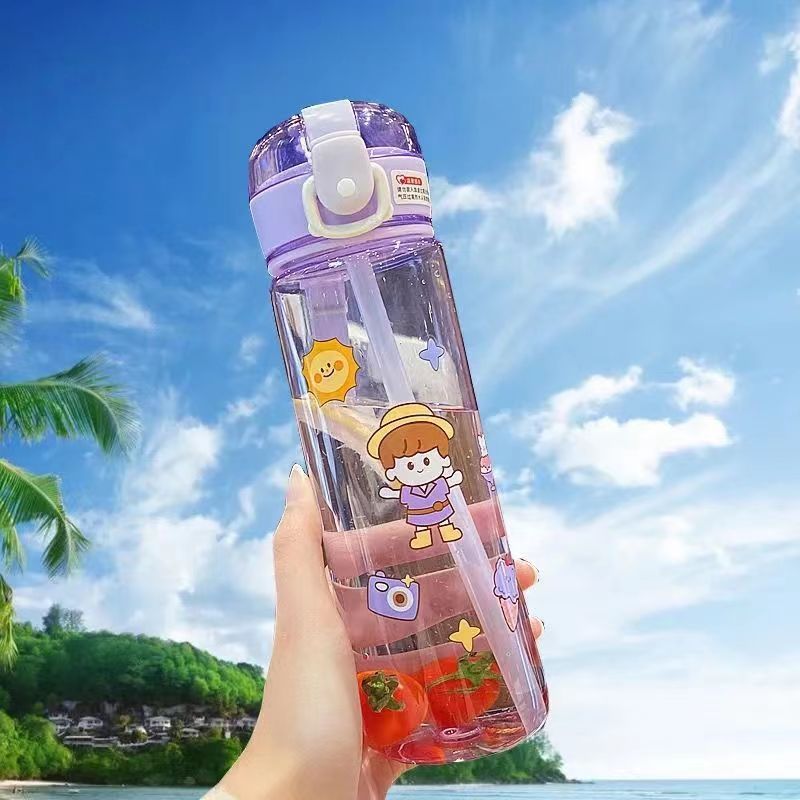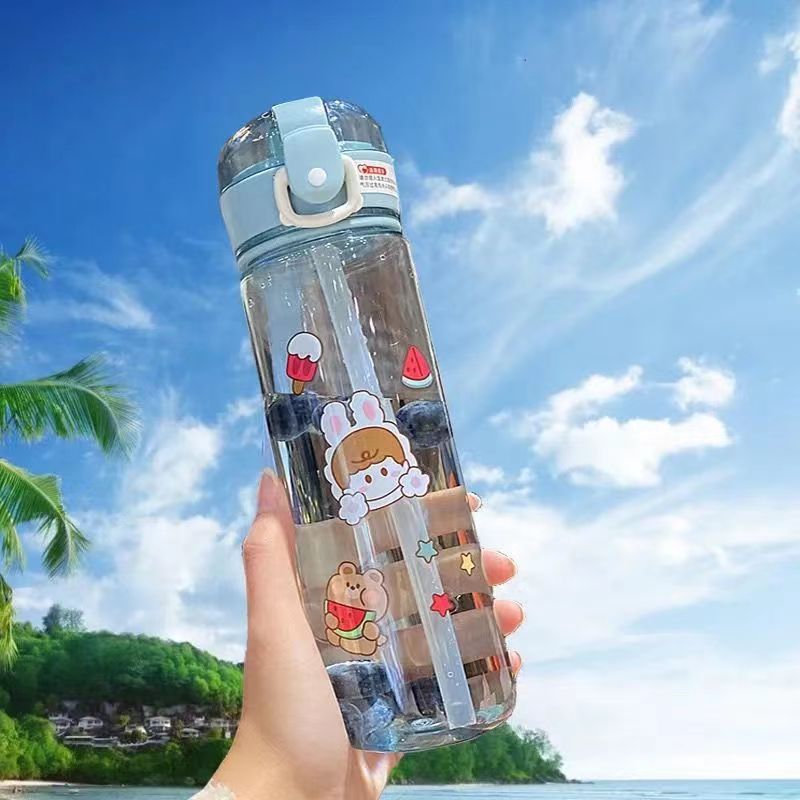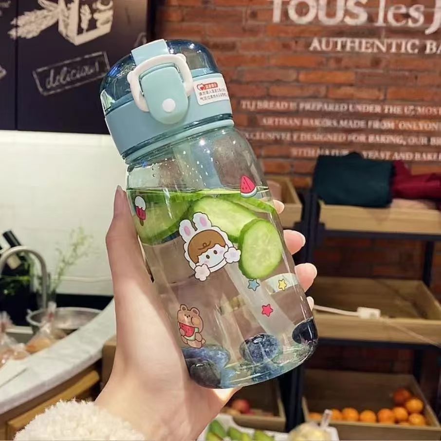 -한국어 버전의 귀여운 컵 학생 야외 스포츠 플라스틱 컵 간단한 in 인기있는 드롭 방지 컵 휴대용스토어 가기