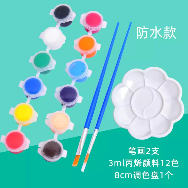 • ◑★★★★◑12가지 컬러 방수 아크릴 물감 + 브러쉬 2개 + 컬러 팔레트 1개 ◑★★★★◑