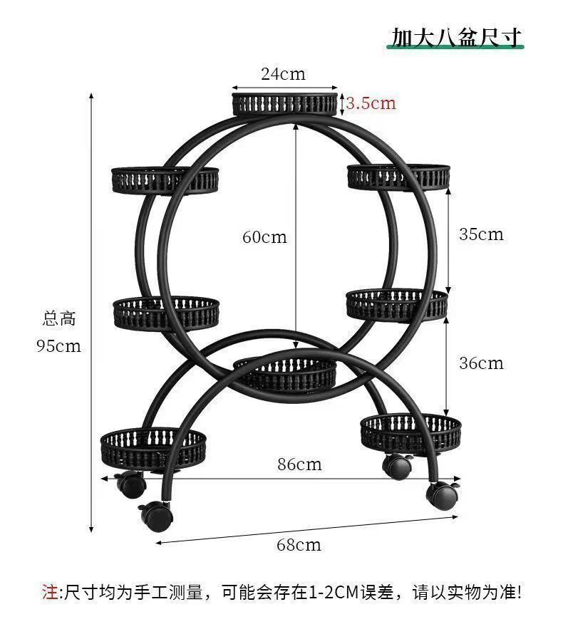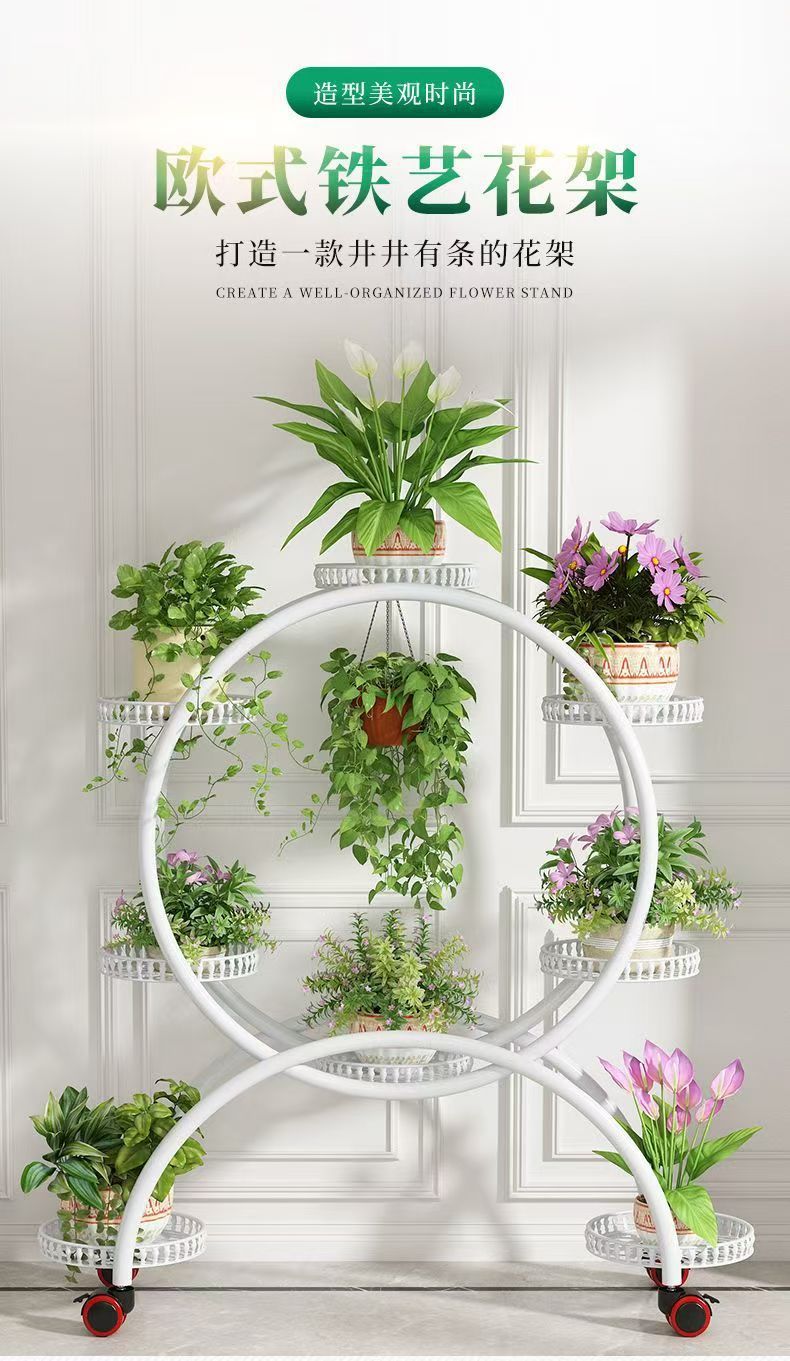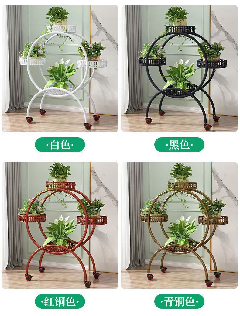 꽃 선반 거실 바닥에 서있는 움직일 수있는 녹색 꽃 냄비 랙 바퀴가 철공 다층 발코니 꽃 랙 가정용 바닥