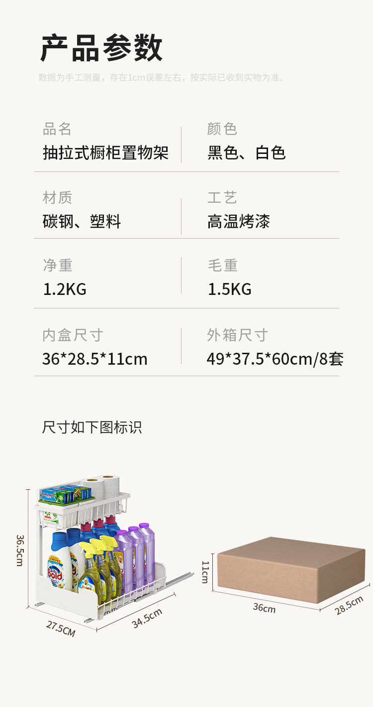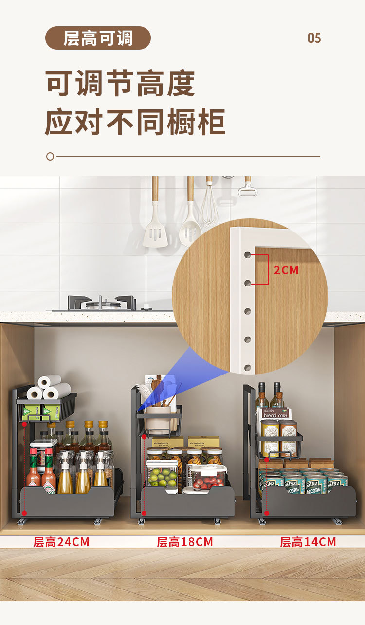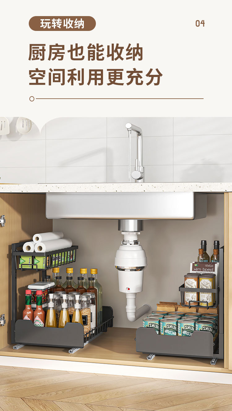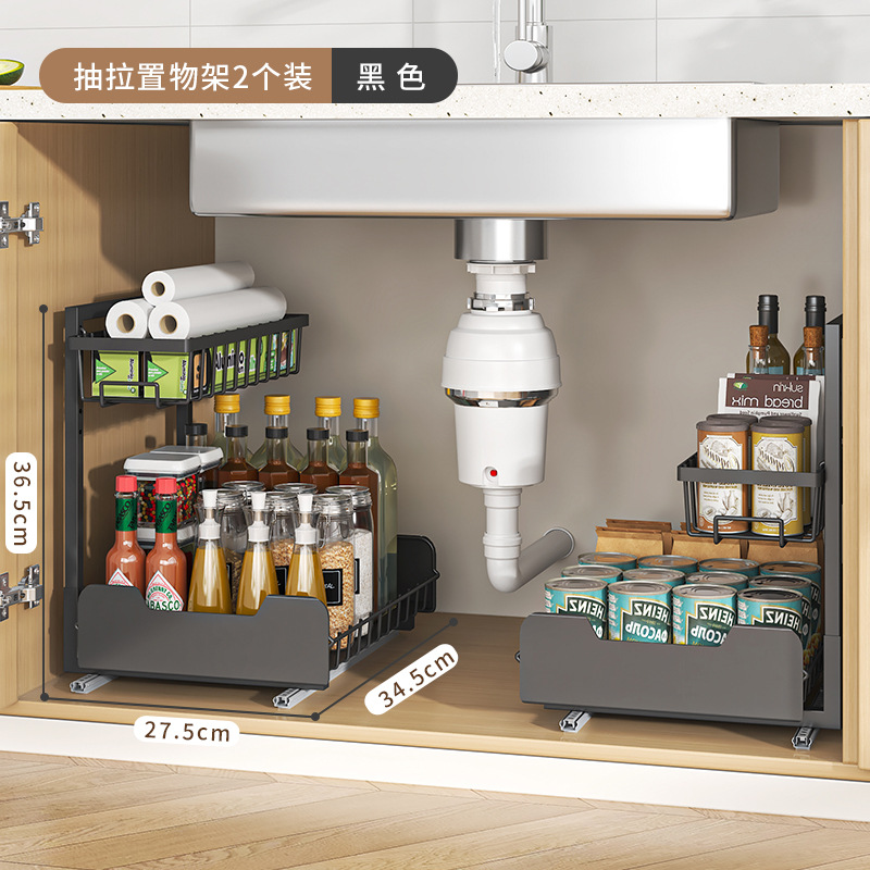 주방 낮은 싱크 스토리지 랙 풀 아웃 바구니 더블 레이어 조미료 병 랙 캐비닛 레이어드 랙