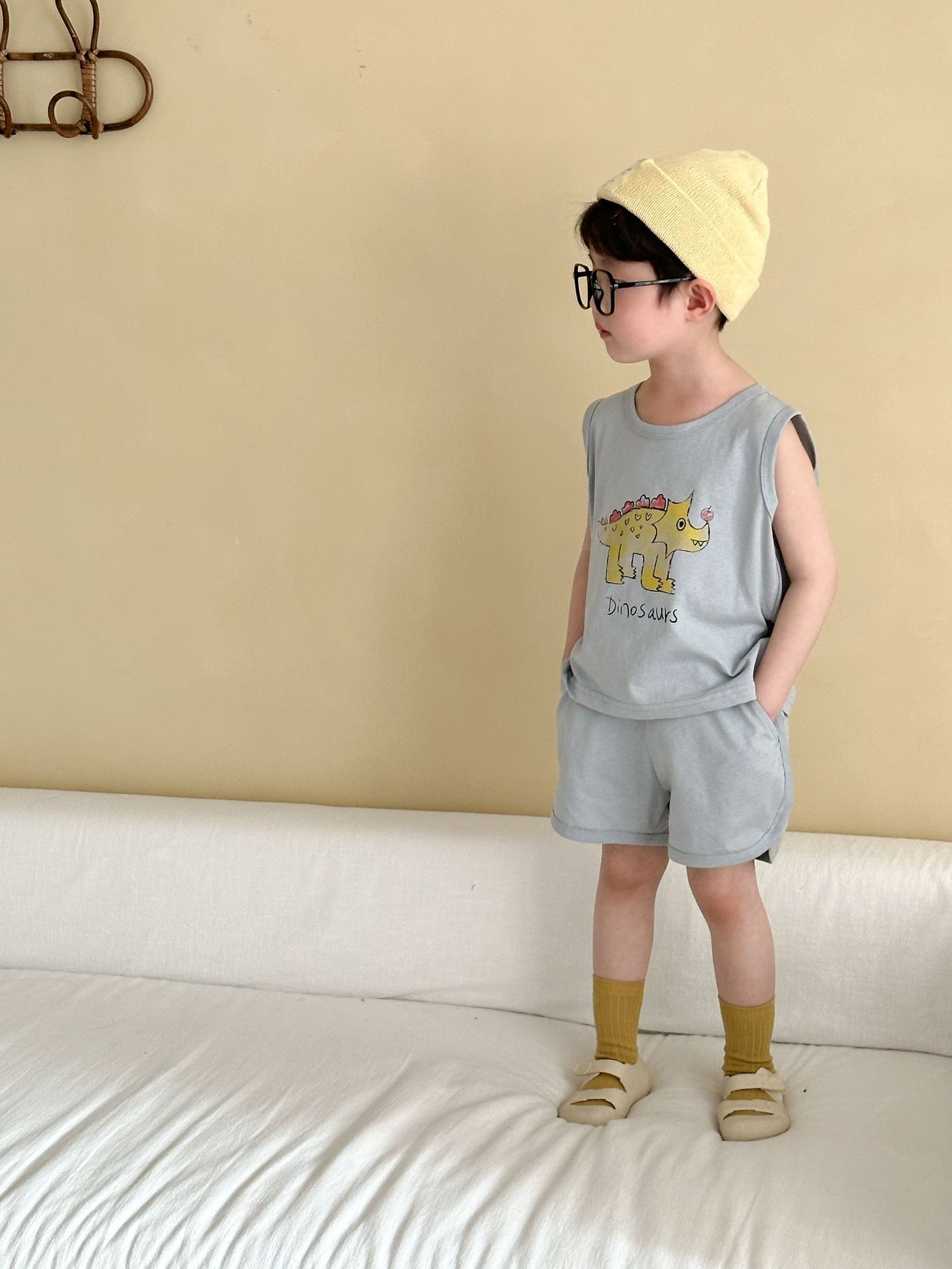 어린이 여름 스포츠 세트 소녀 만화 캐주얼 여름 2025 새로운 소년 조끼 반바지 아기 옷스토어 가기