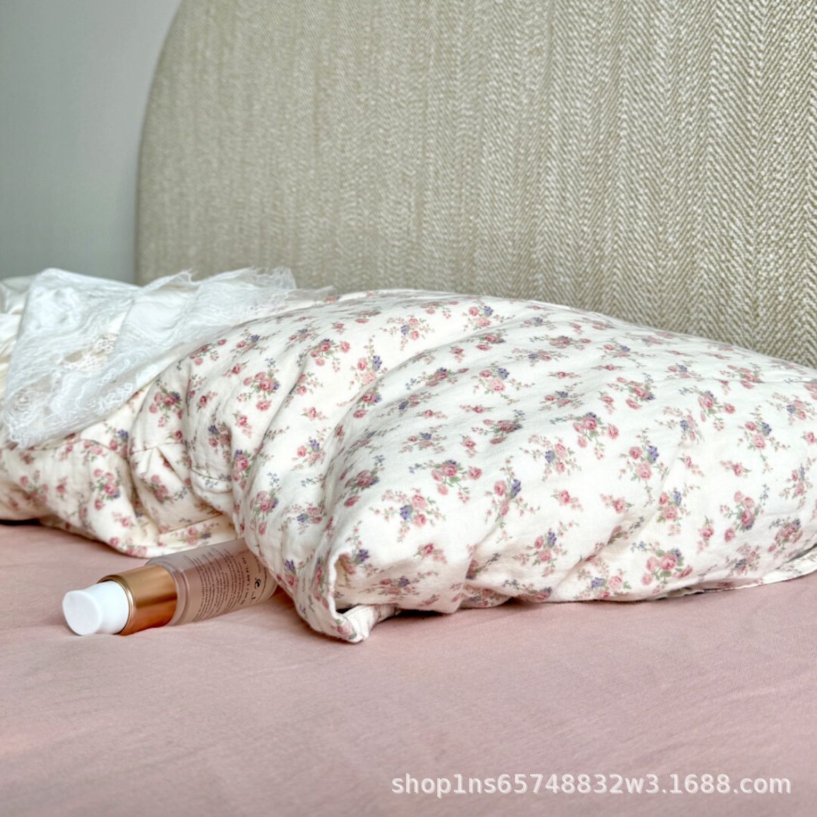 ✅더블 레이어 원사 베개 케이스 한 쌍면 거즈 작은 꽃 만화 어린이 피부 친화적 인 통기성 베갯잇 48*7